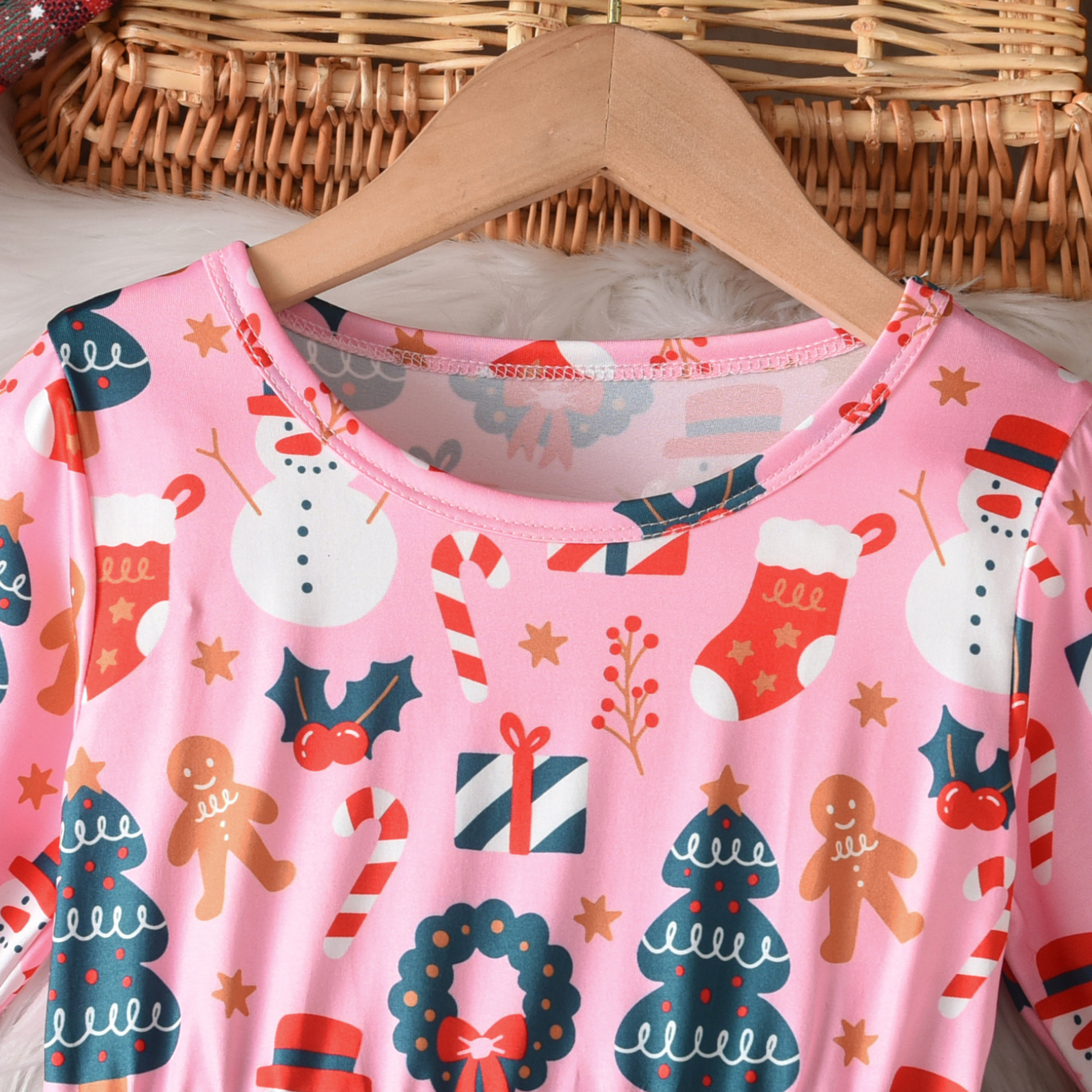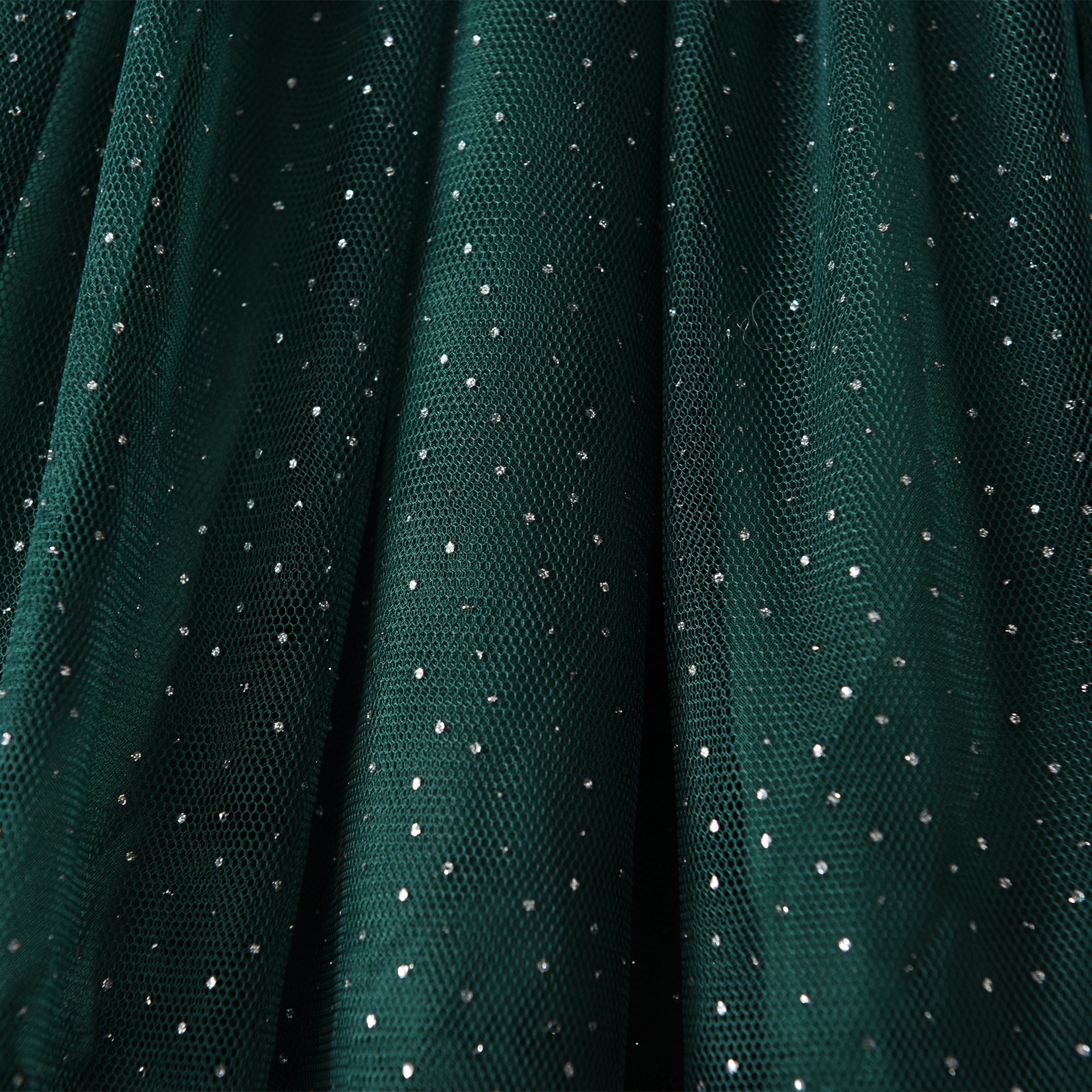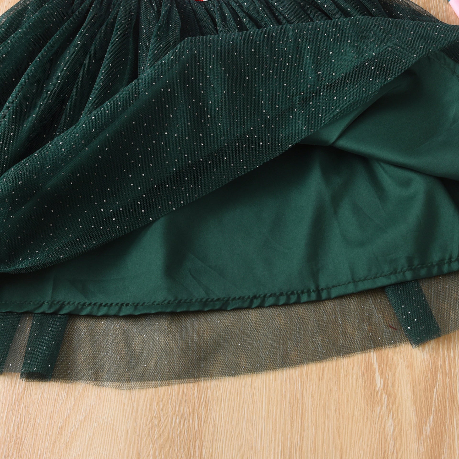 67135LS-秋冬聖誕印花細閃網紗澎澎連衣裙