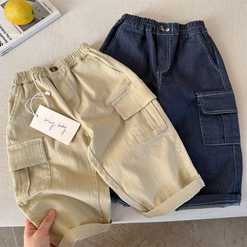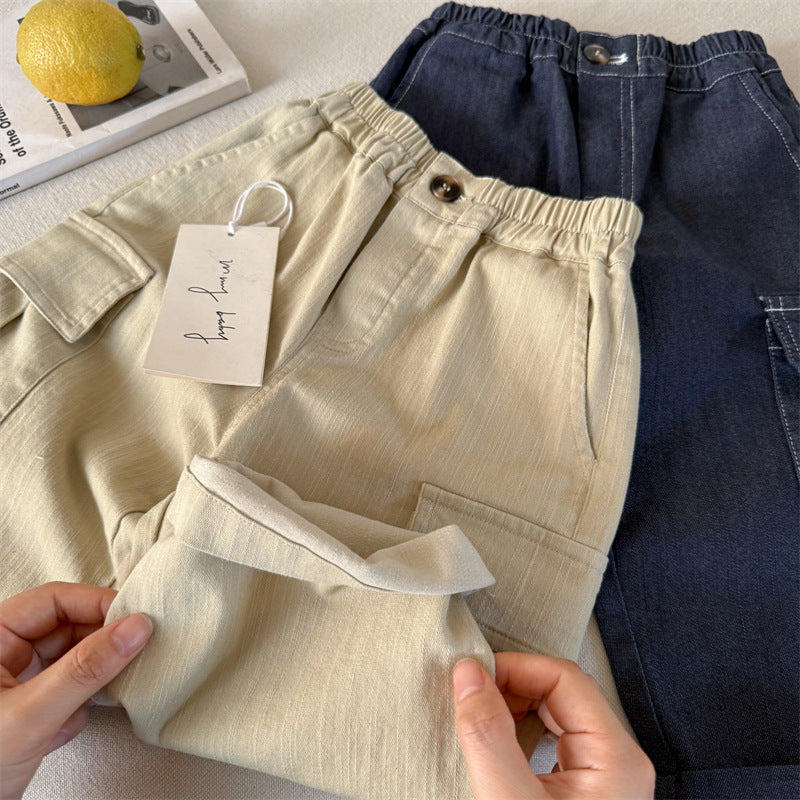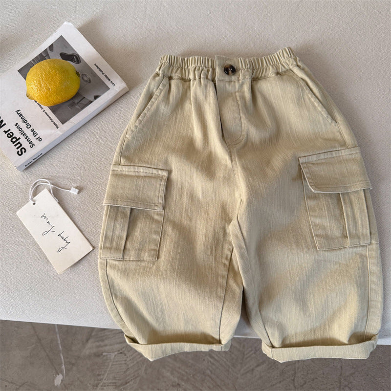 70862SE-秋季兒童簡約彈力休閒工裝褲