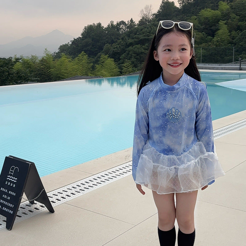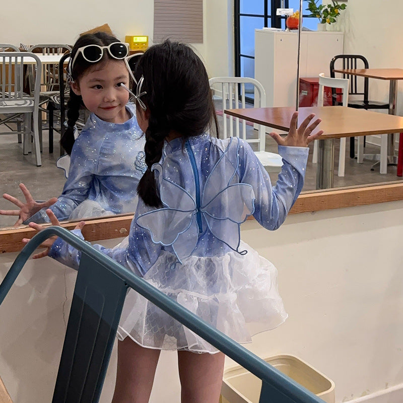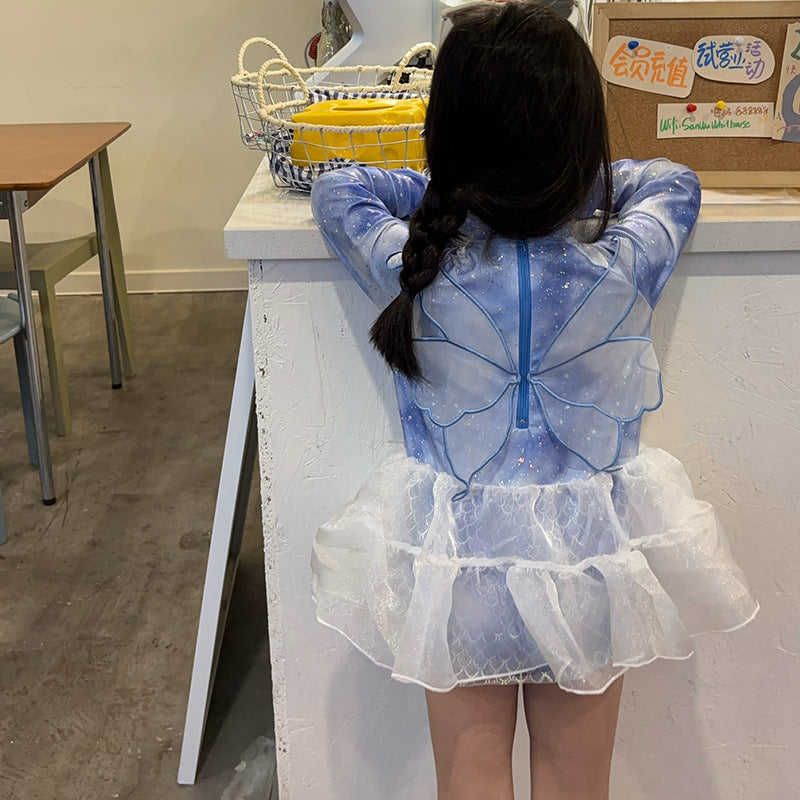 70905LS-夏季兒童長袖蝴蝶裙式泳裝