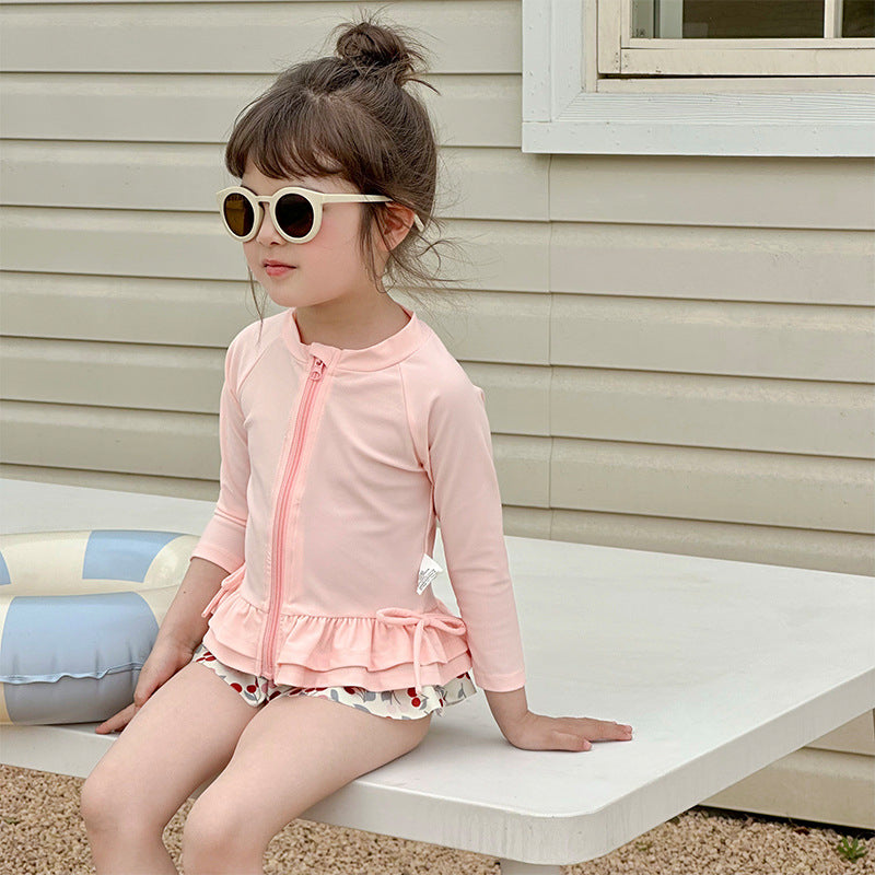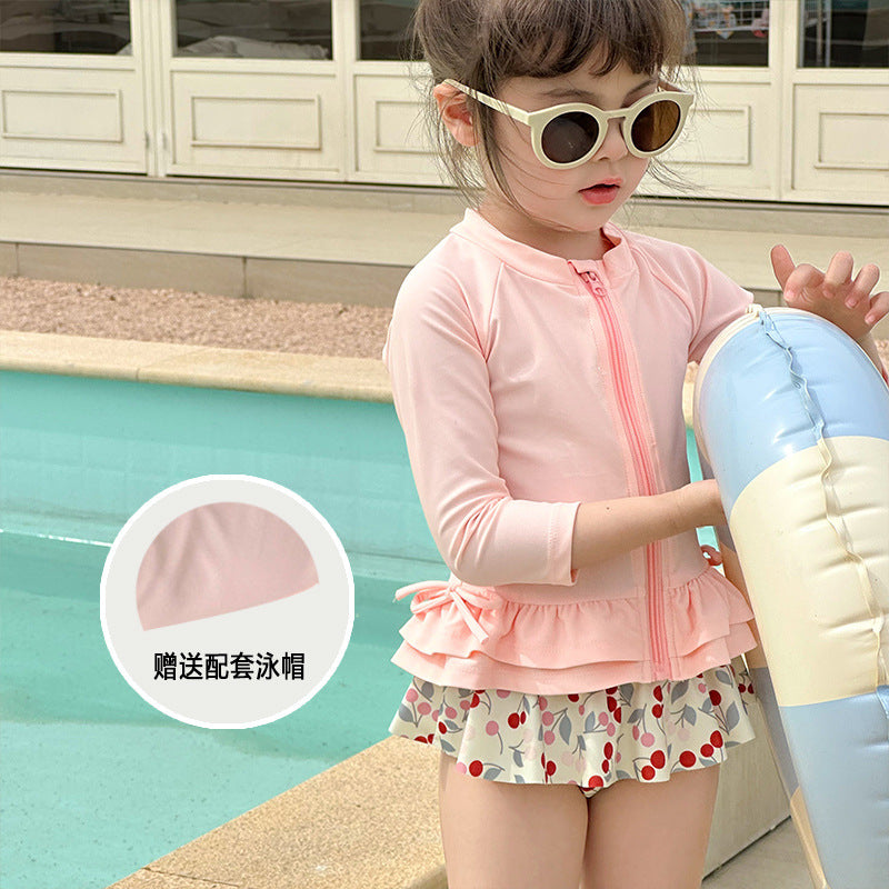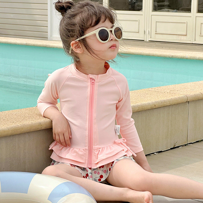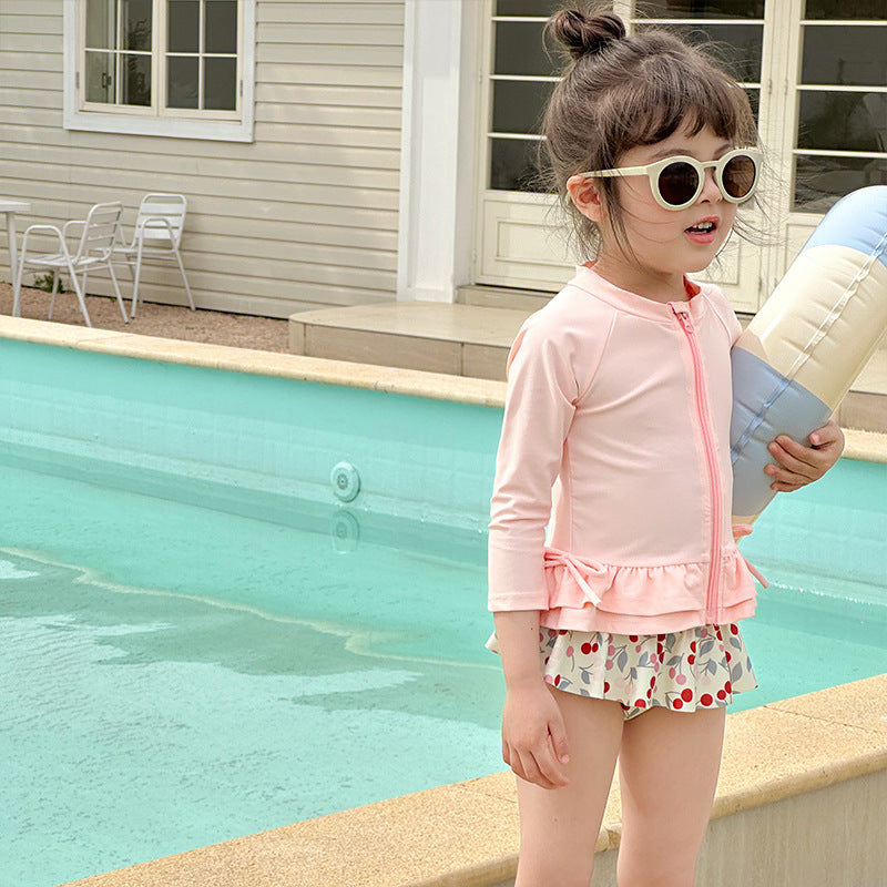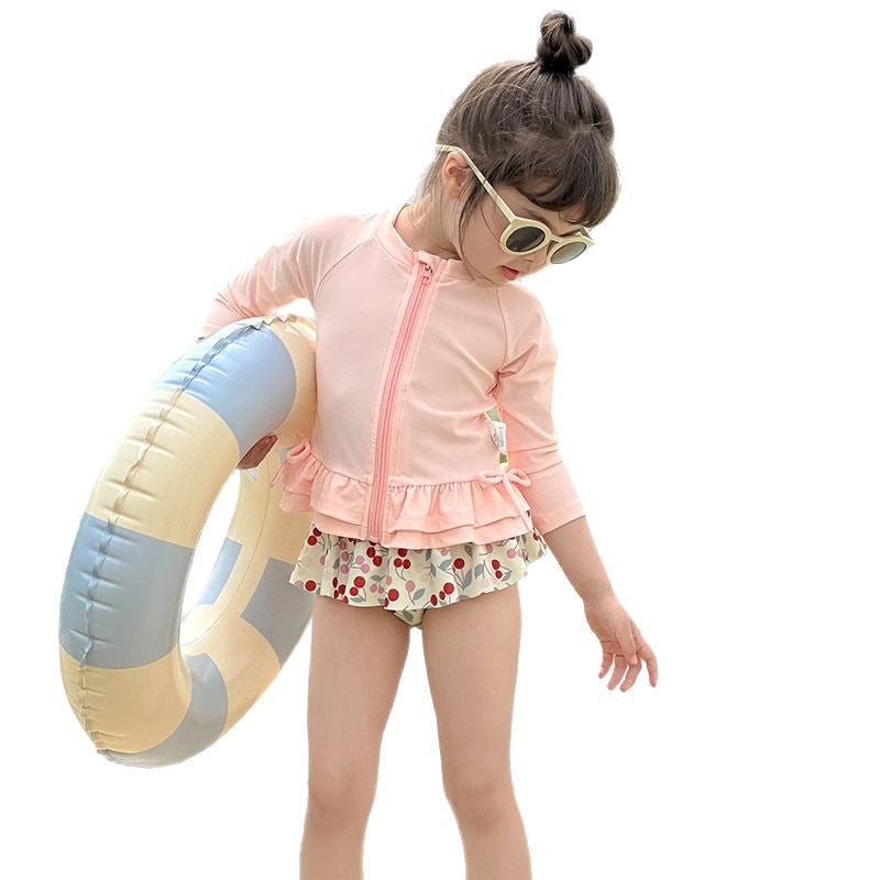 70910LS-夏日女童長袖防曬分離式速乾泳衣套裝