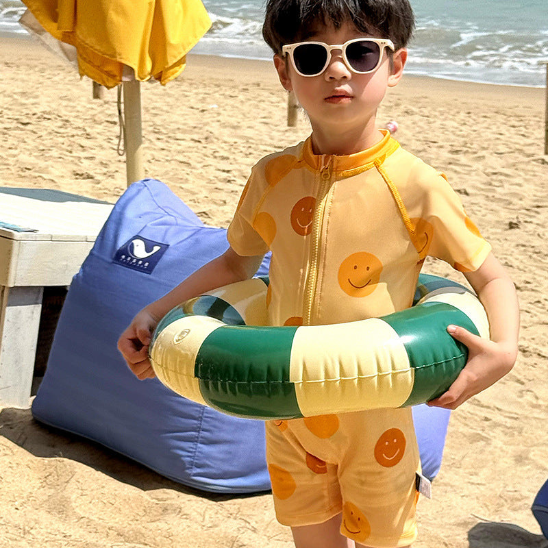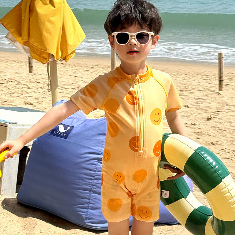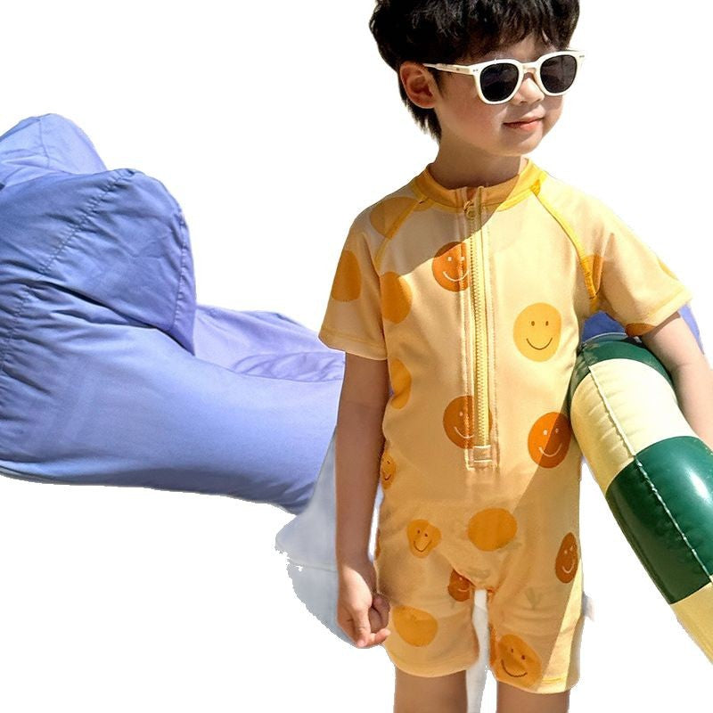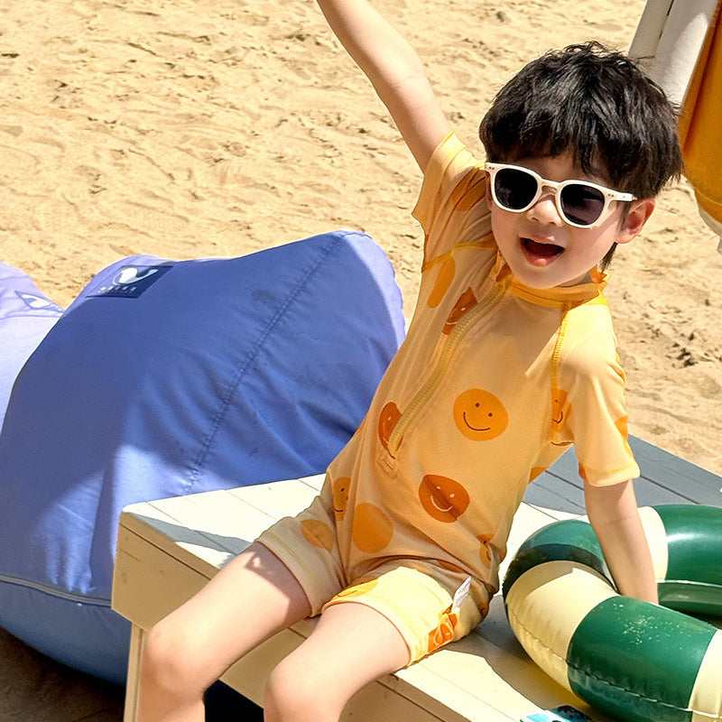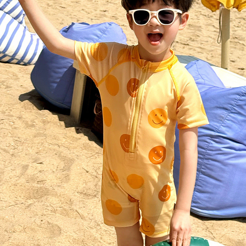 70912LS-夏季兒童笑臉短袖速乾連身休閒泳裝