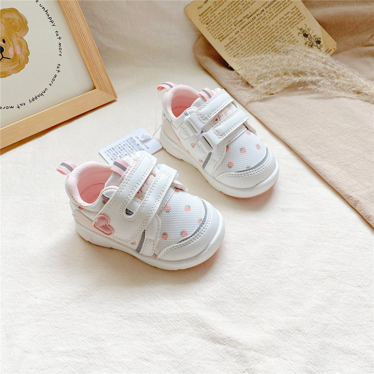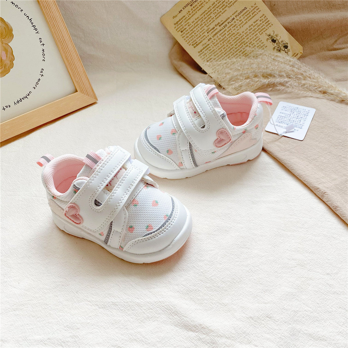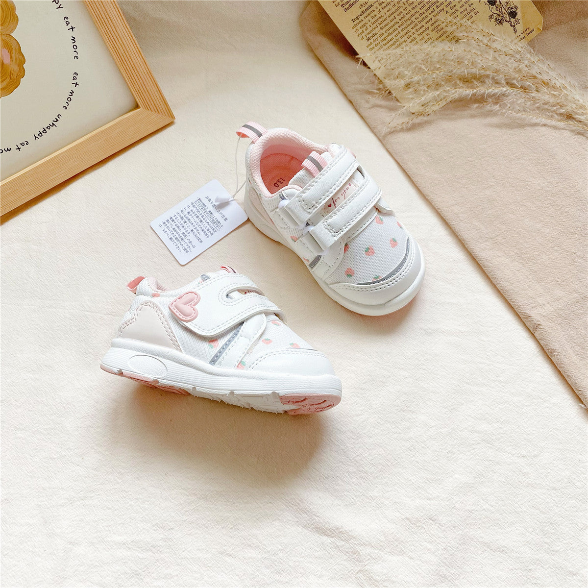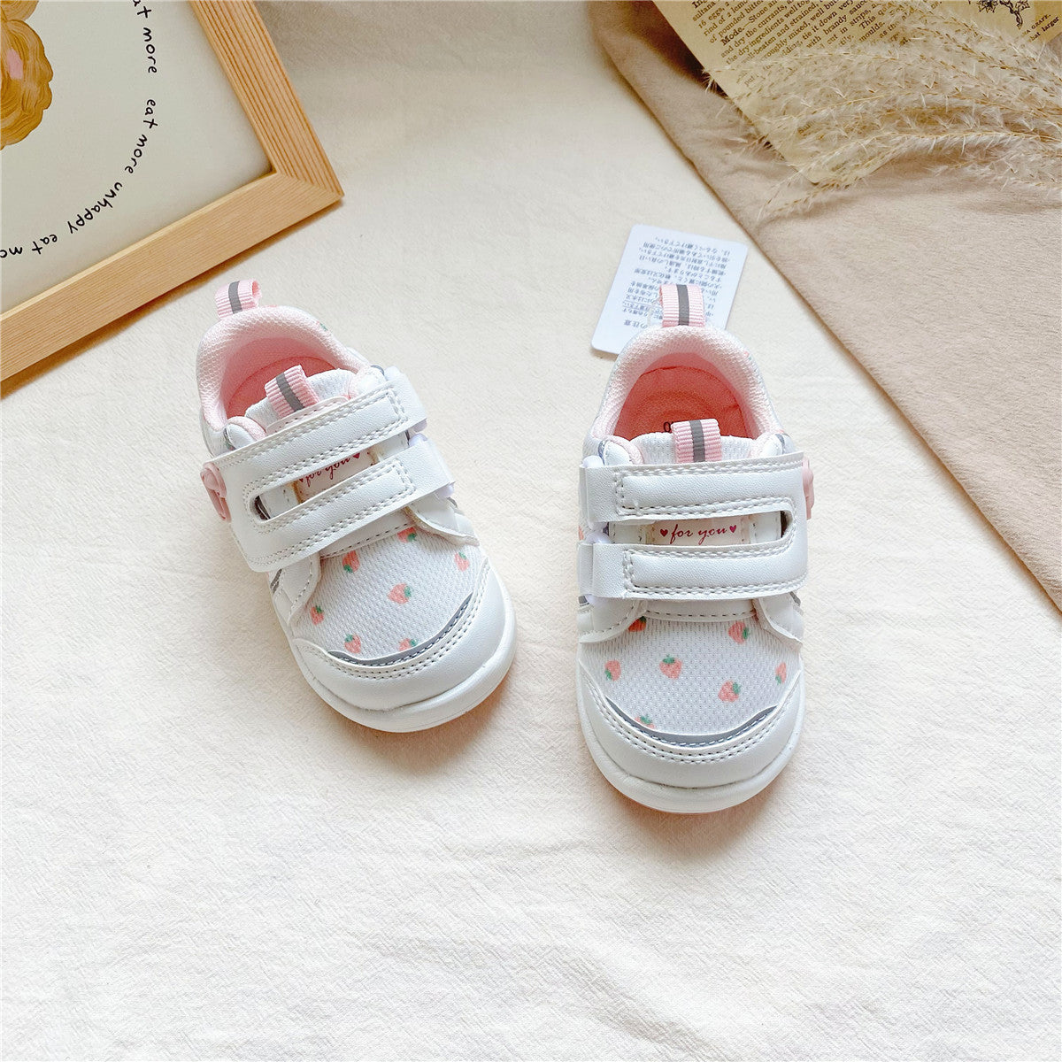 81418AC-兒童草莓魔鬼粘學步鞋