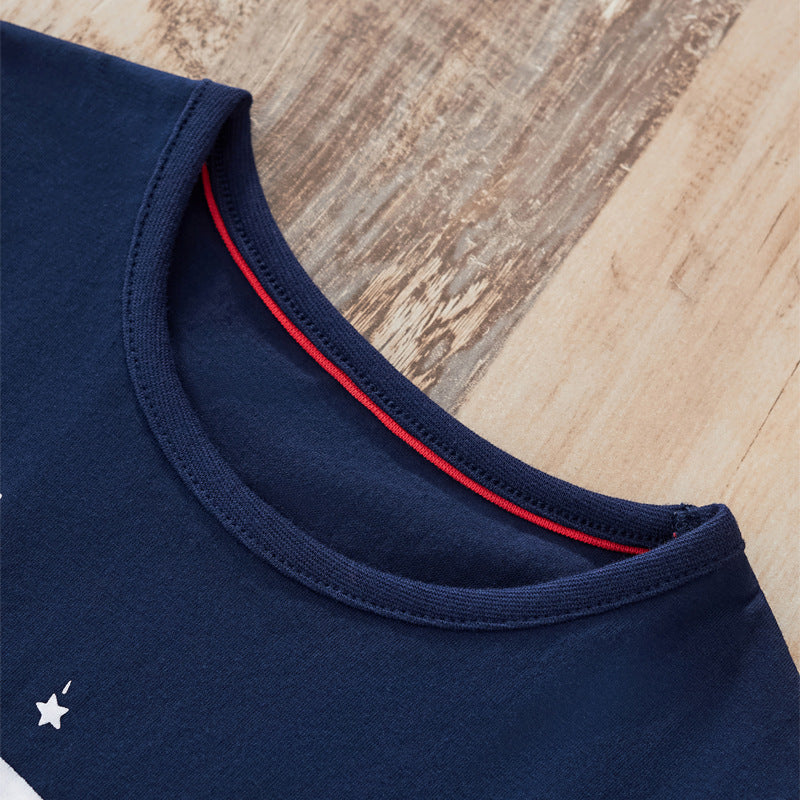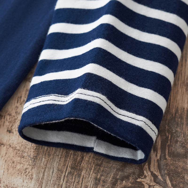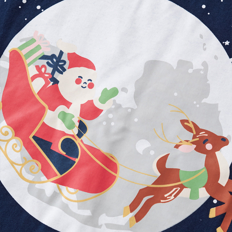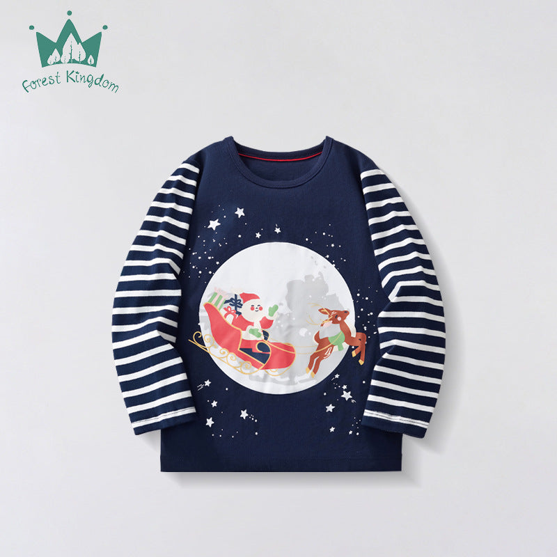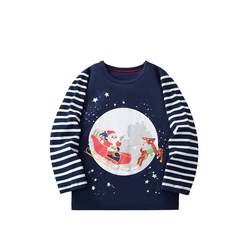 823033ES-秋季聖誕星空麋鹿拼袖條紋圓領長袖上衣