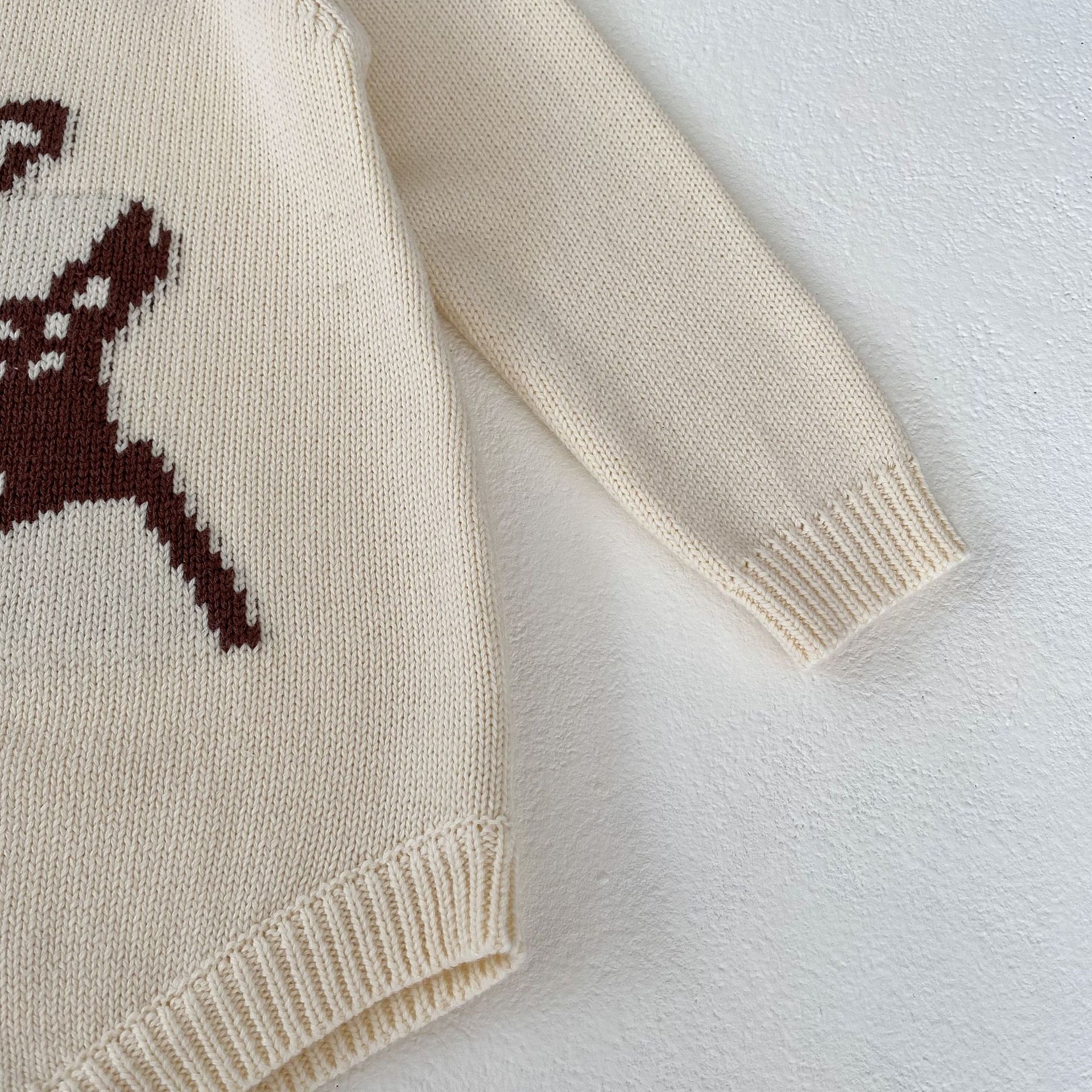 82389LS-秋季梅花鹿針織長袖包屁衣&麋鹿針織帽