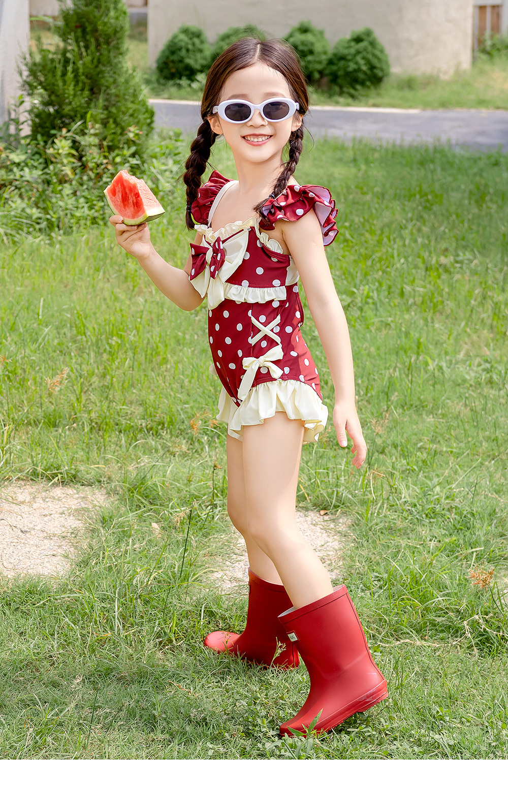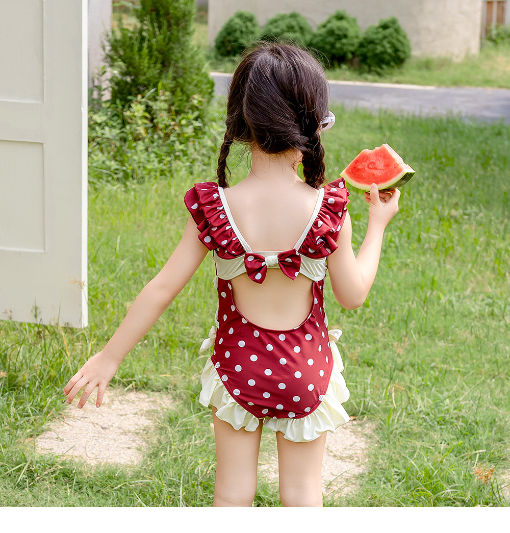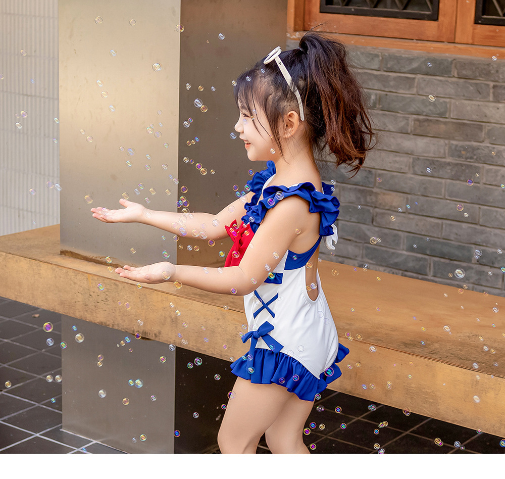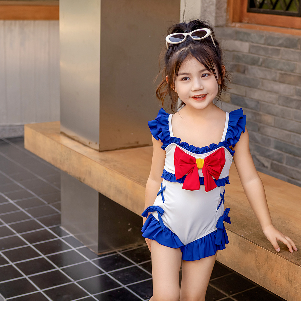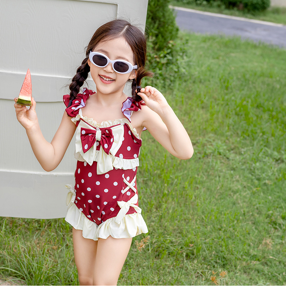 8582LS-夏裝女孩蝴蝶結游泳衣+泳帽
