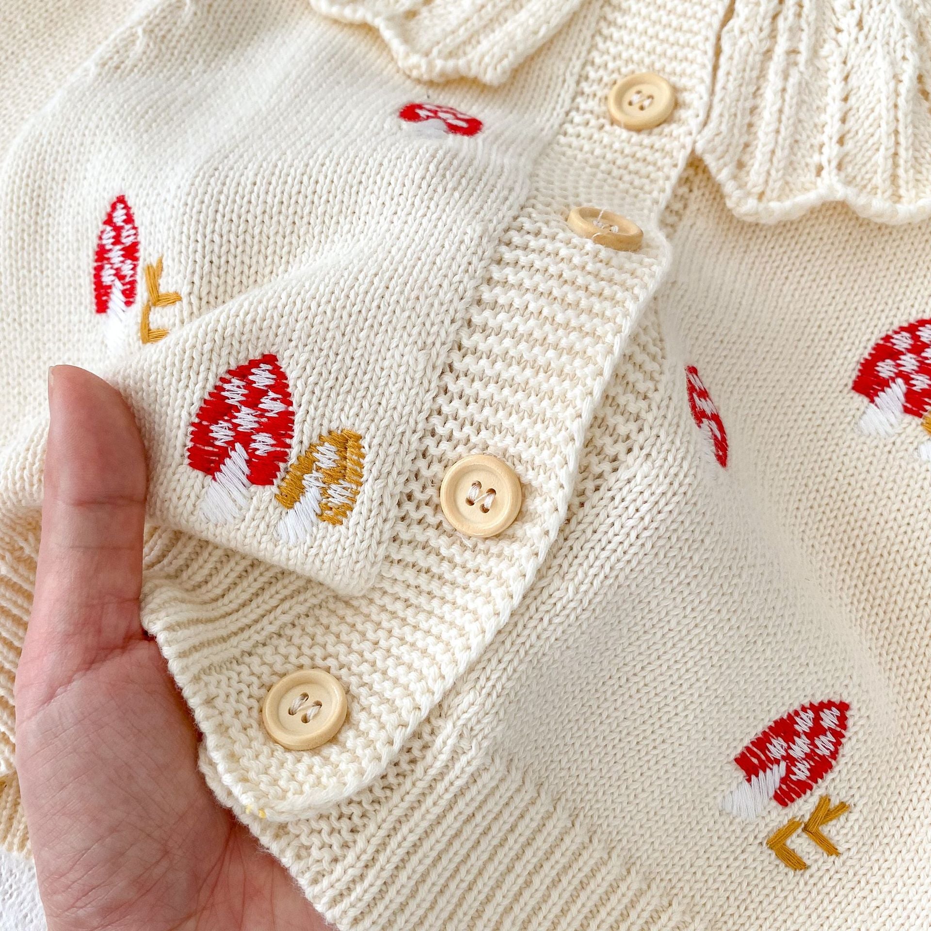 • 將圖片載入圖庫檢視器 86111SE-秋季韓版嬰幼兒蘑菇刺繡荷葉領上衣外套&針織吊帶包屁
