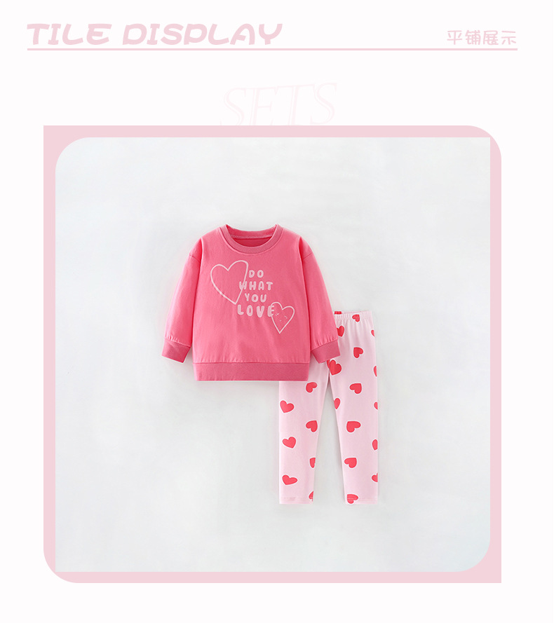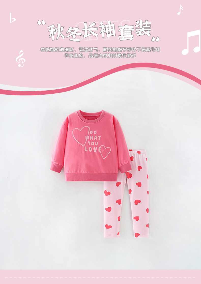 8717JG-秋季歐美中小童休閒愛心長袖上衣+長褲家居兩件套