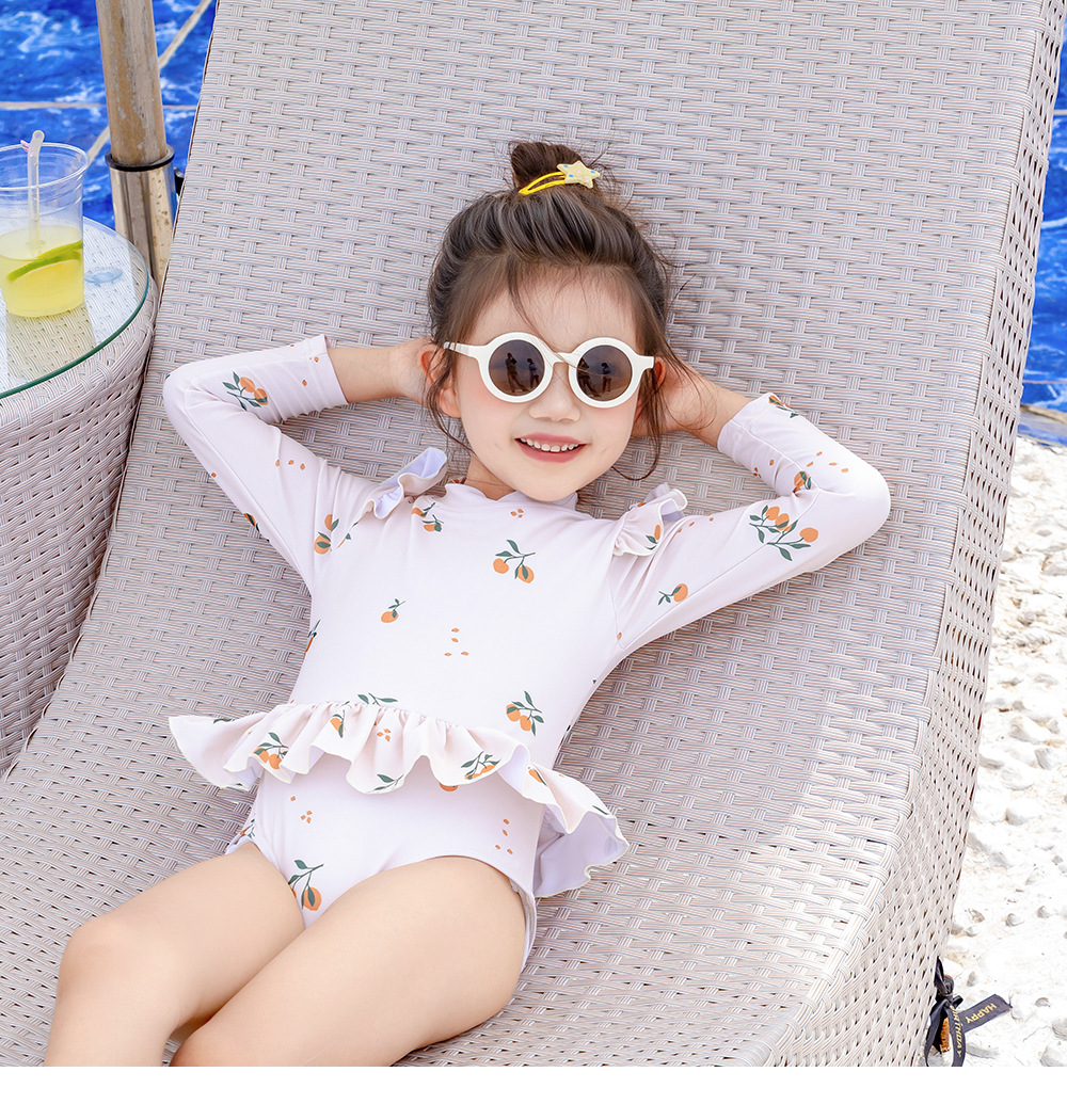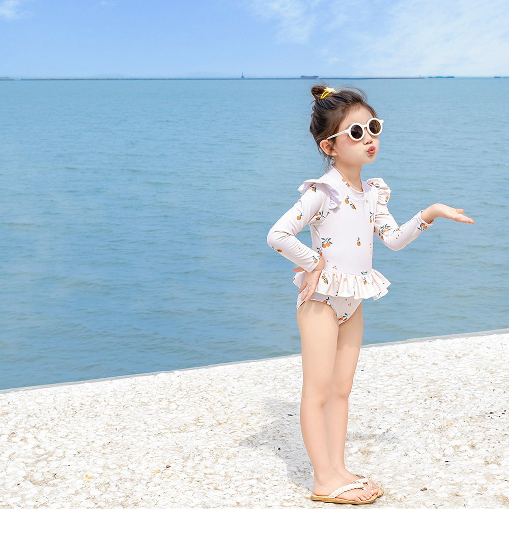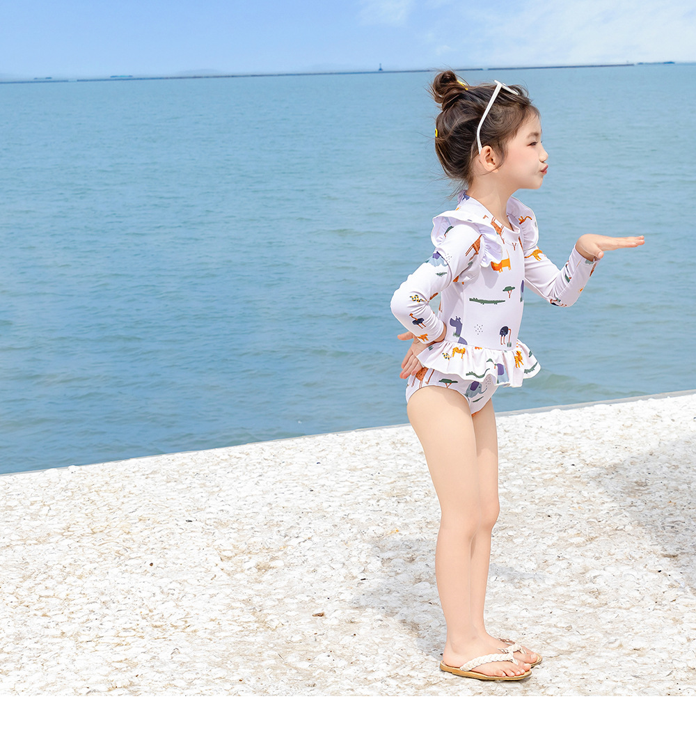 9501LS-夏季女童長袖防曬泳衣+泳帽