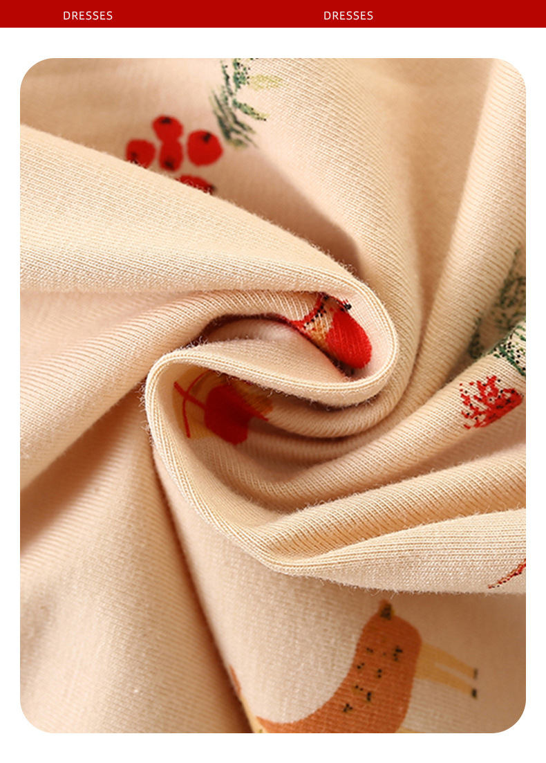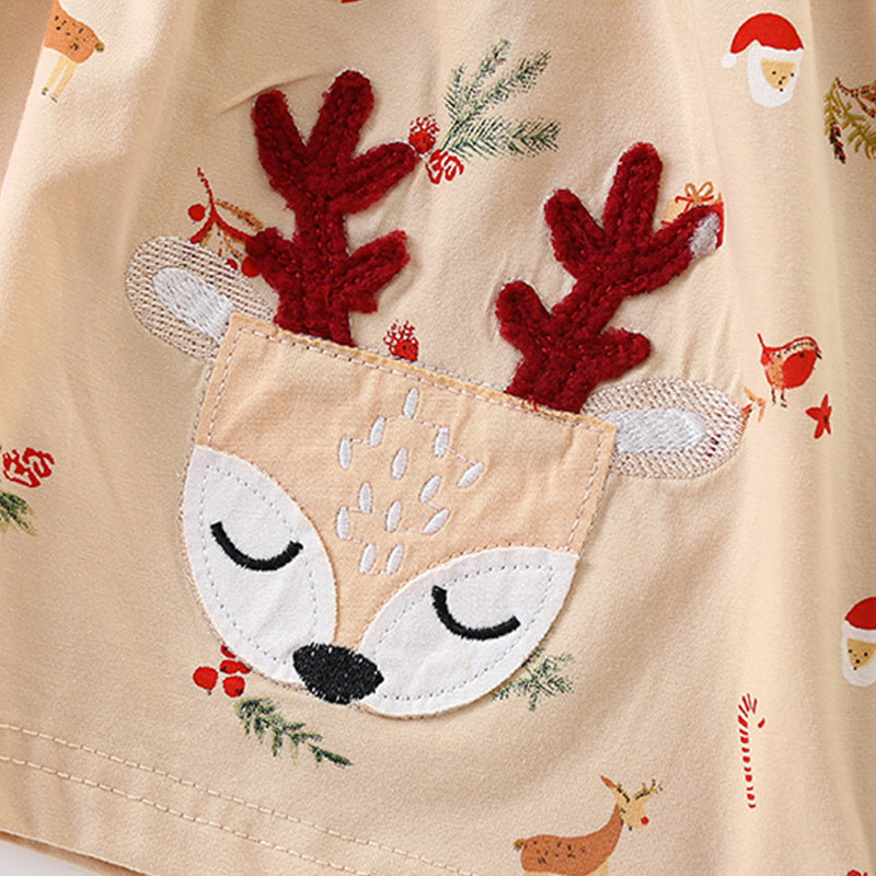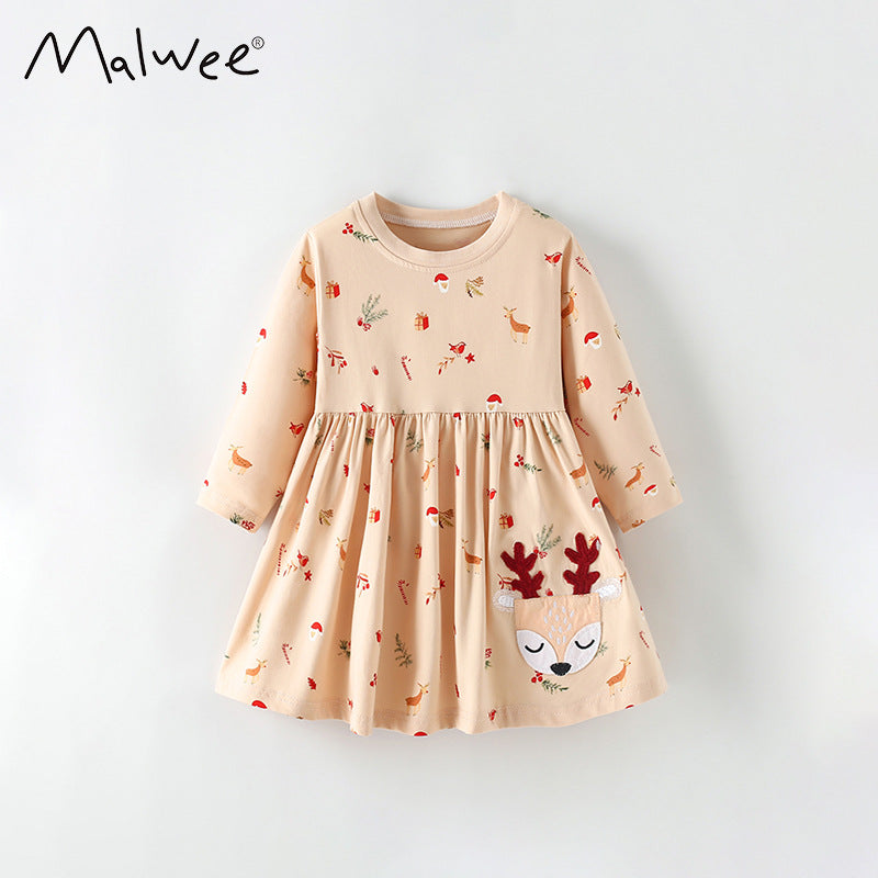 9806LS-Malwee秋冬歐美聖誕滿版麋鹿口袋圓領長袖連衣裙