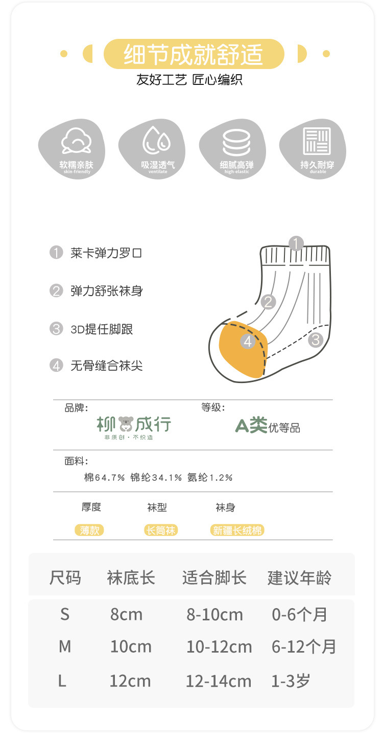B3034 可愛小熊款 / S碼襪底長8cm(建議0-6個月)