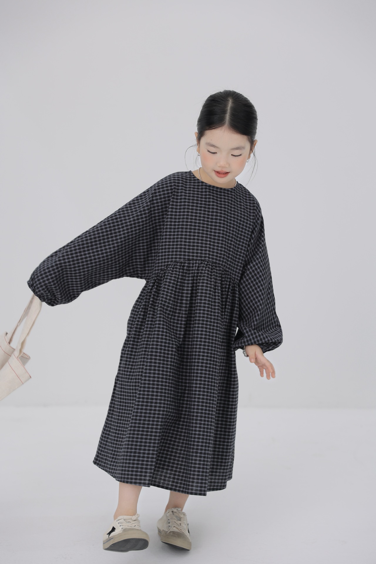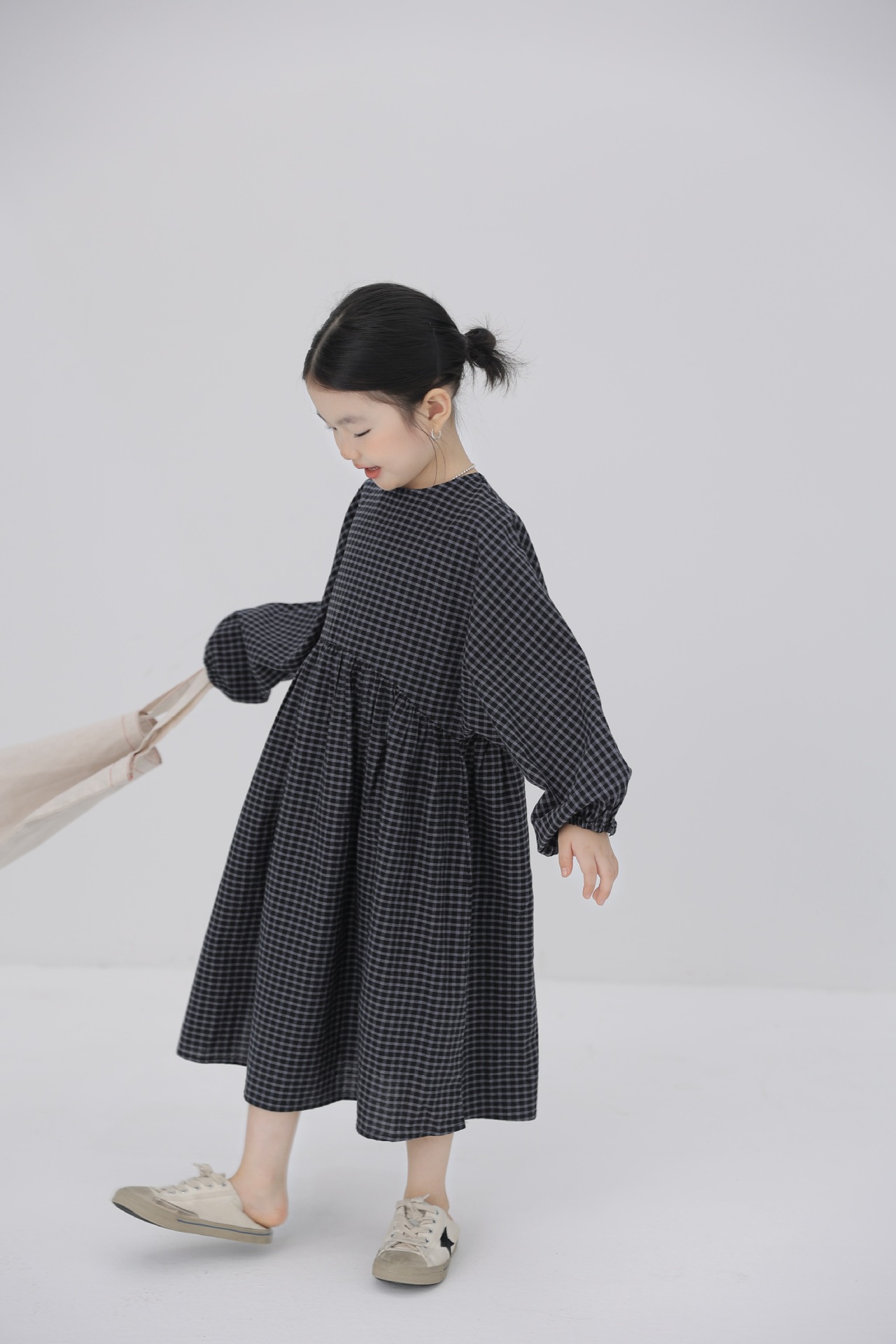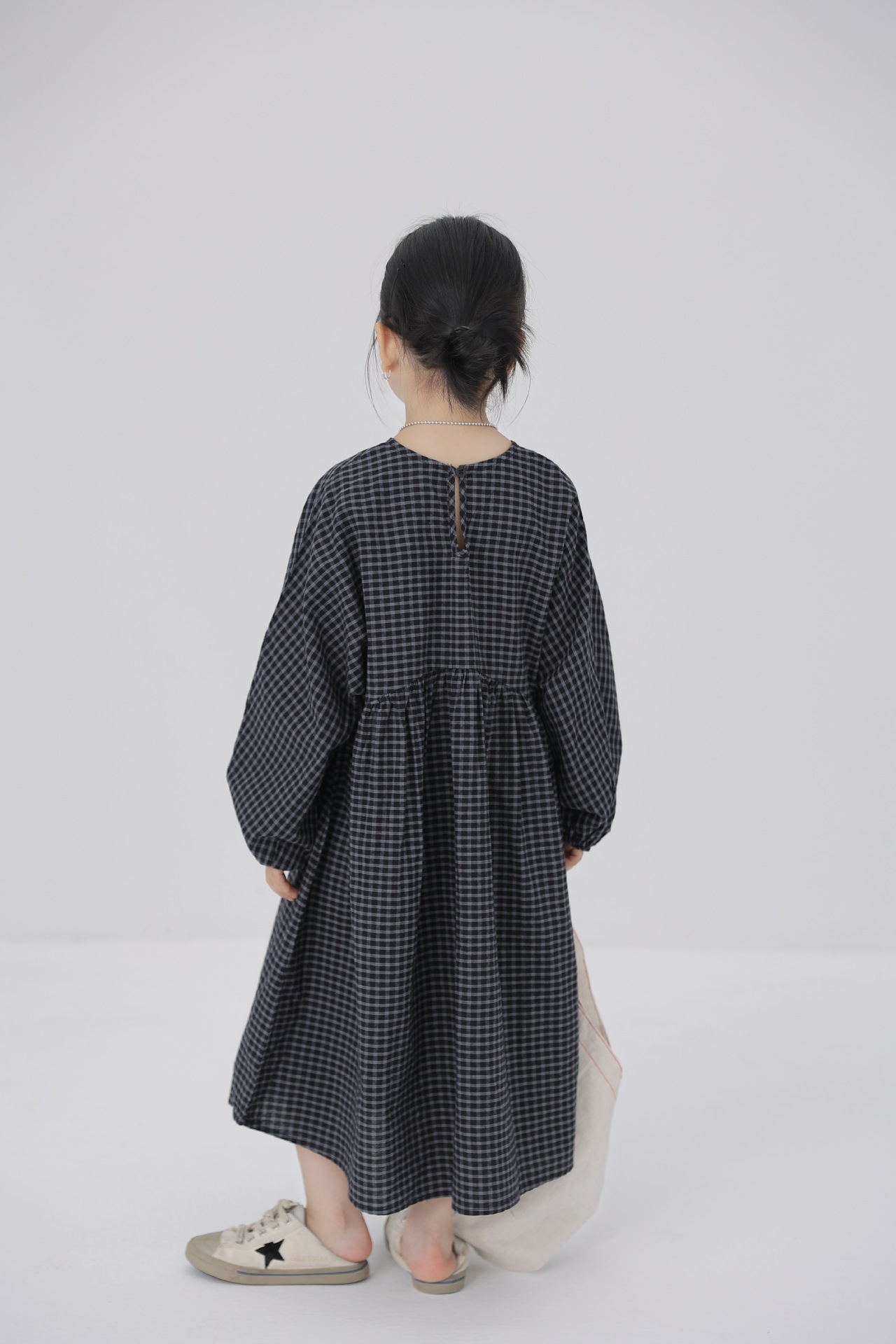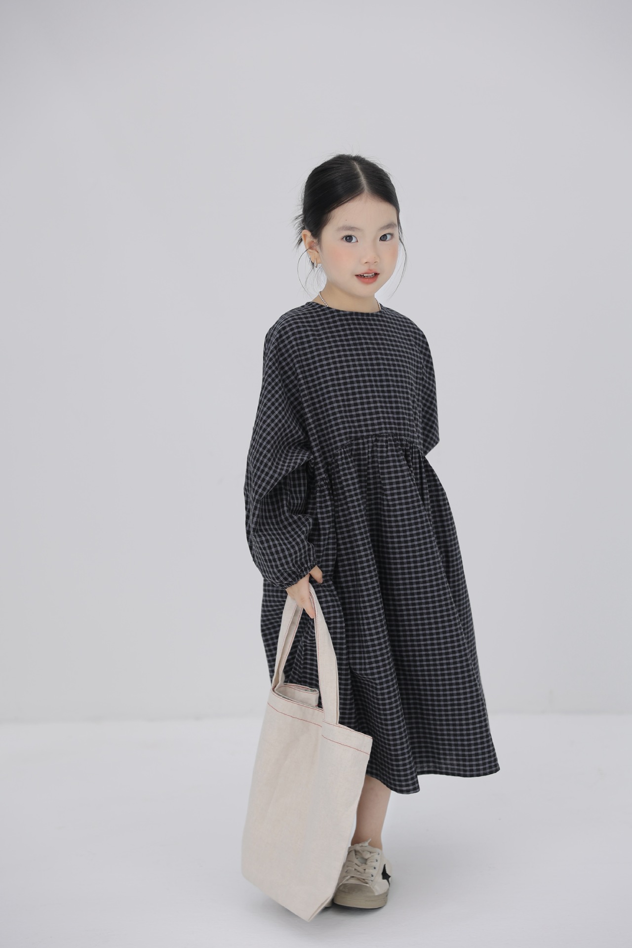 BB2539PCW-秋款日系女童格子蝙蝠袖親子洋裝