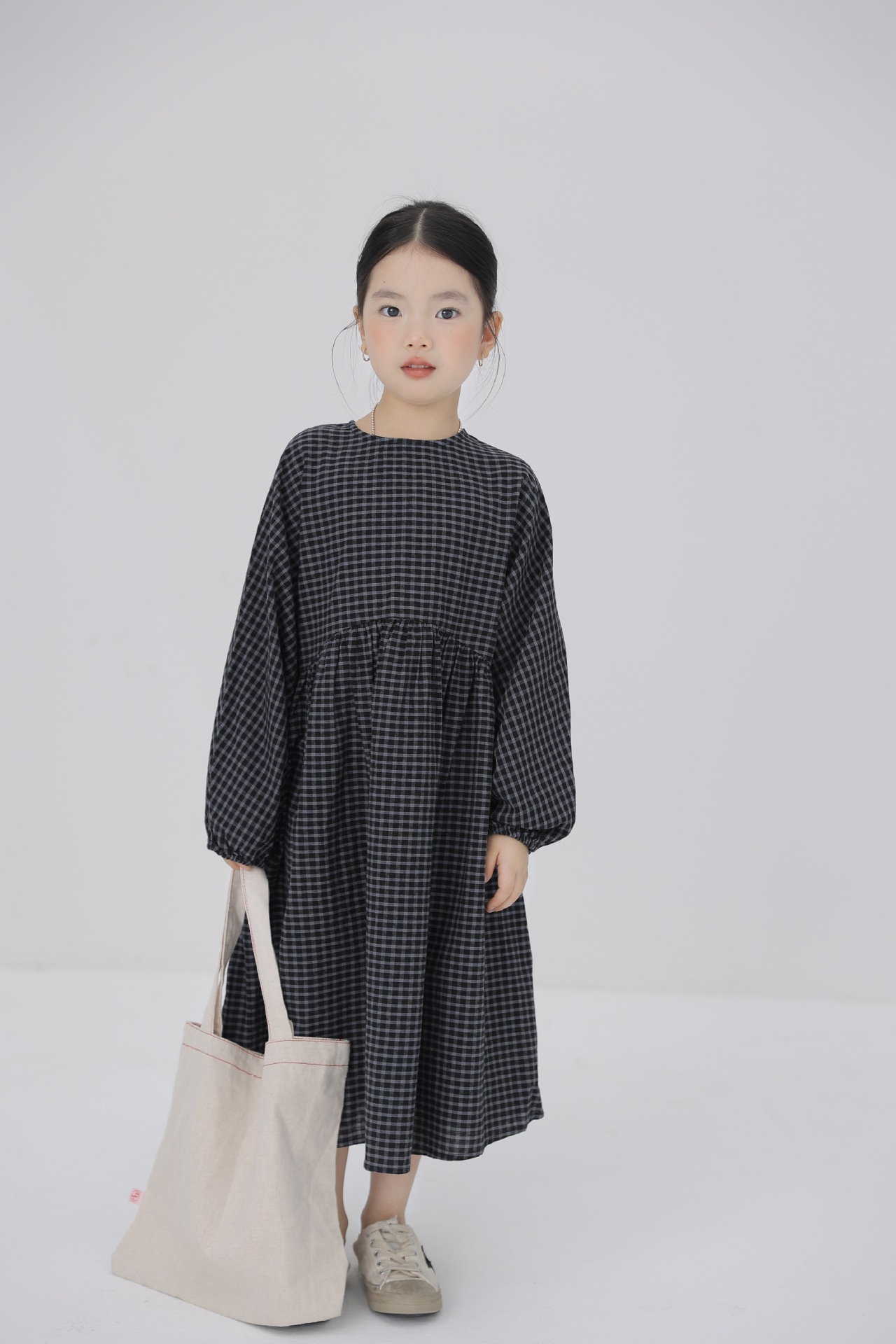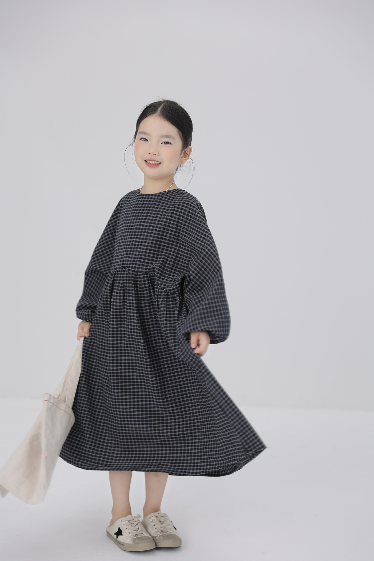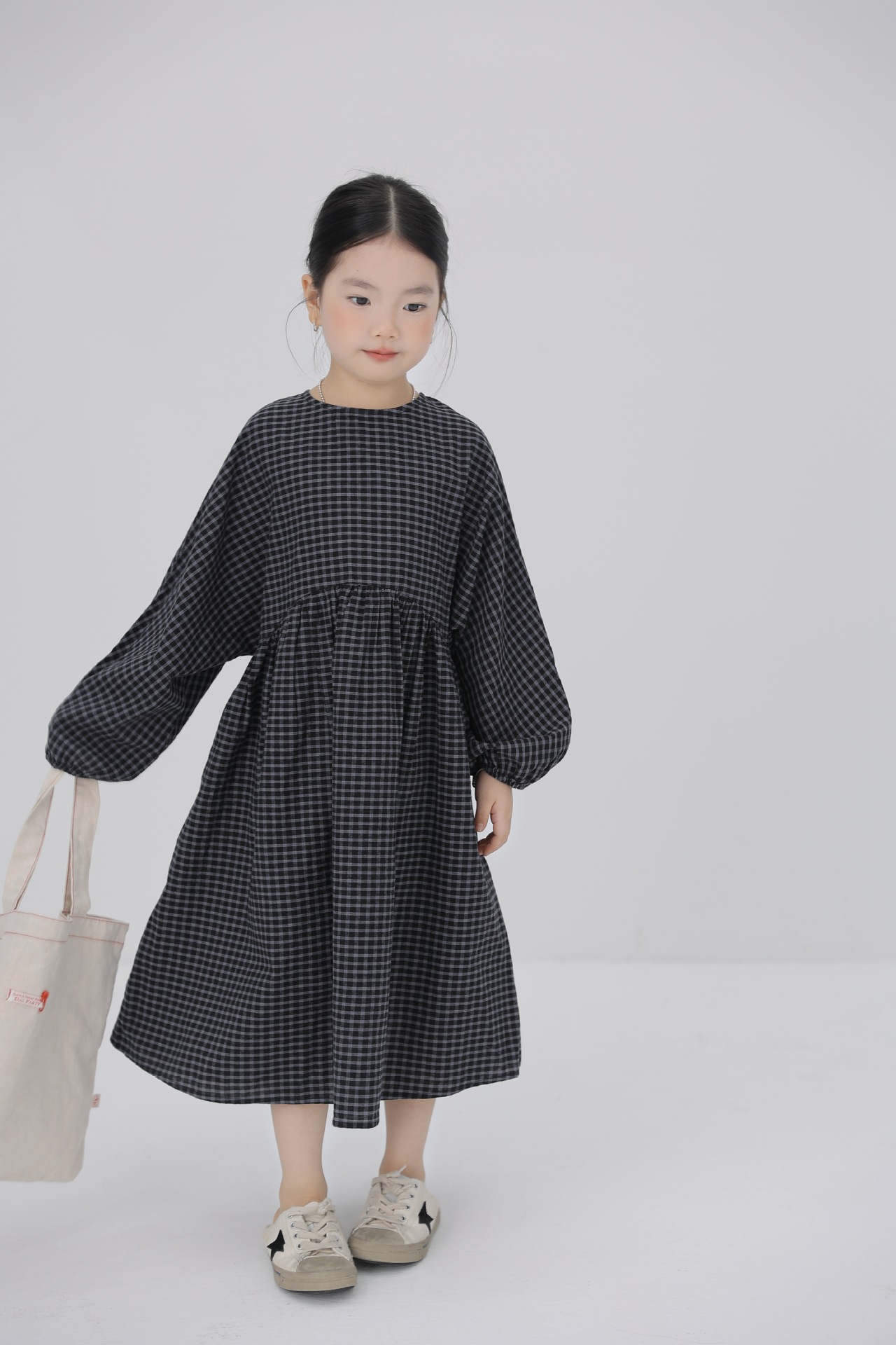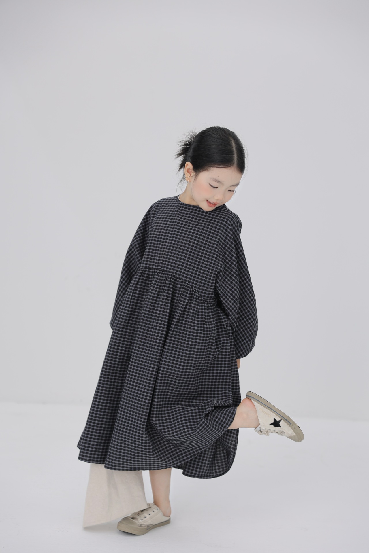 BB2539PCW-秋款日系女童格子蝙蝠袖親子洋裝