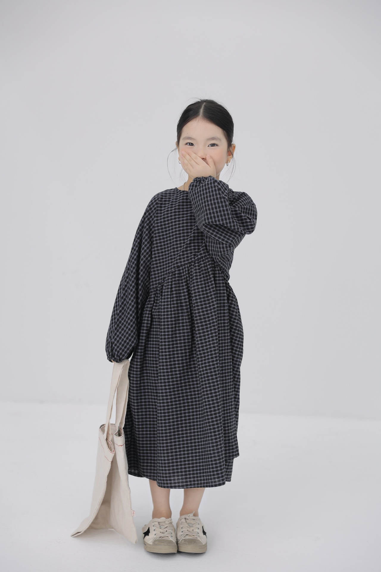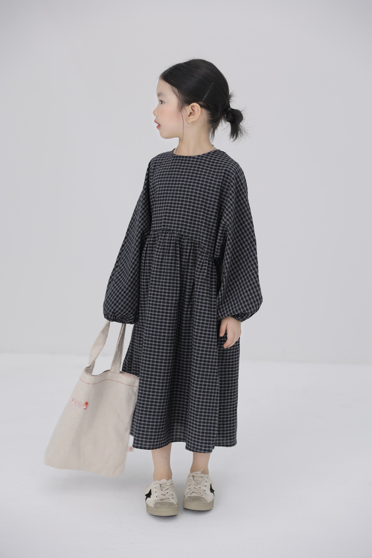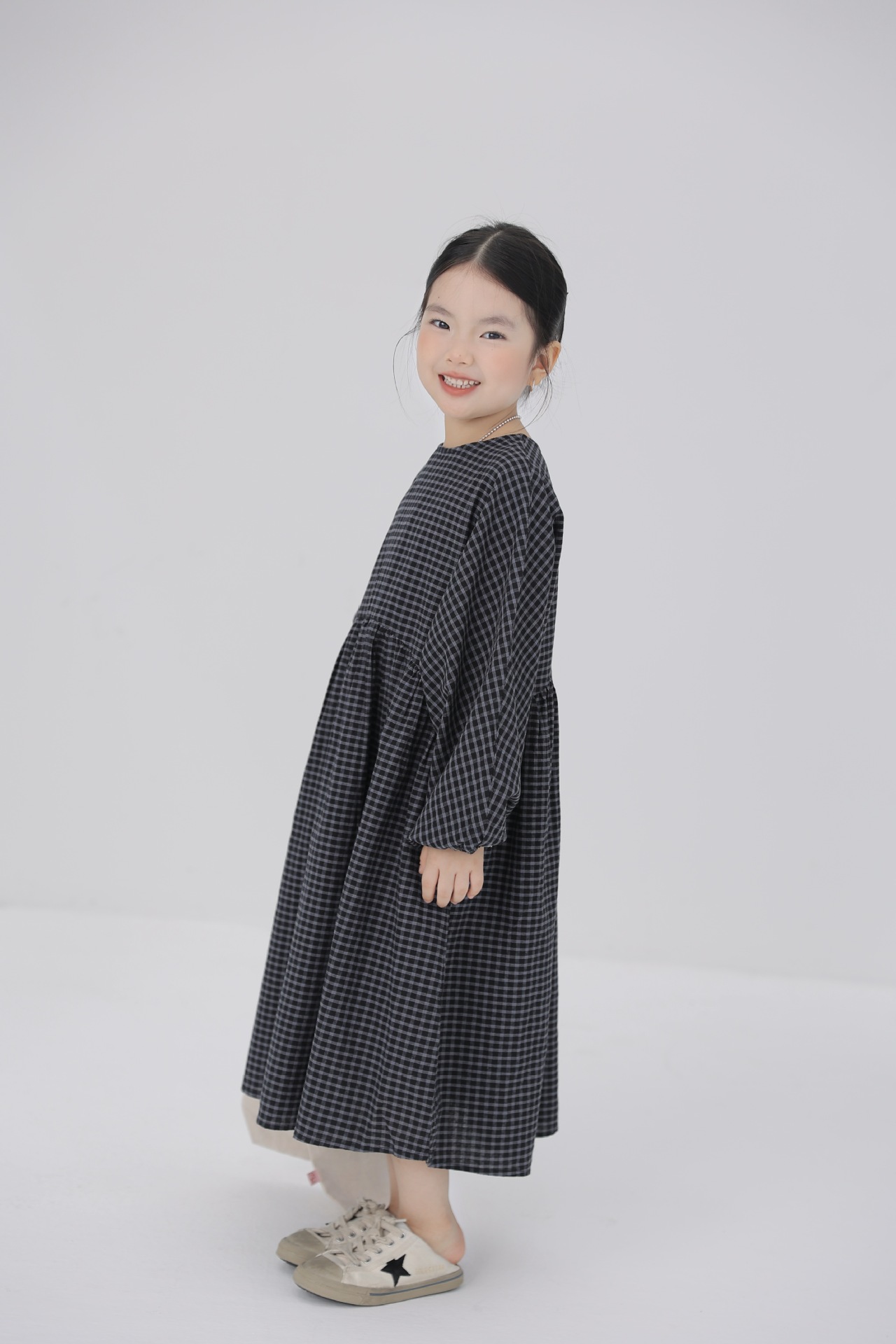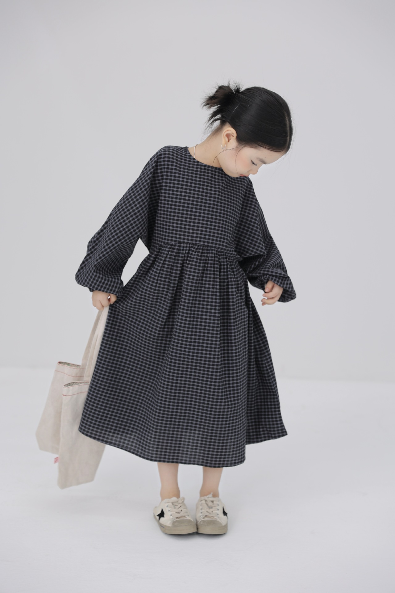 BB2539PCW-秋款日系女童格子蝙蝠袖親子洋裝