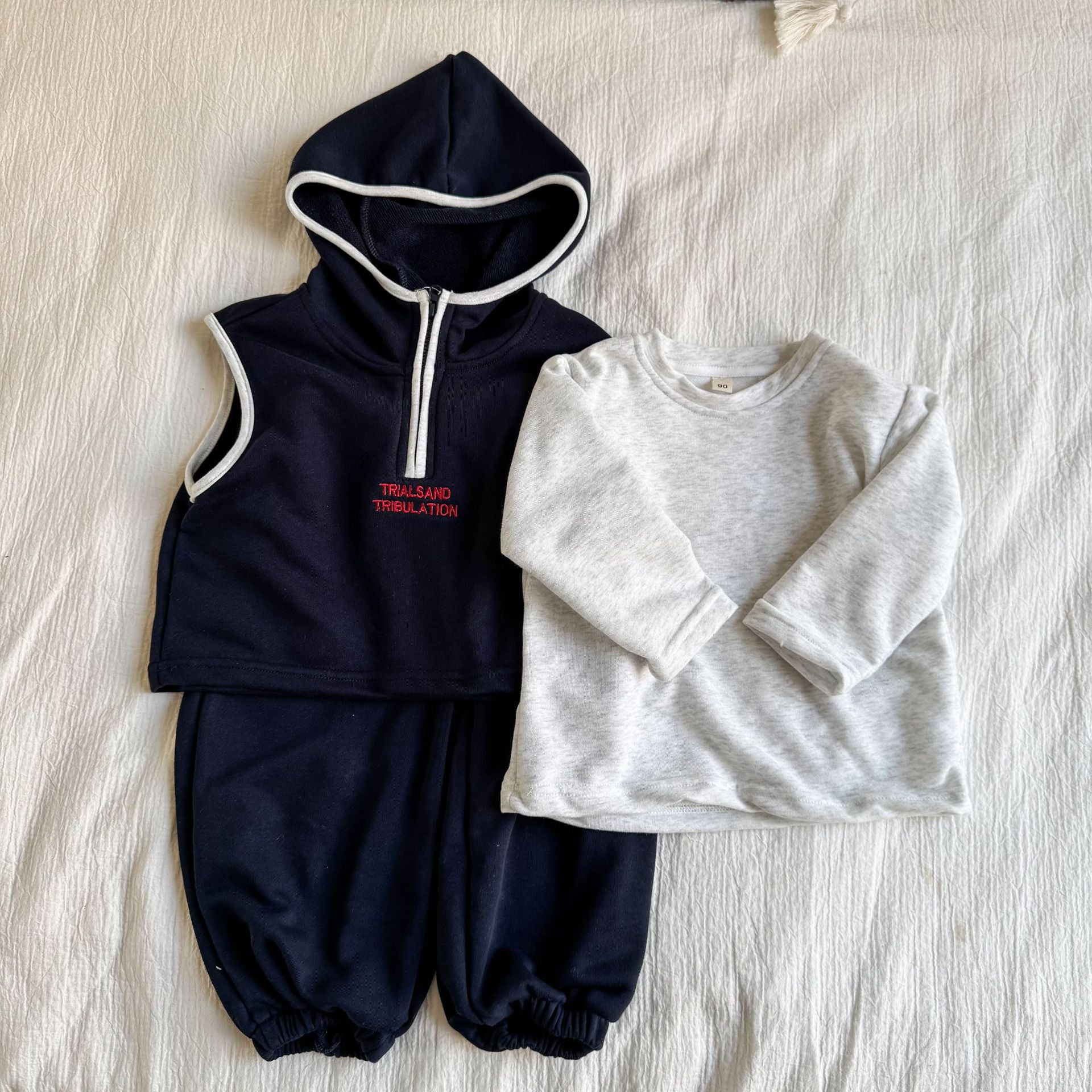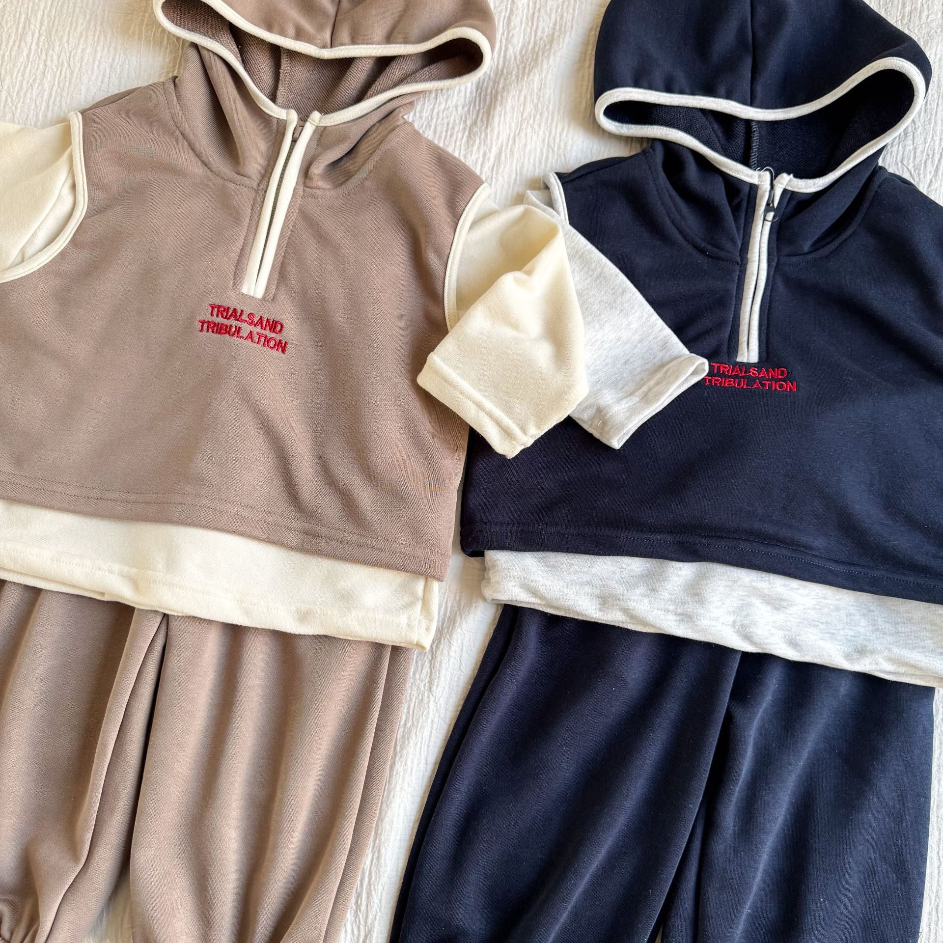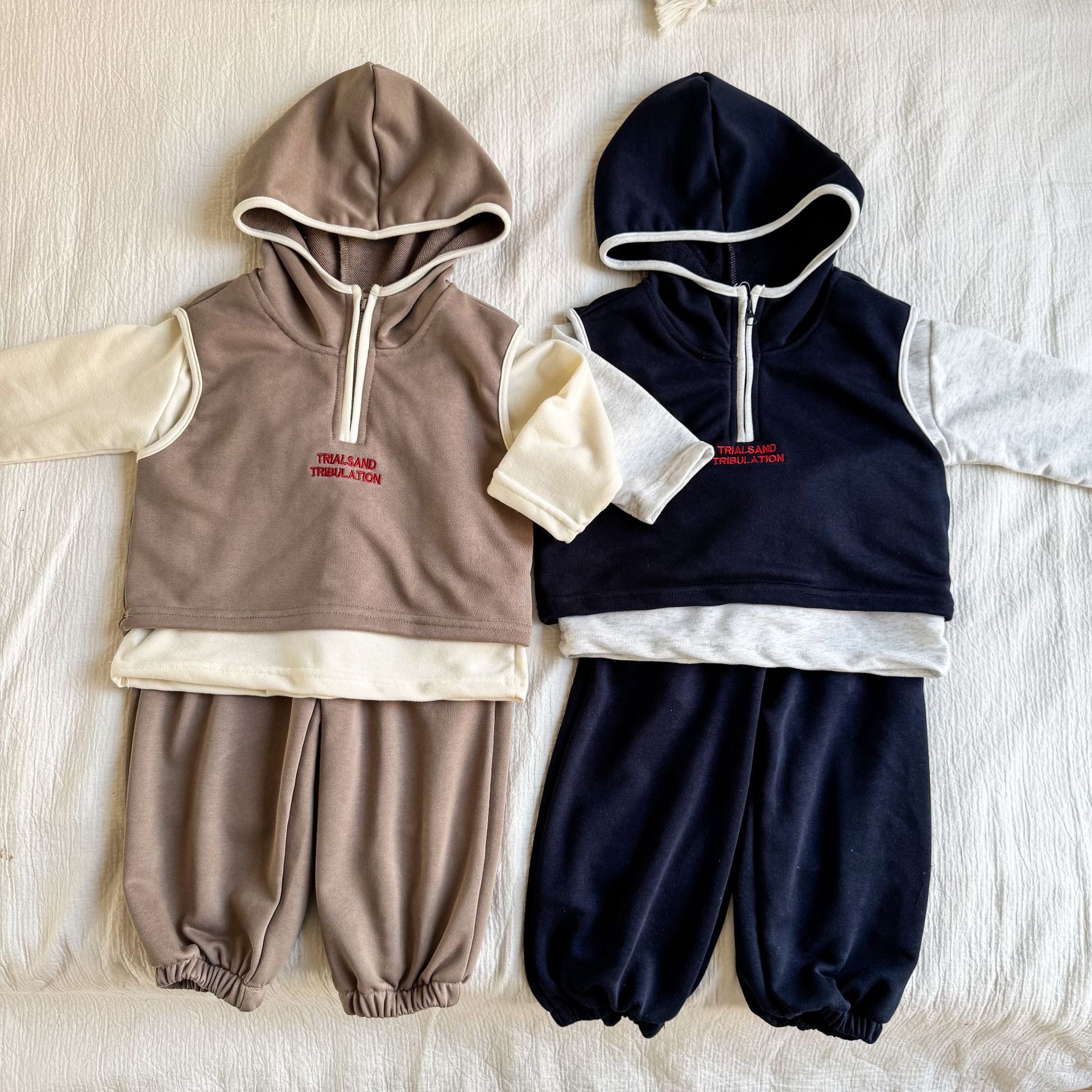 CZ260890TG-春秋季連帽辦拉鍊背心休閒三件套裝