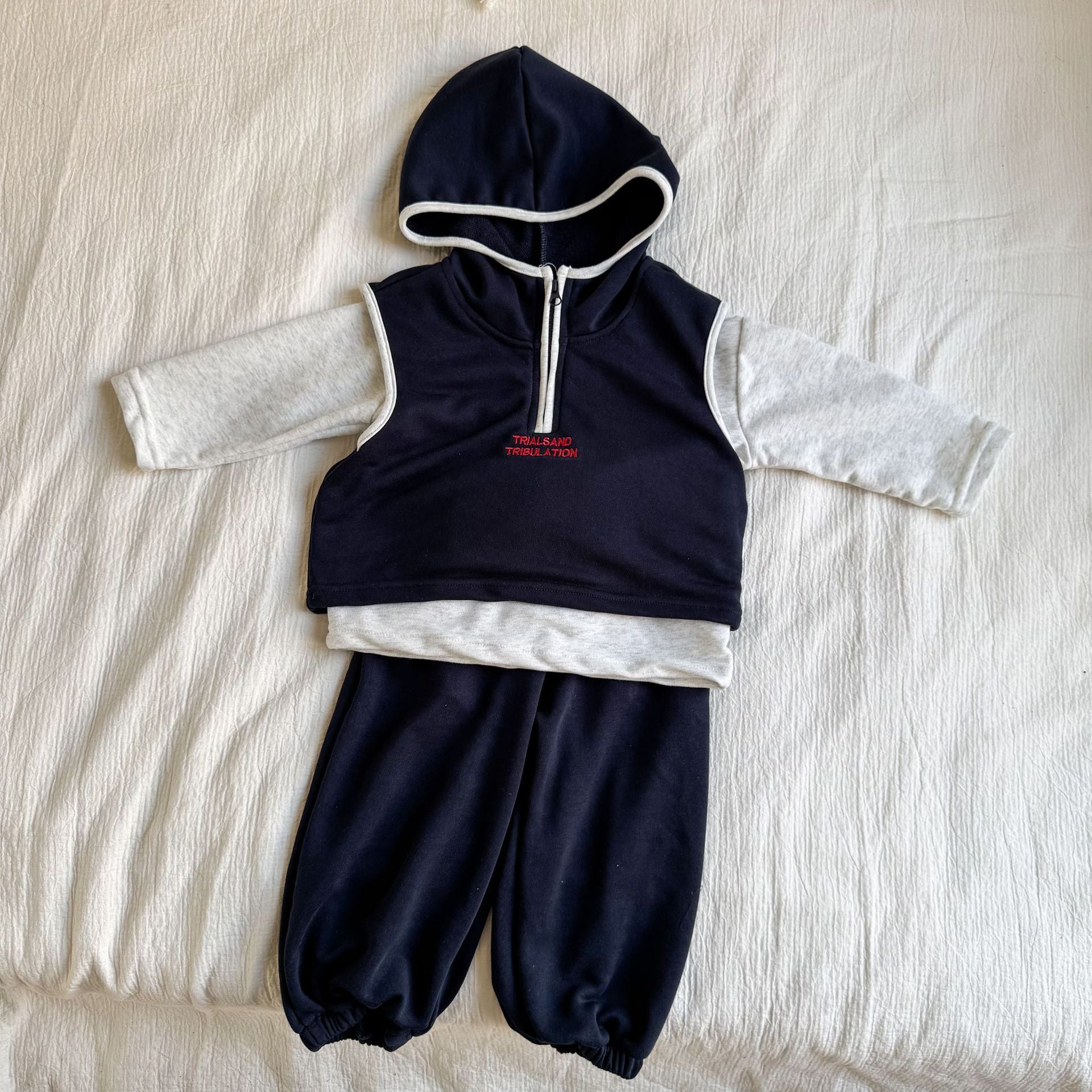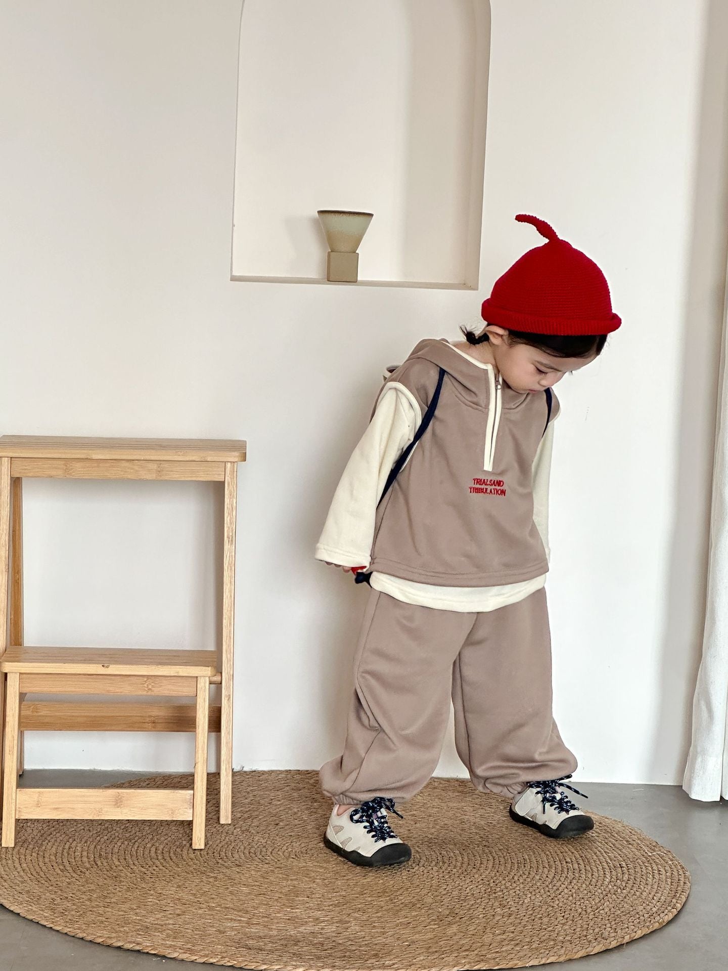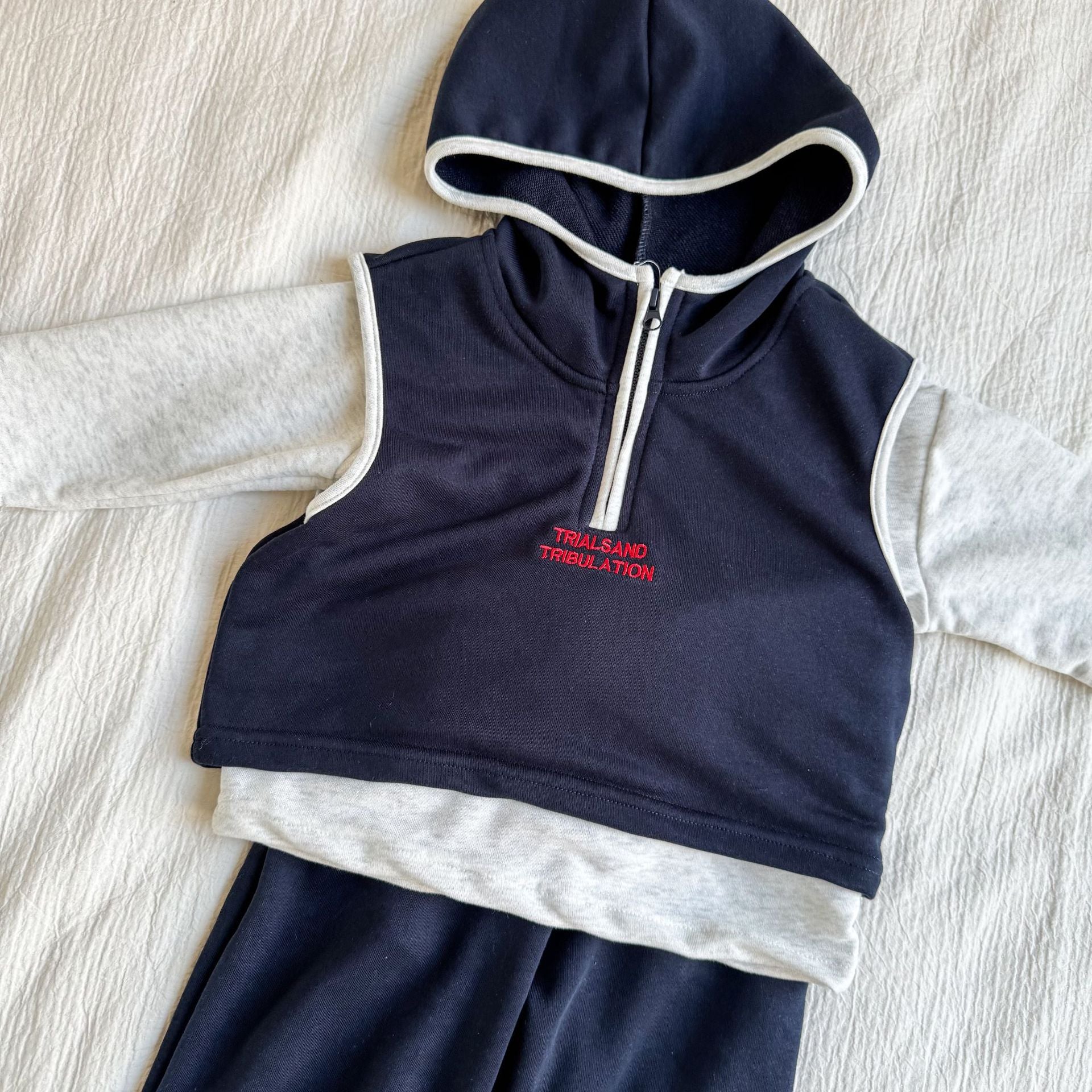 CZ260890TG-春秋季連帽辦拉鍊背心休閒三件套裝