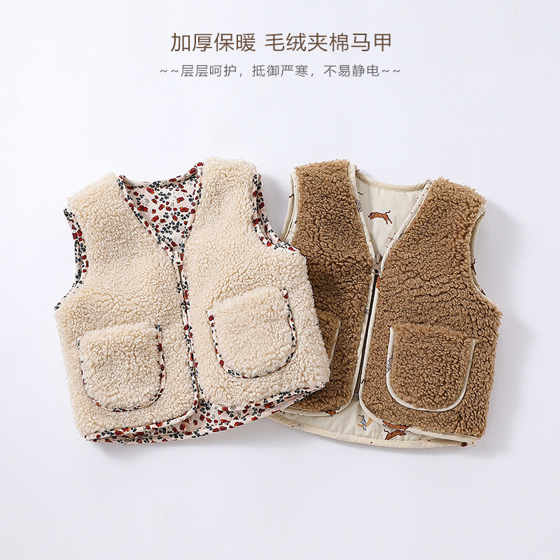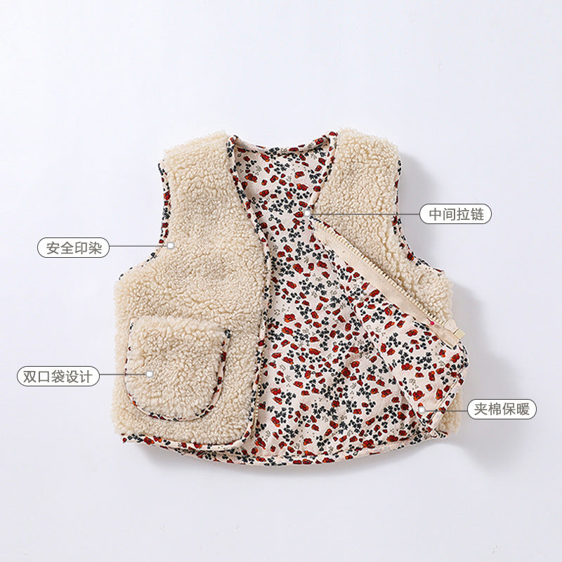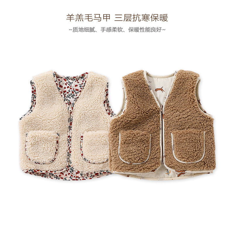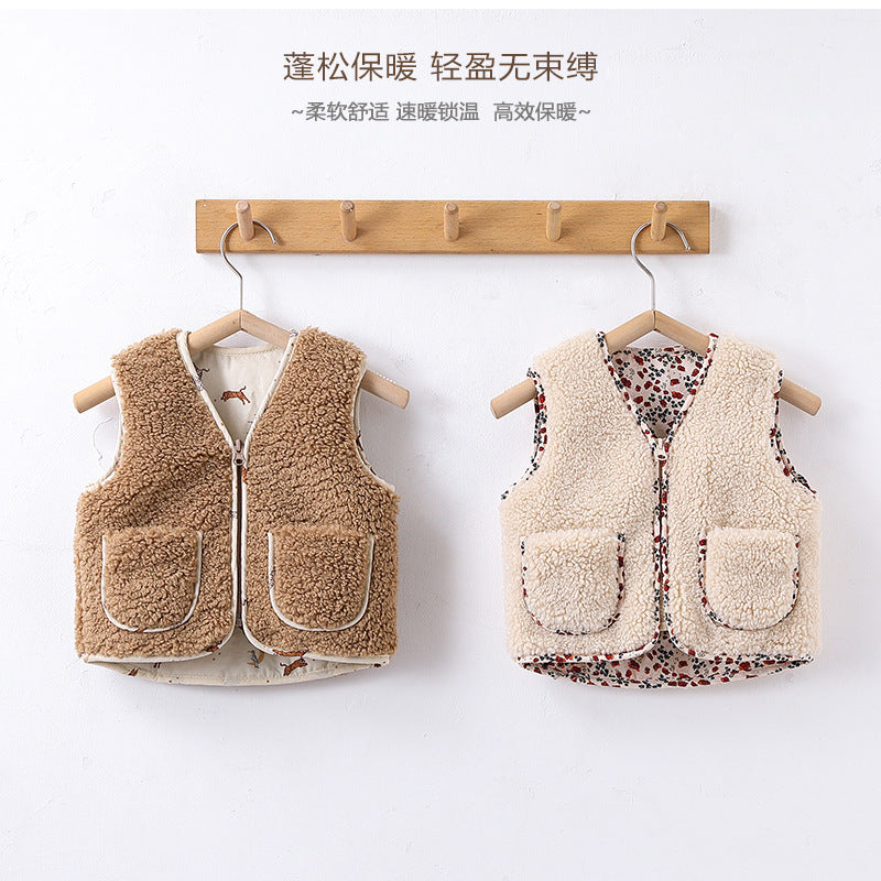 D22901SE-秋冬羊羔絨口袋開衫背心