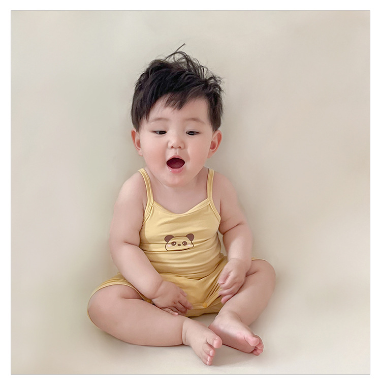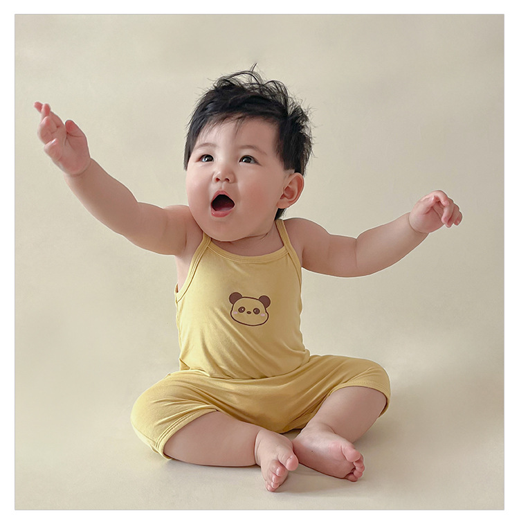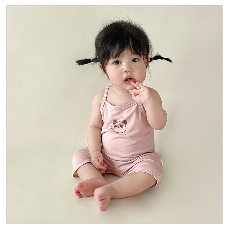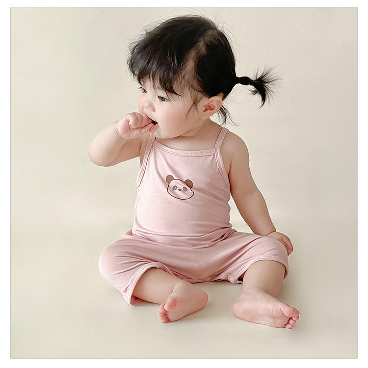D23094LS-夏季莫代爾吊帶無袖小熊冰絲爬服