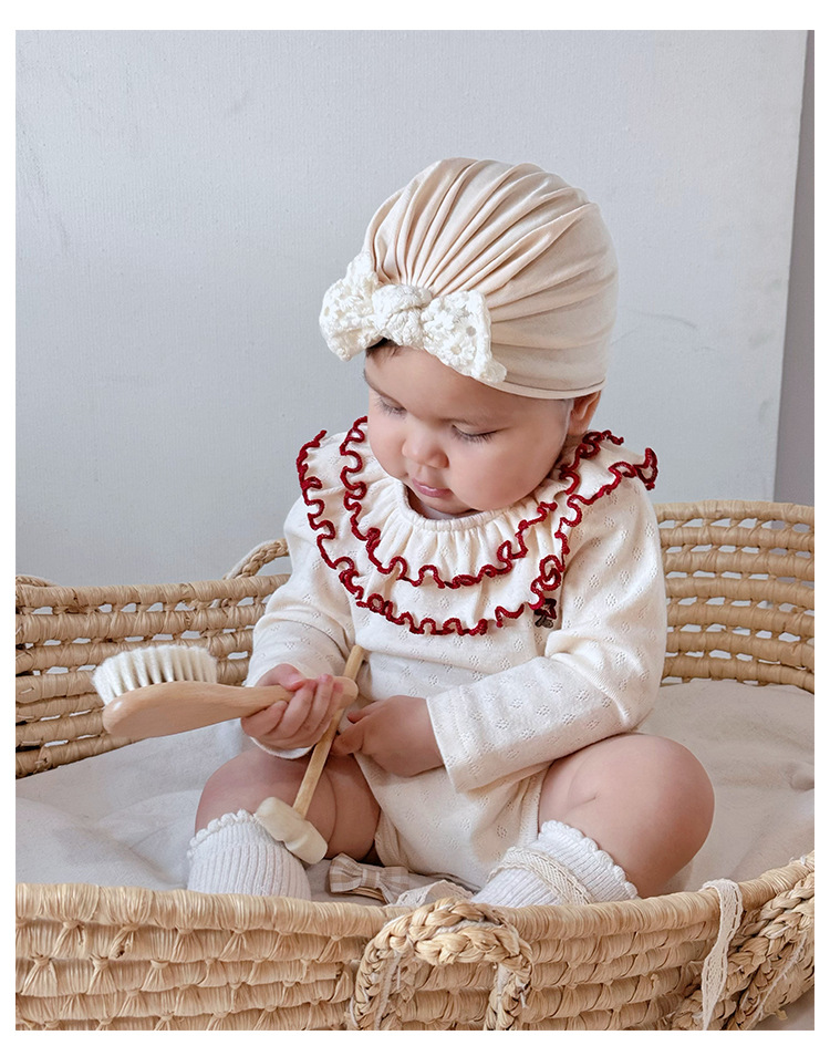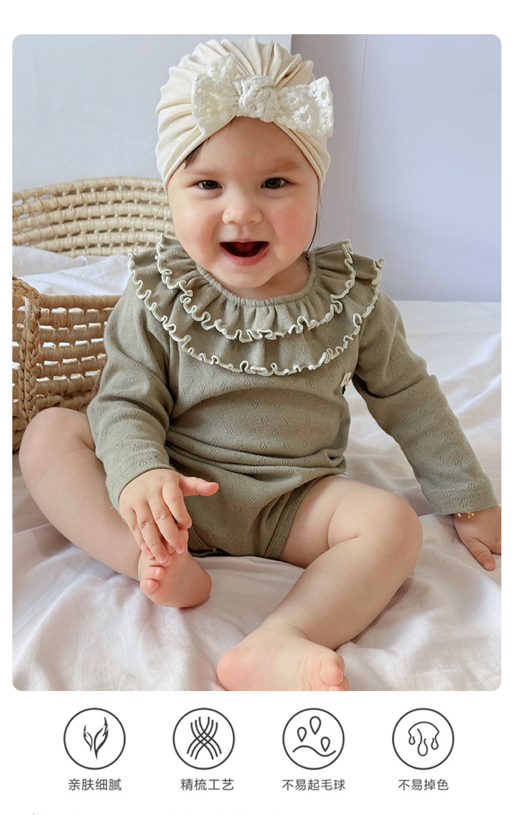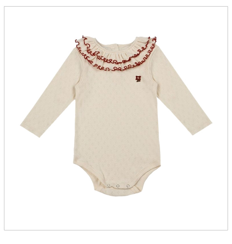 D25002LS-秋裝嬰兒長袖花邊領純棉包屁衣
