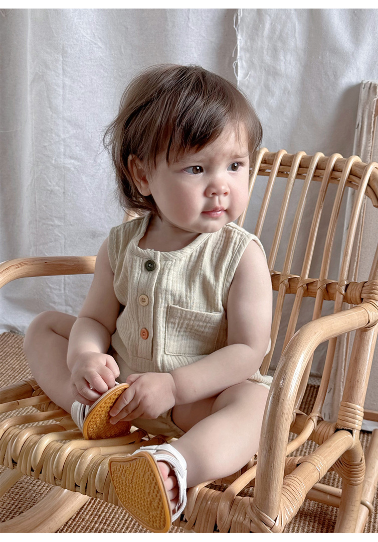 D25073LS-夏款純棉彩扣包屁衣