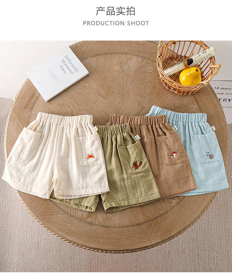 D25111PA-夏季兒童純棉刺繡休閒短褲