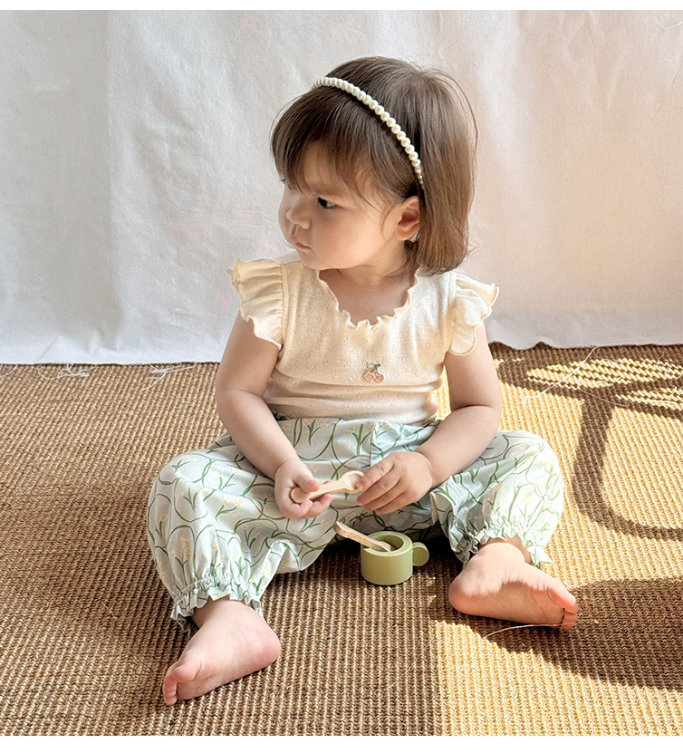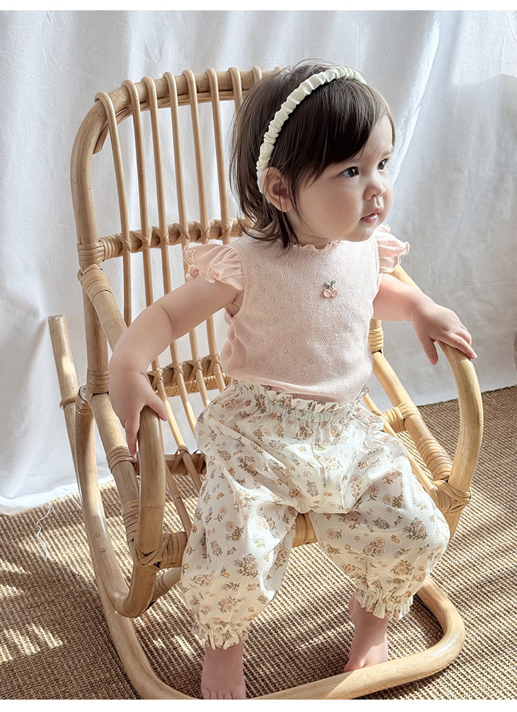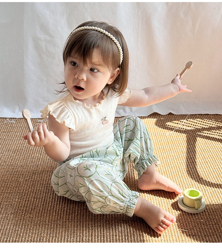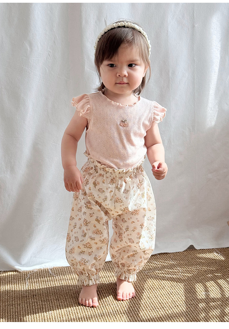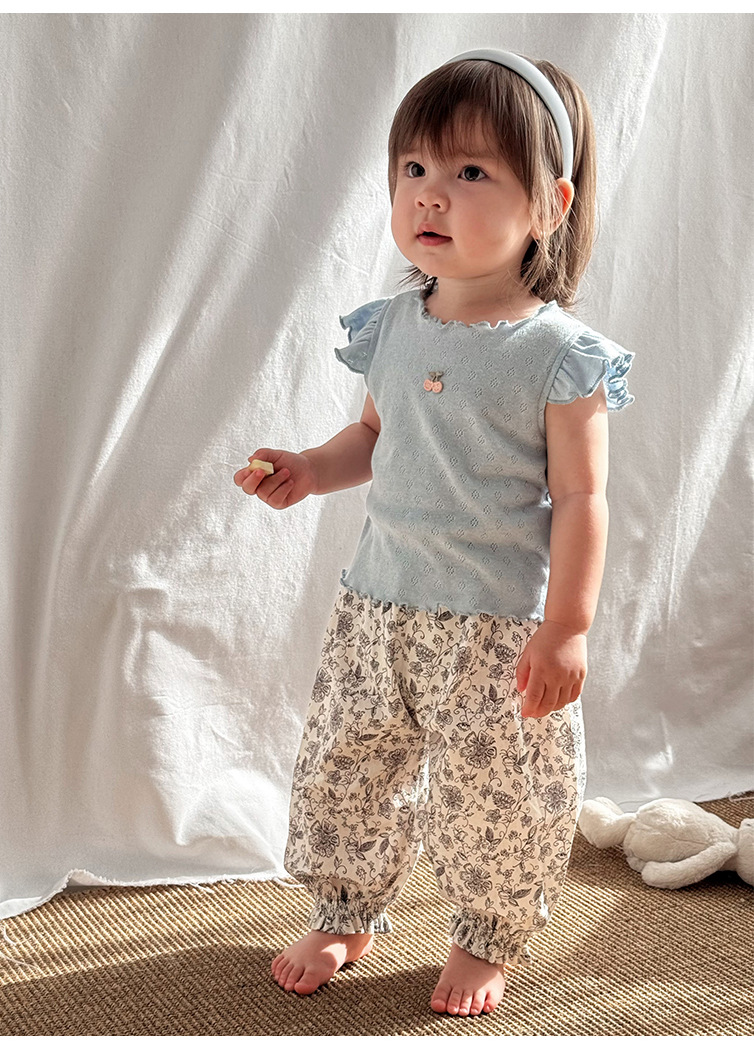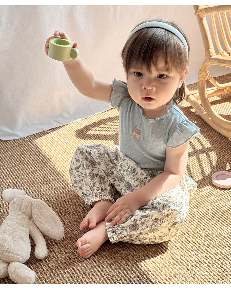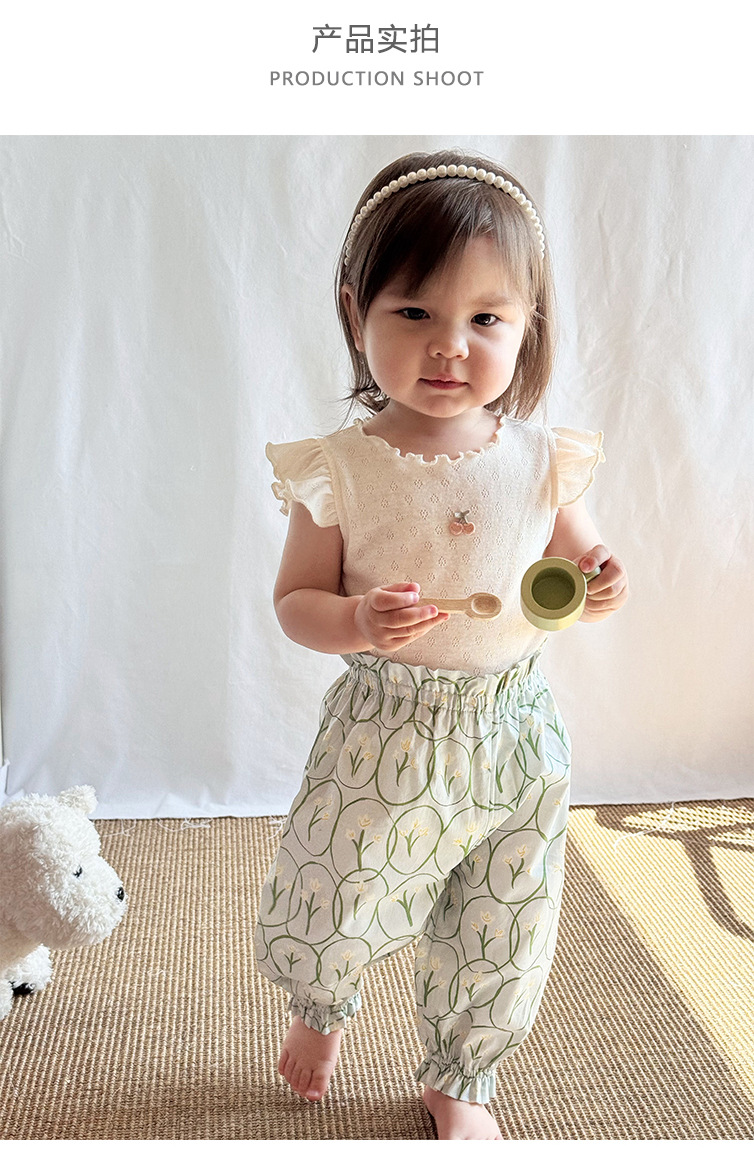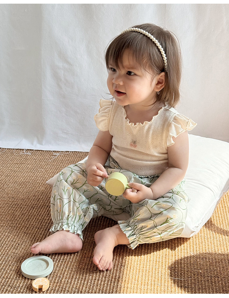 D25115SE-夏季女童花邊袖上衣&防蚊褲