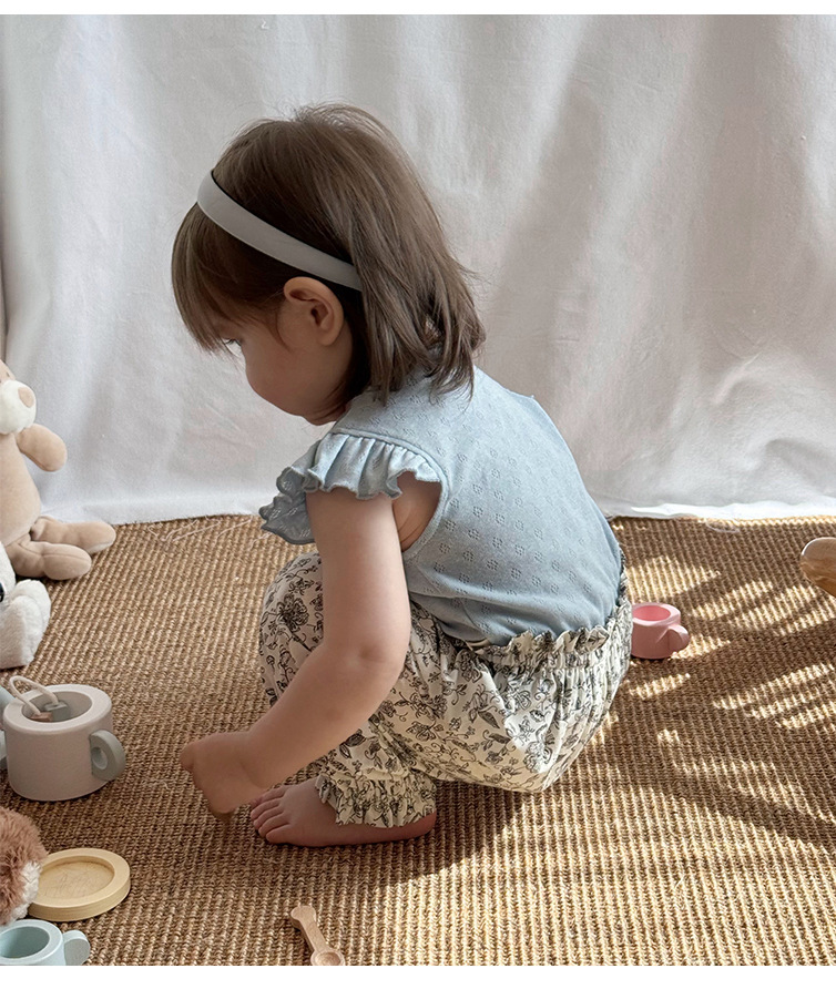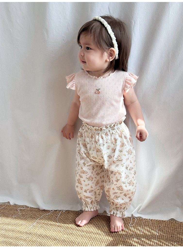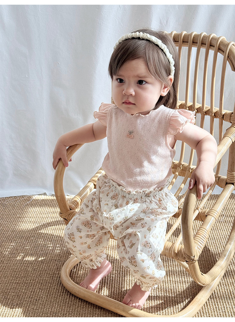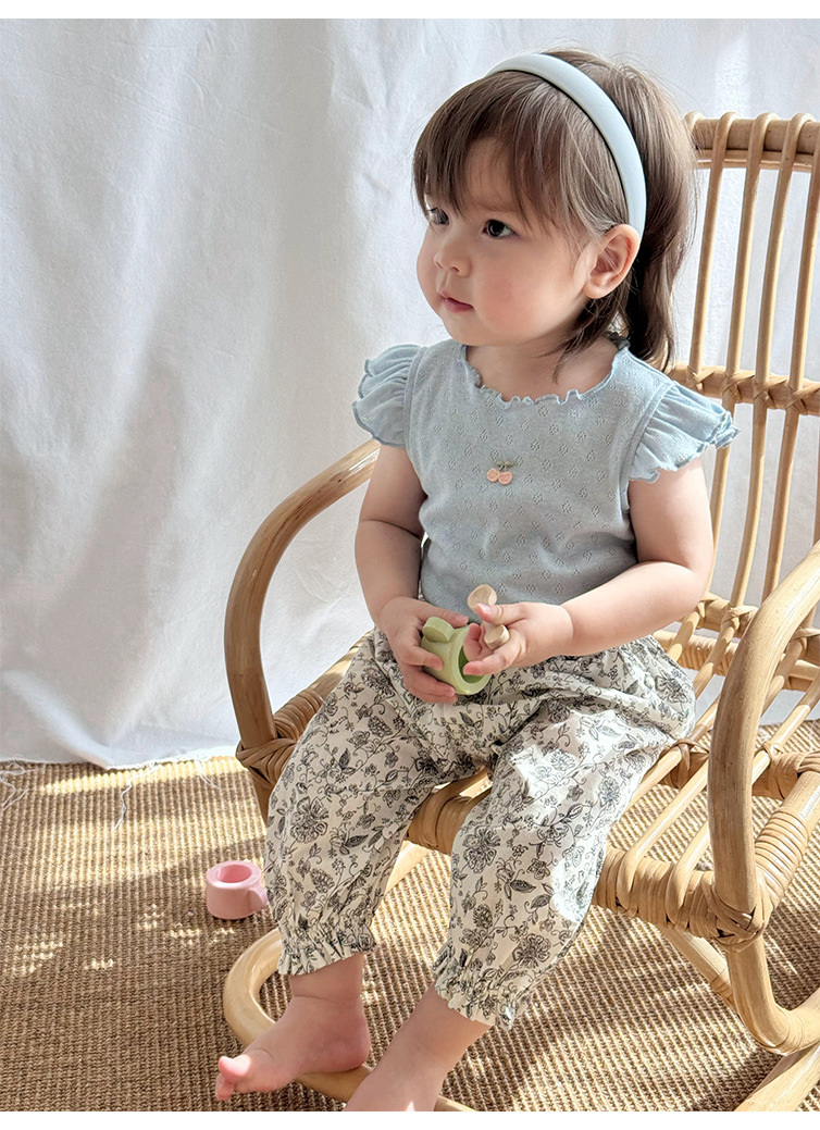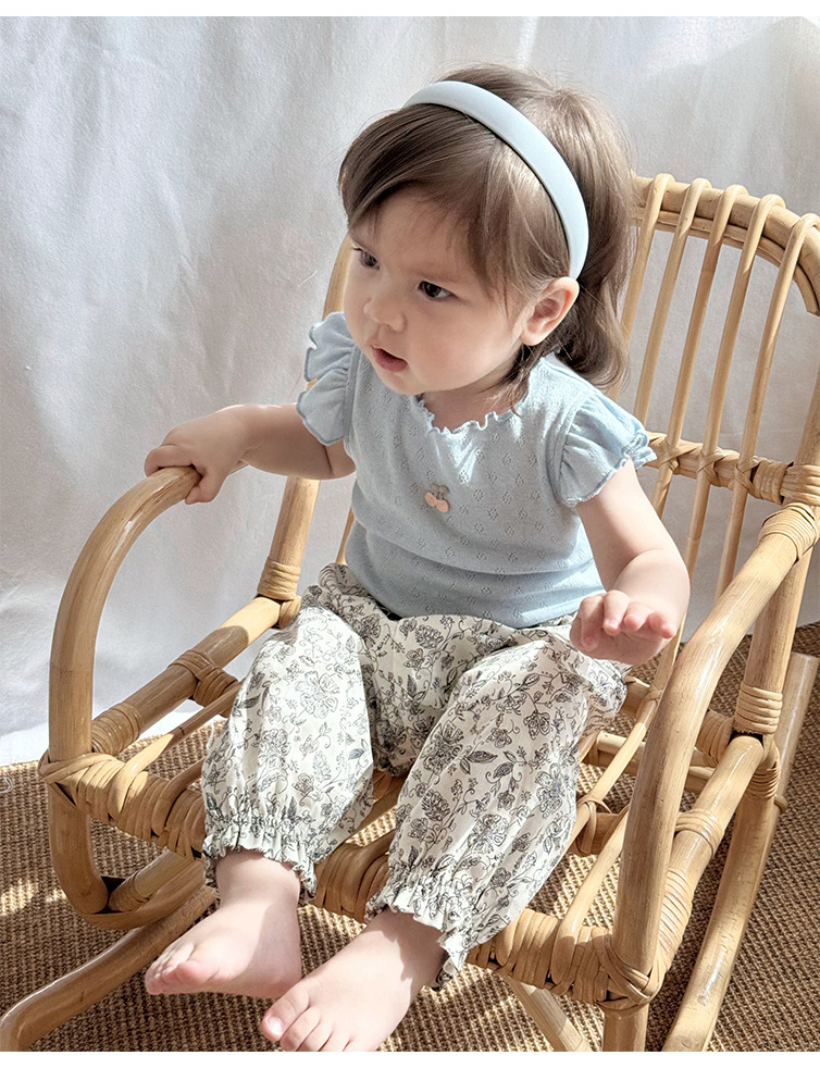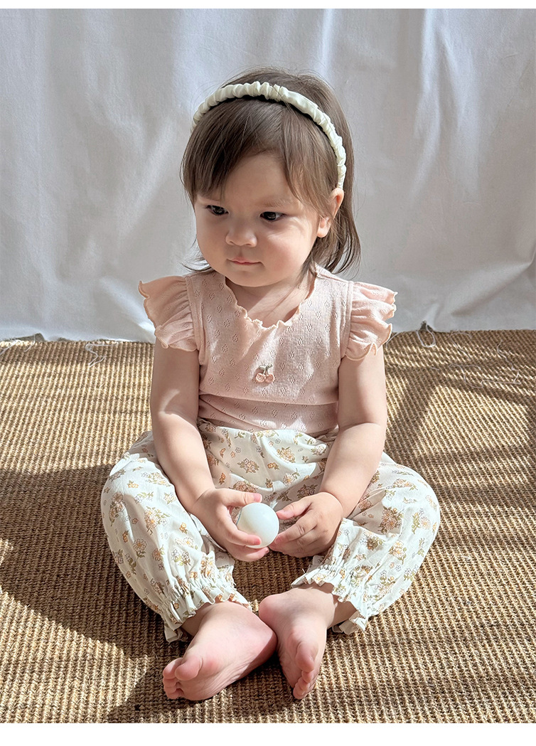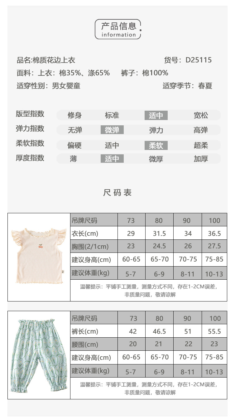 D25115SE-夏季女童花邊袖上衣&防蚊褲