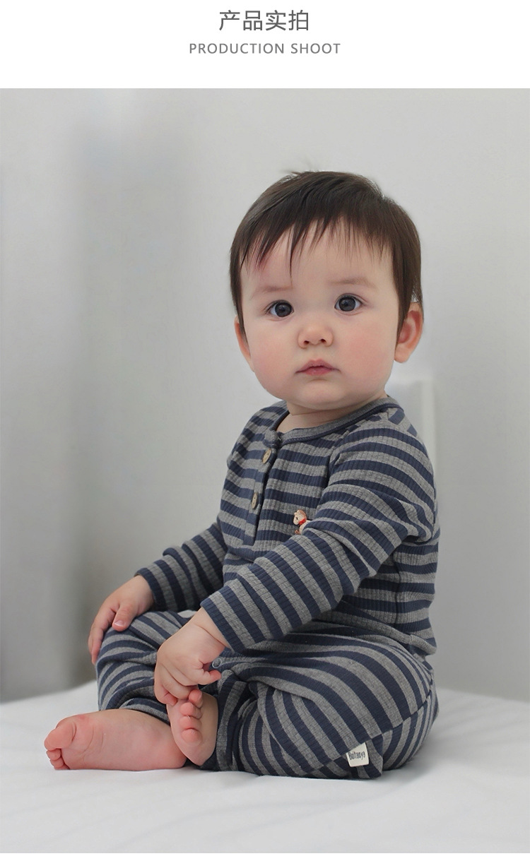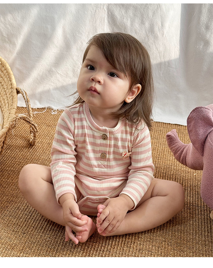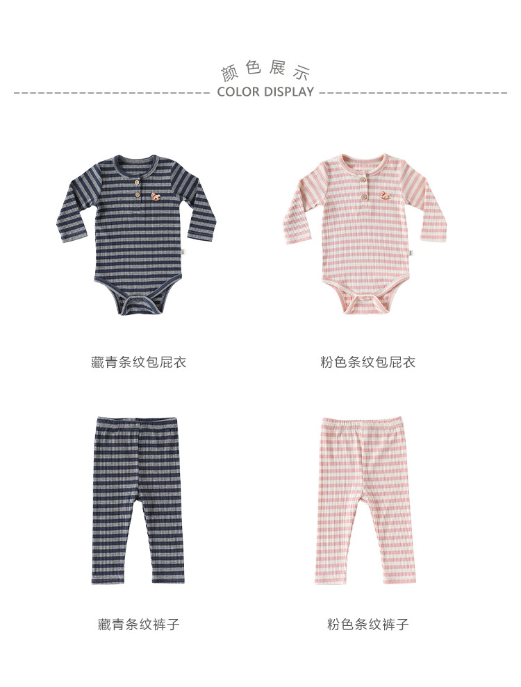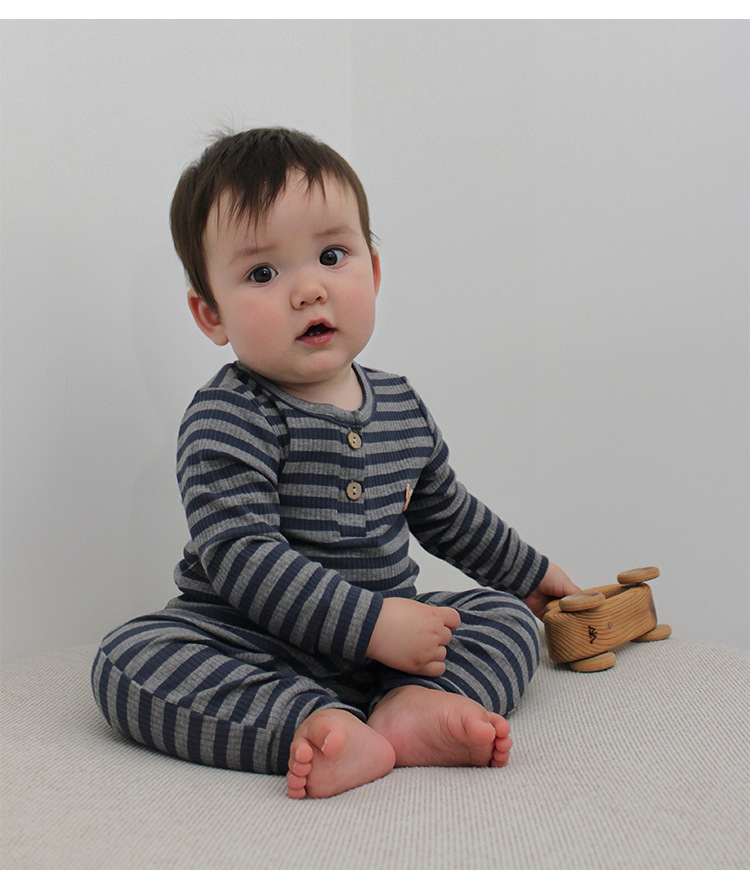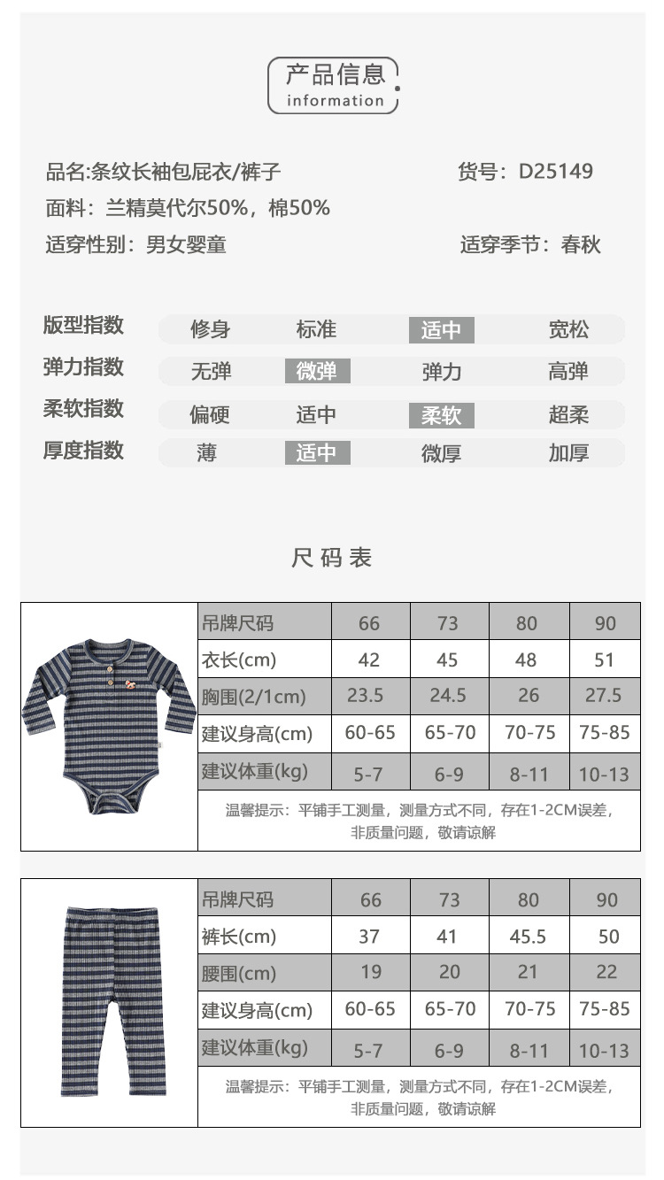 D25149LS-春秋男女寶寶條紋長袖莫代爾包屁衣&長褲