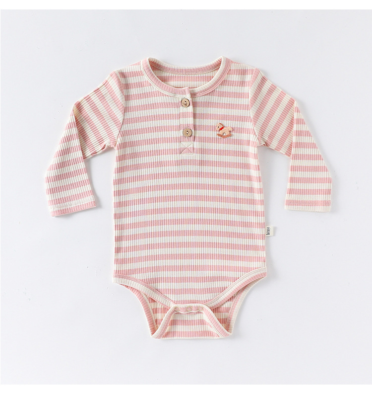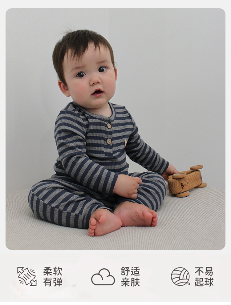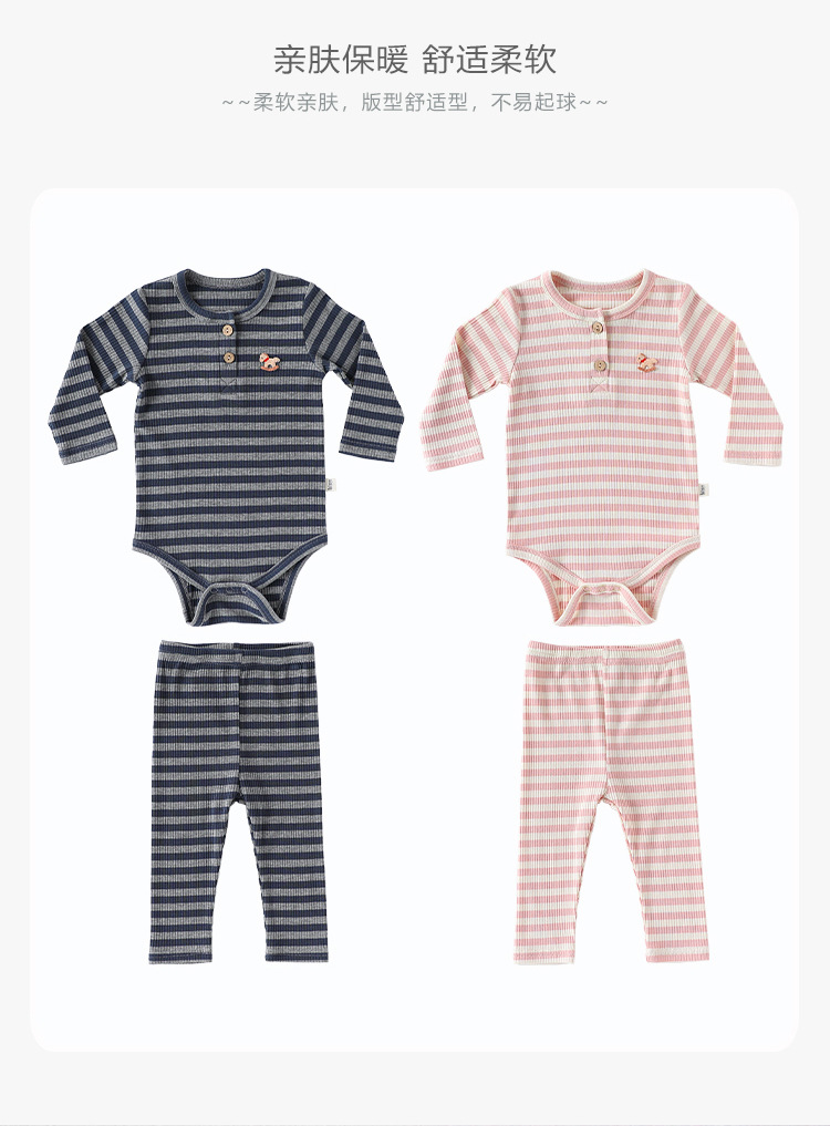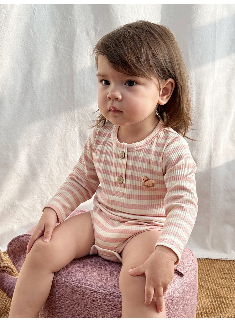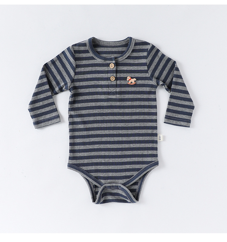 D25149LS-春秋男女寶寶條紋長袖莫代爾包屁衣&長褲