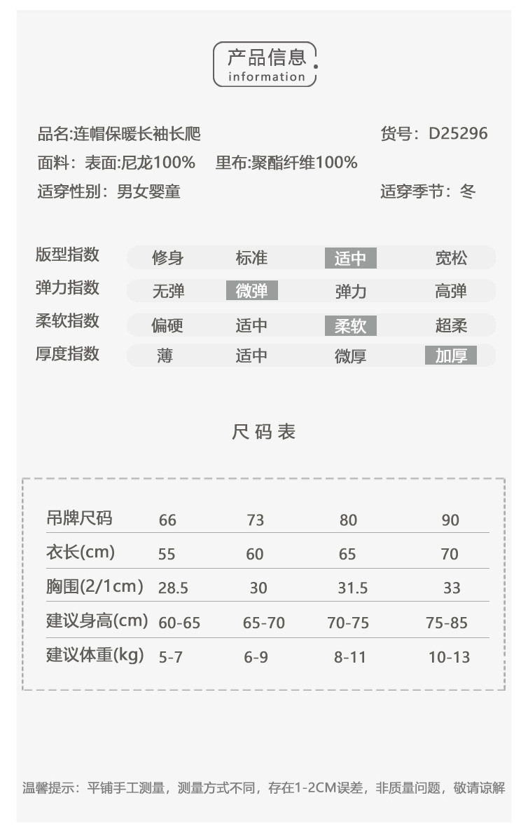 D25296LS-冬季雙拉鍊加厚夾棉連帽爬服