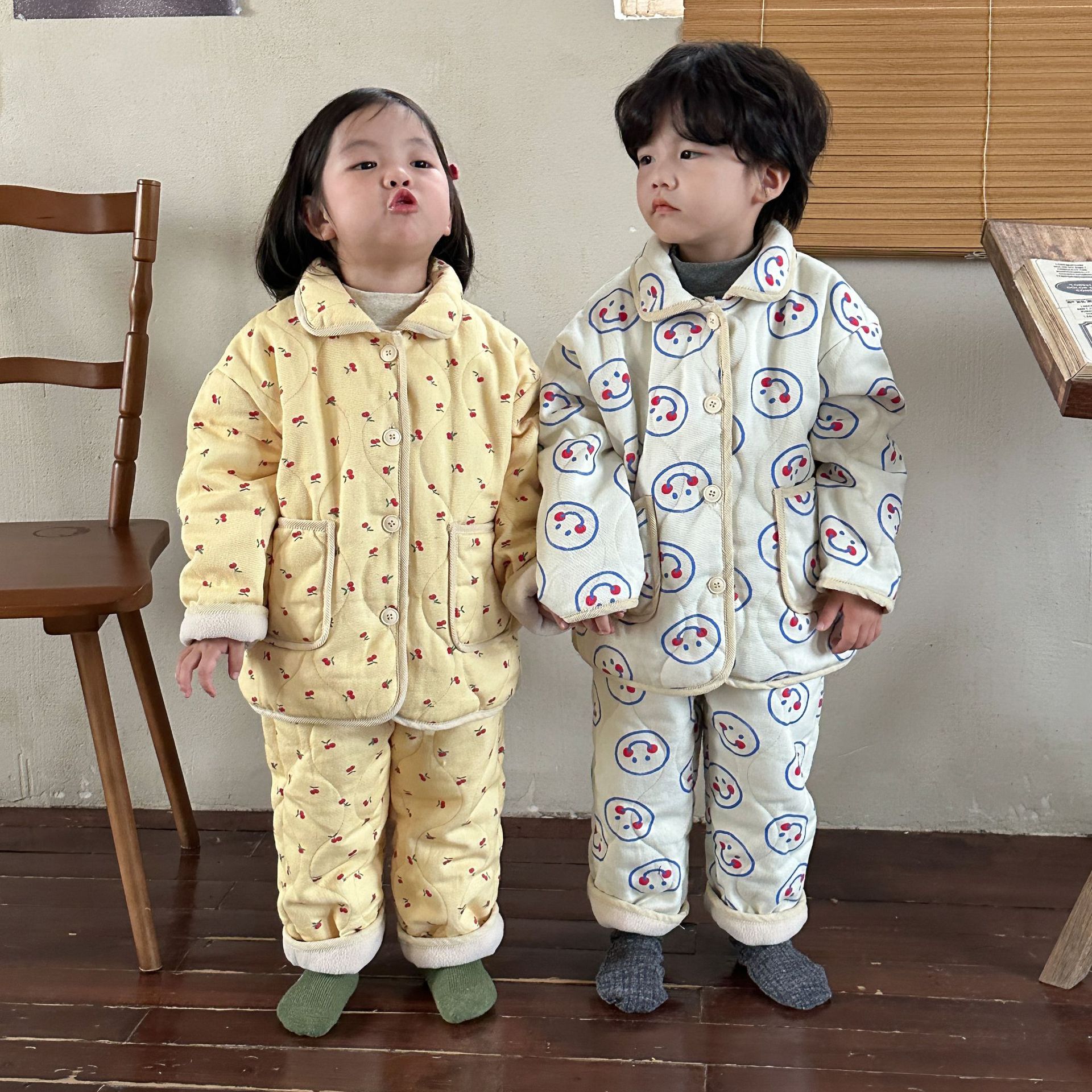 柔軟保暖的夾棉加厚家居服套裝,