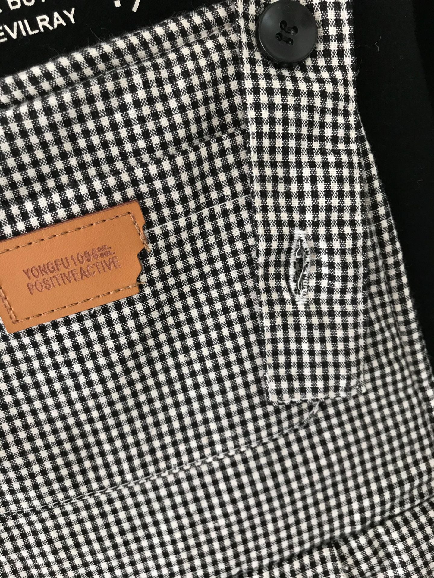 DL250666LS-冬季格紋夾棉吊帶長褲