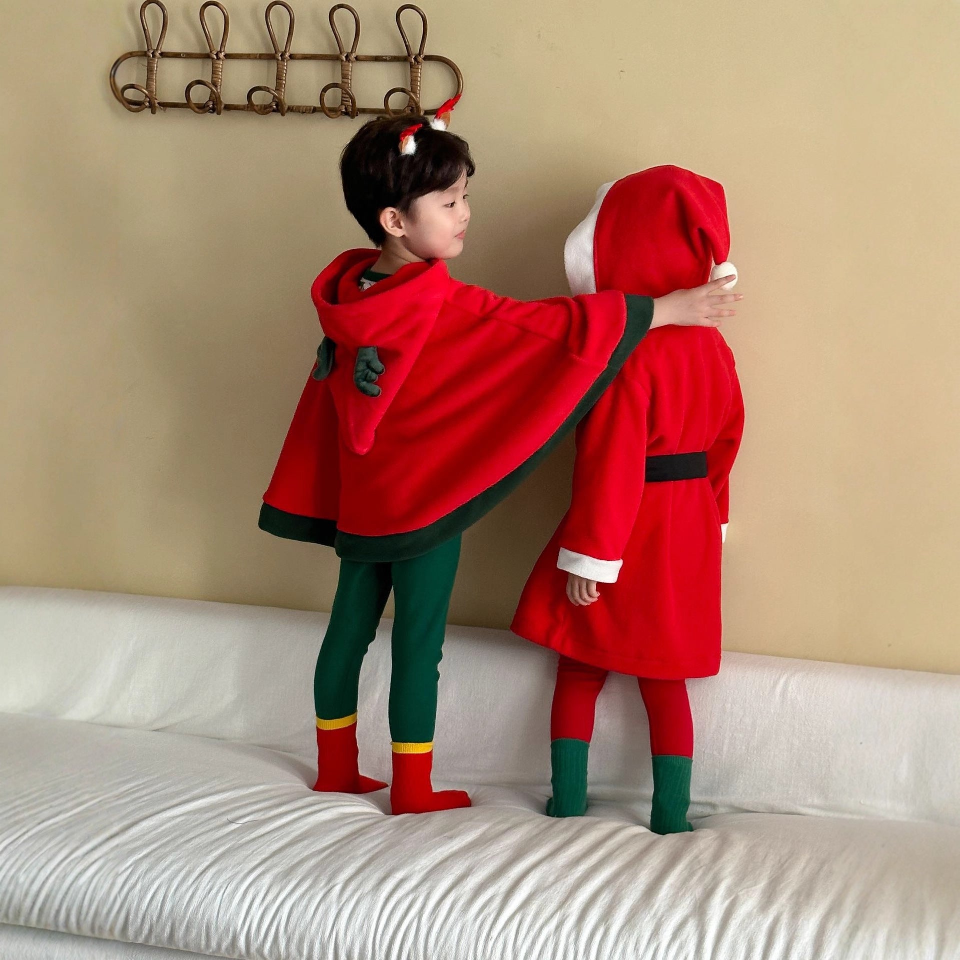 DQ250657SE-秋冬季聖誕麋鹿披風連帽斗篷外套
