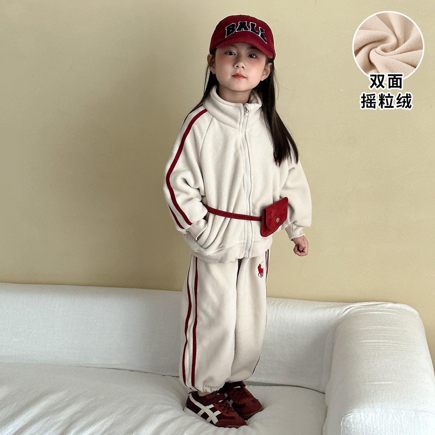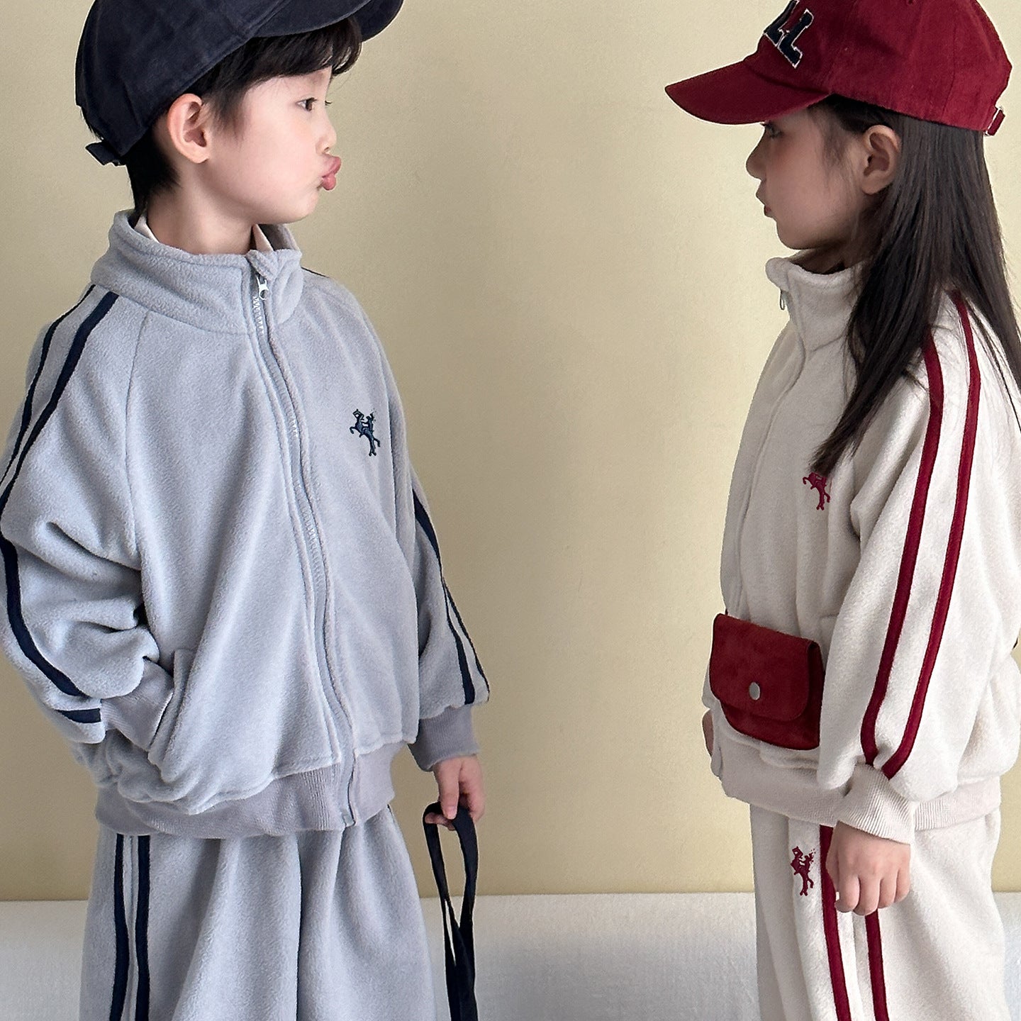 DZ250609TG-冬季絨毛立領拉鍊休閒兩件套