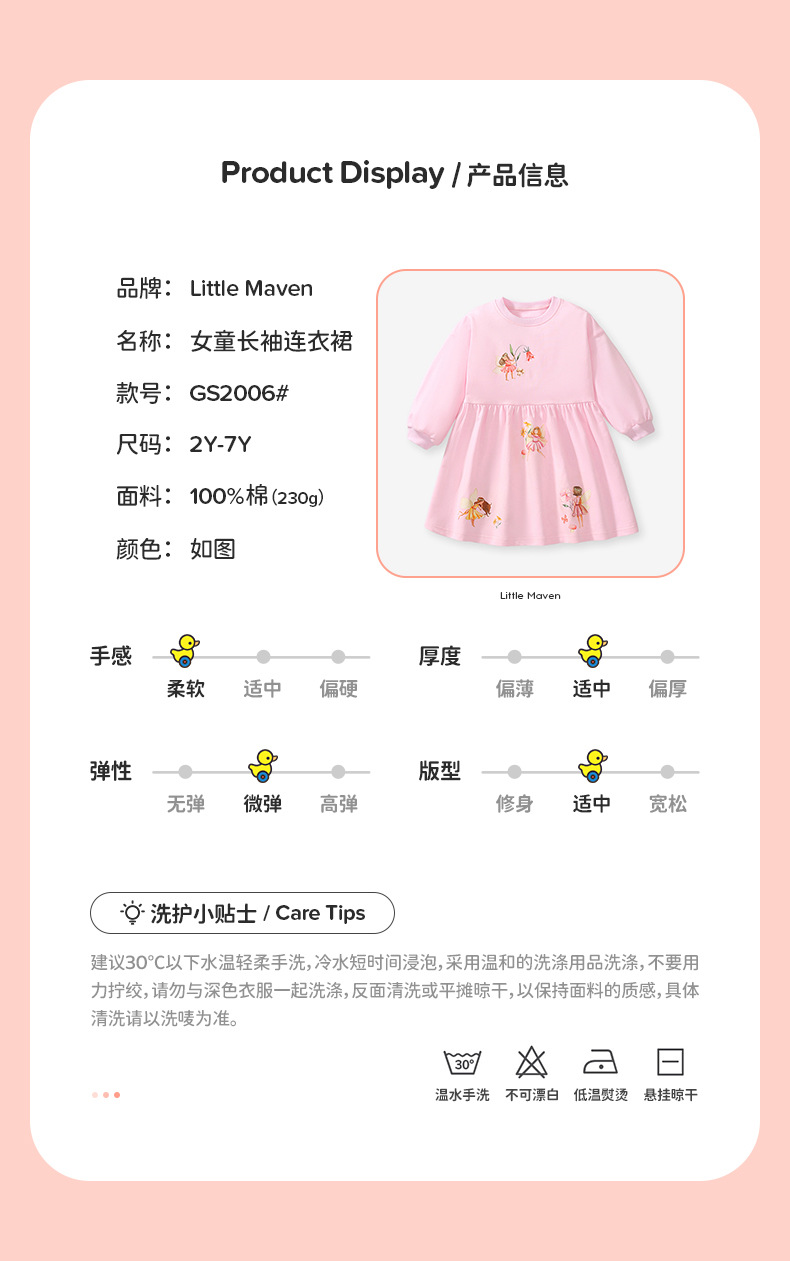 GS2006DS-Little maven秋季長袖純棉兒童公主裙