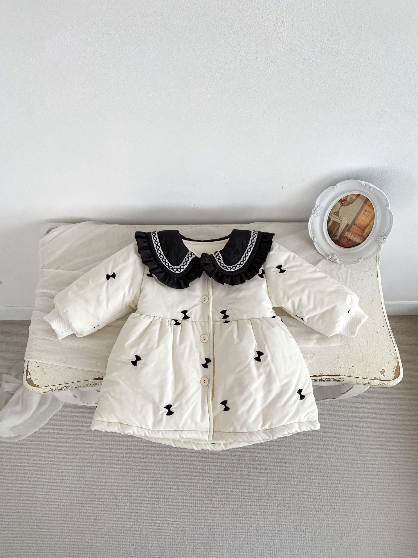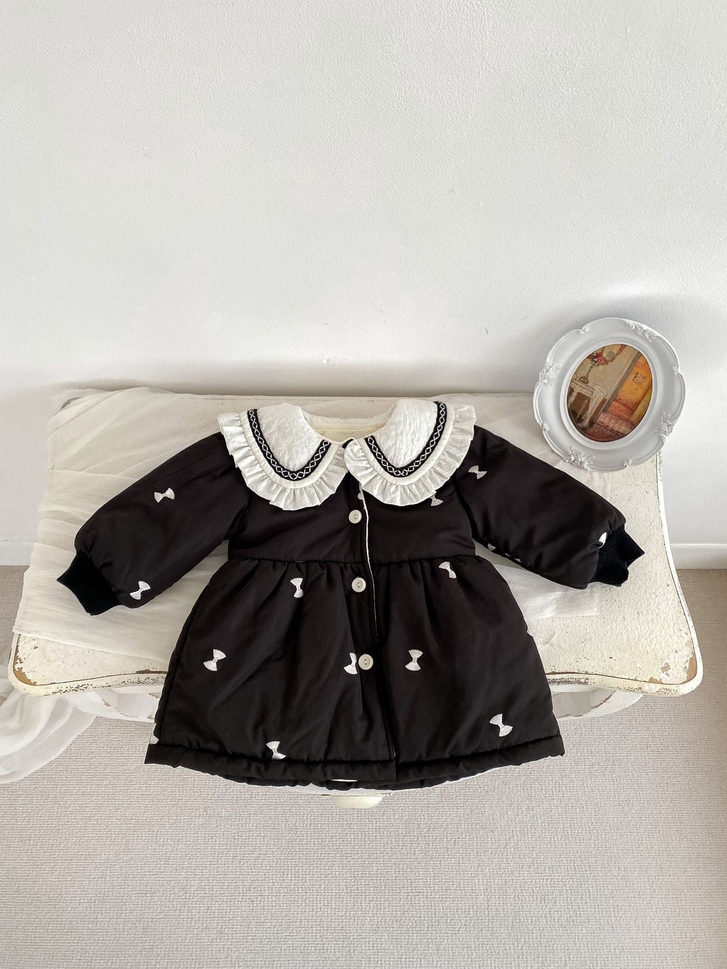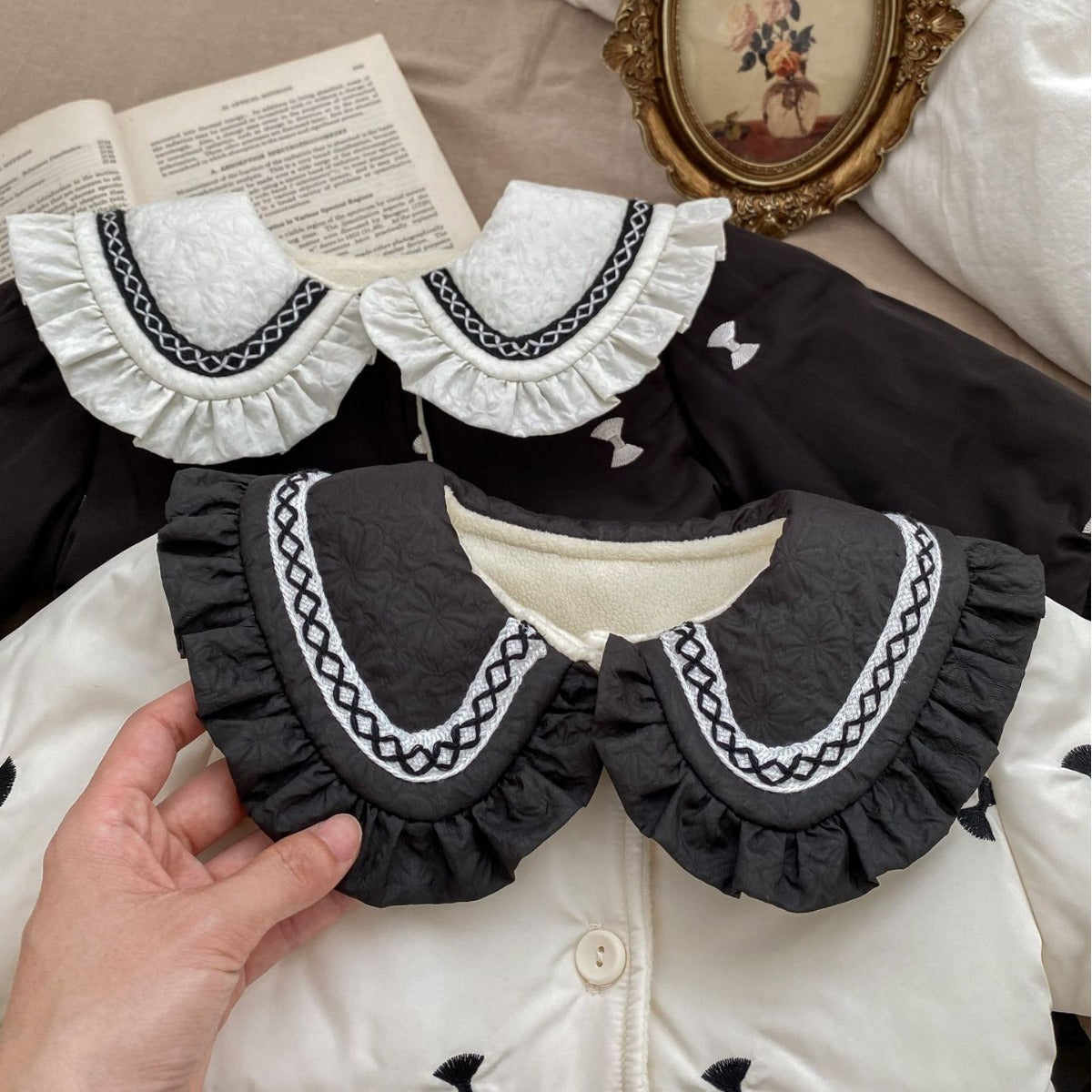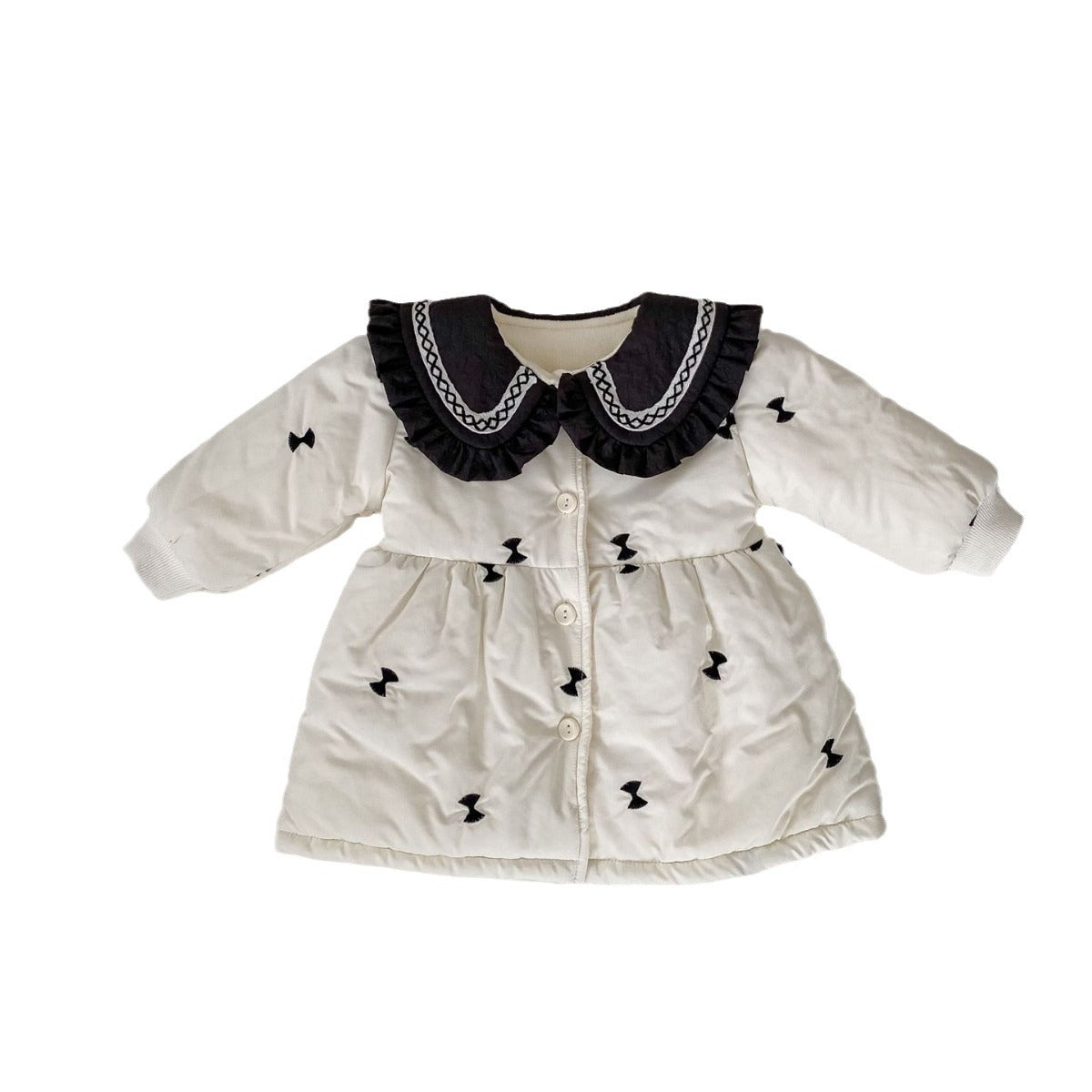 H10018SE-冬季夾棉花邊翻領外套(長款加厚)