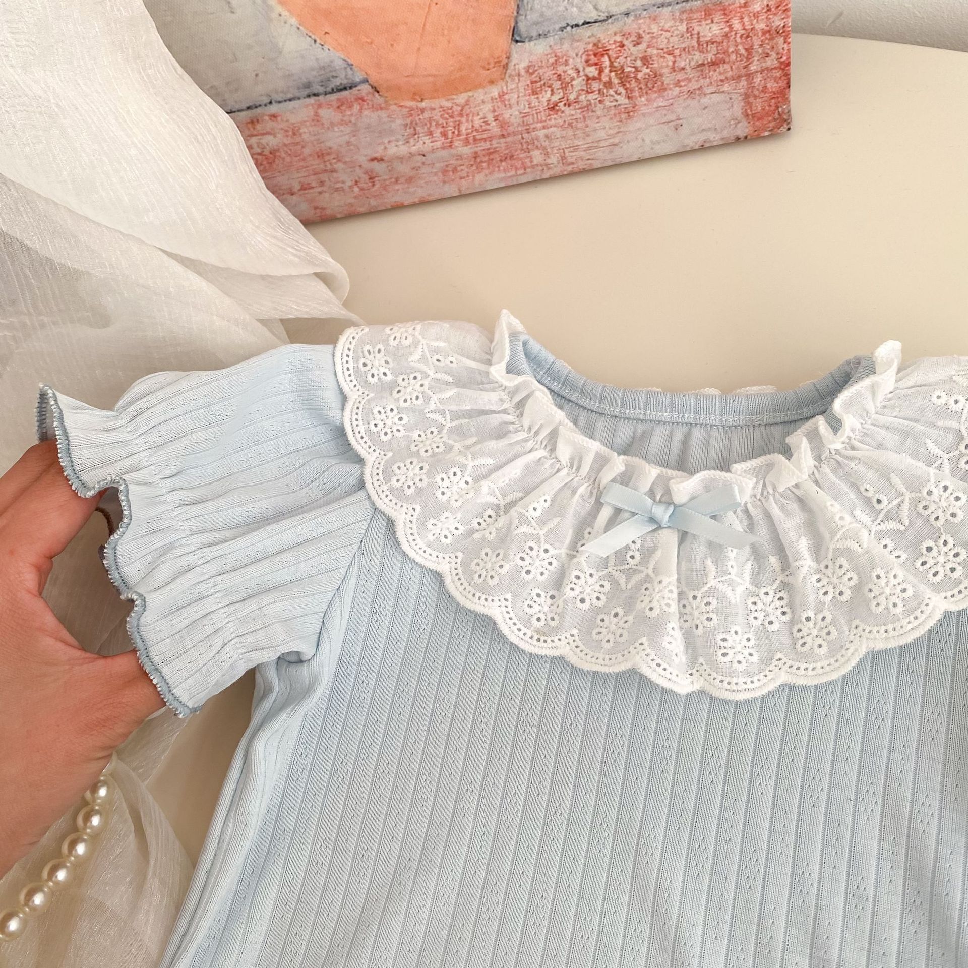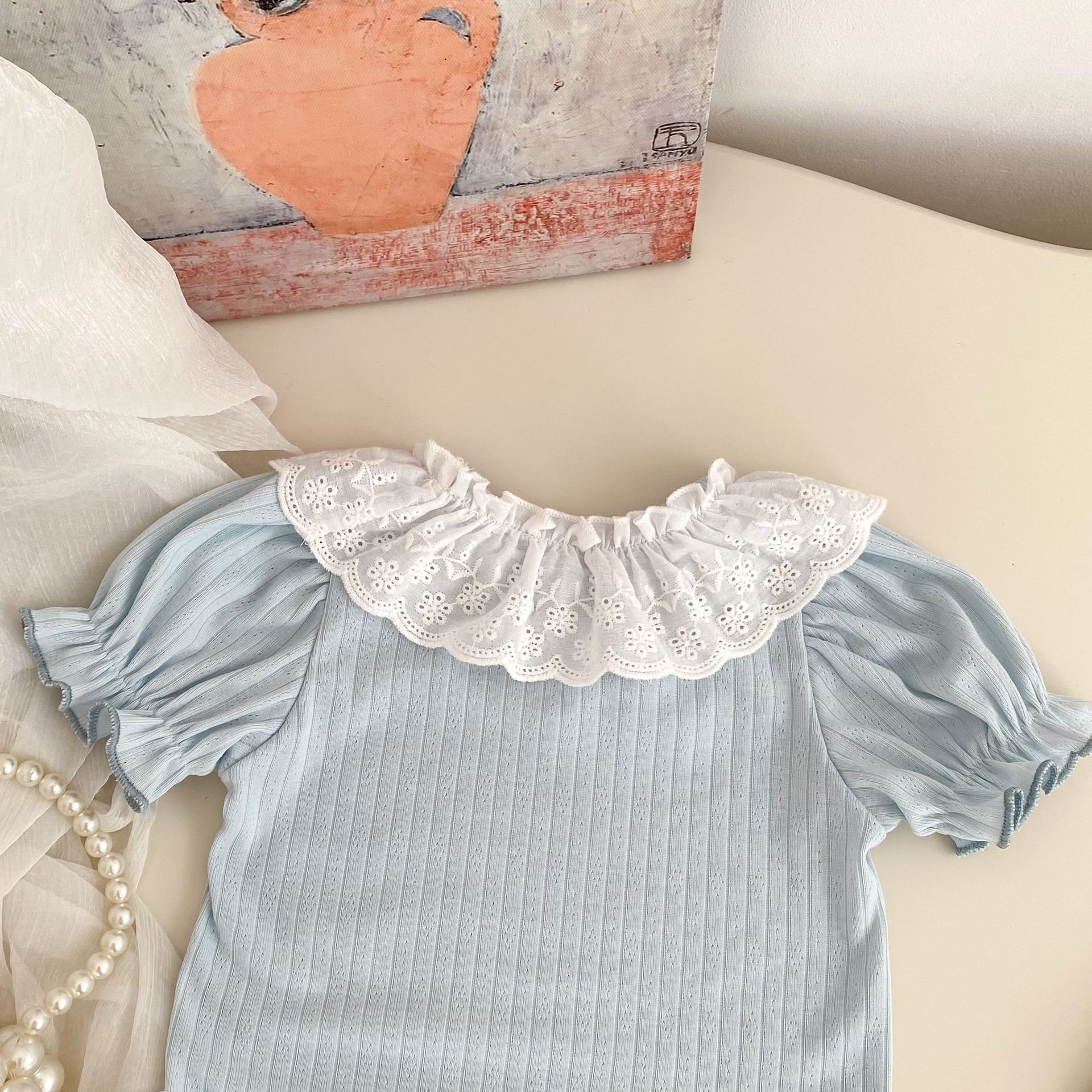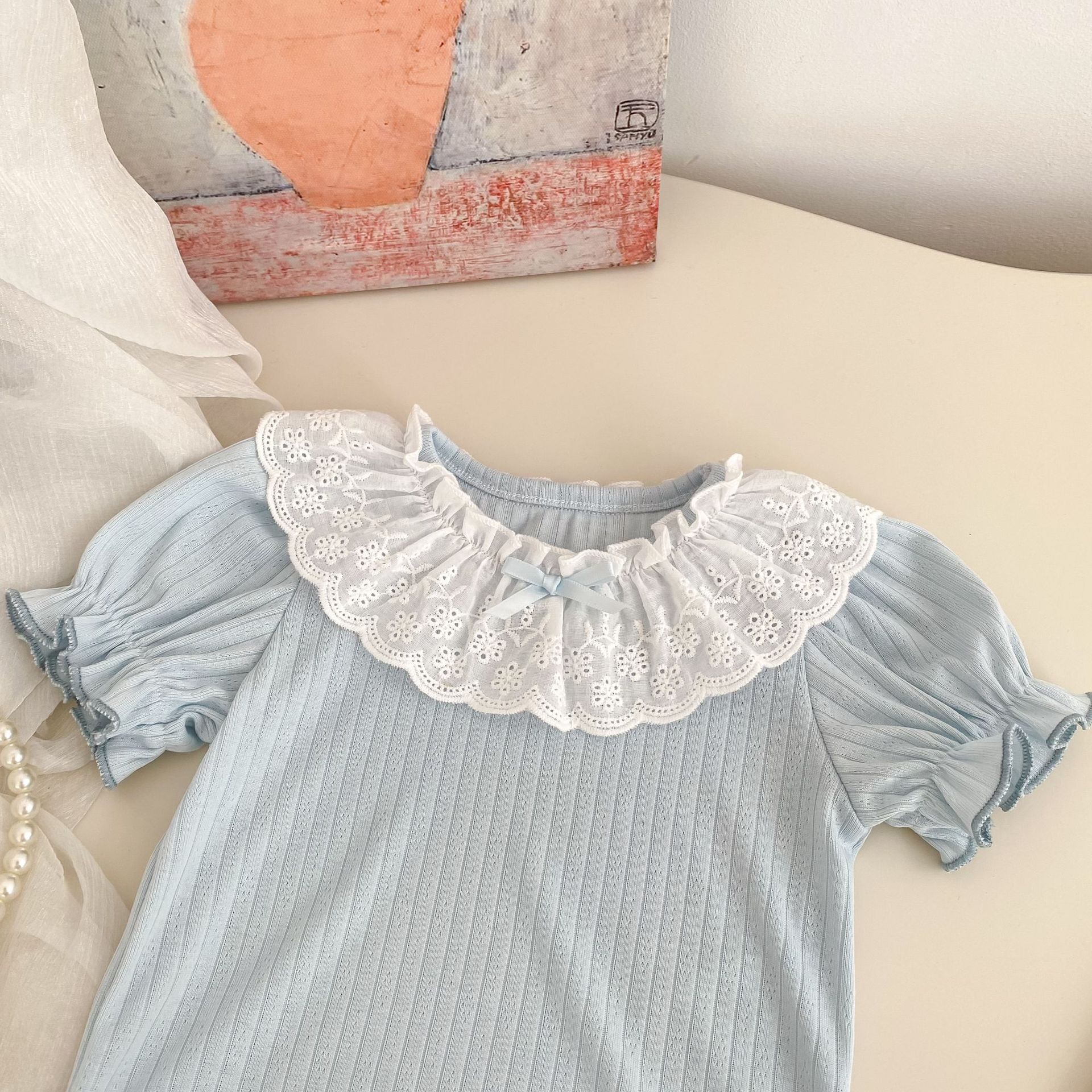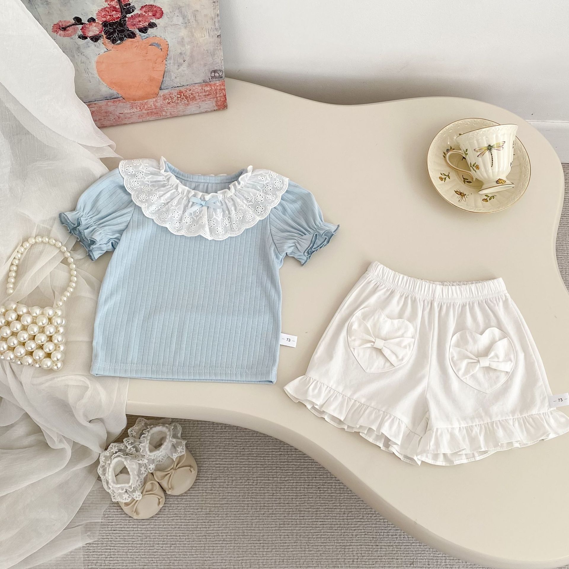 H10536TG-夏款蕾絲領短袖上衣&愛心口袋短褲