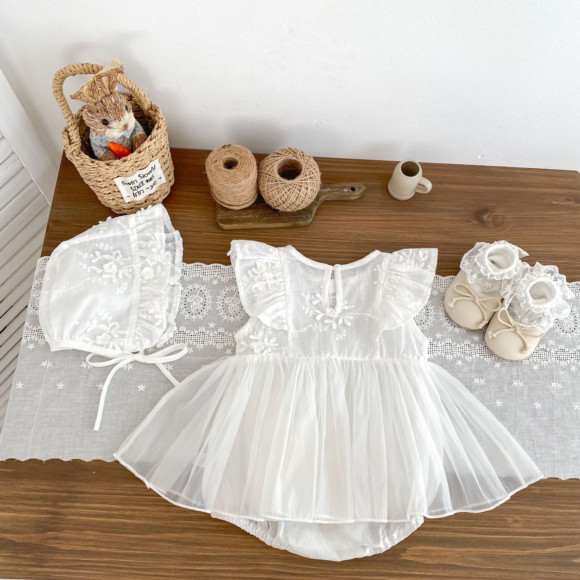 H10551LS-夏款嬰兒網紗包屁衣+帽