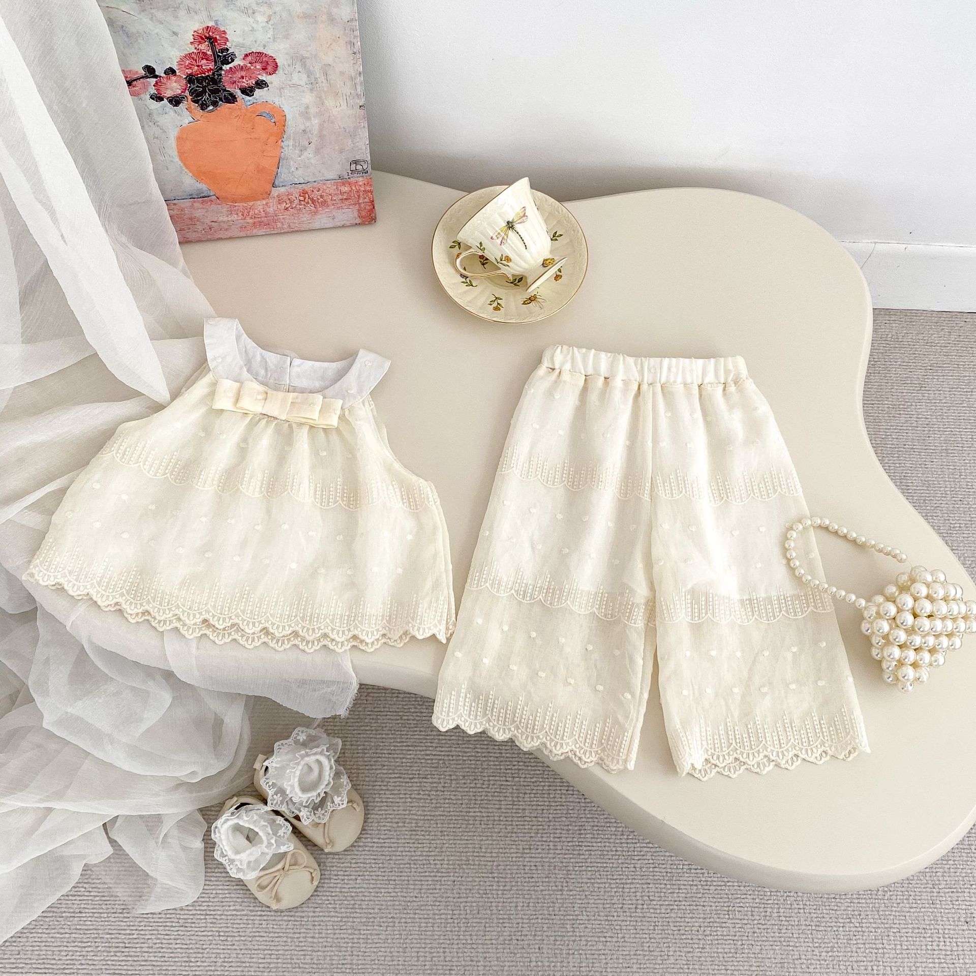 H10557TG-夏季女童薄款時尚背心上衣+闊腳長褲兩件套