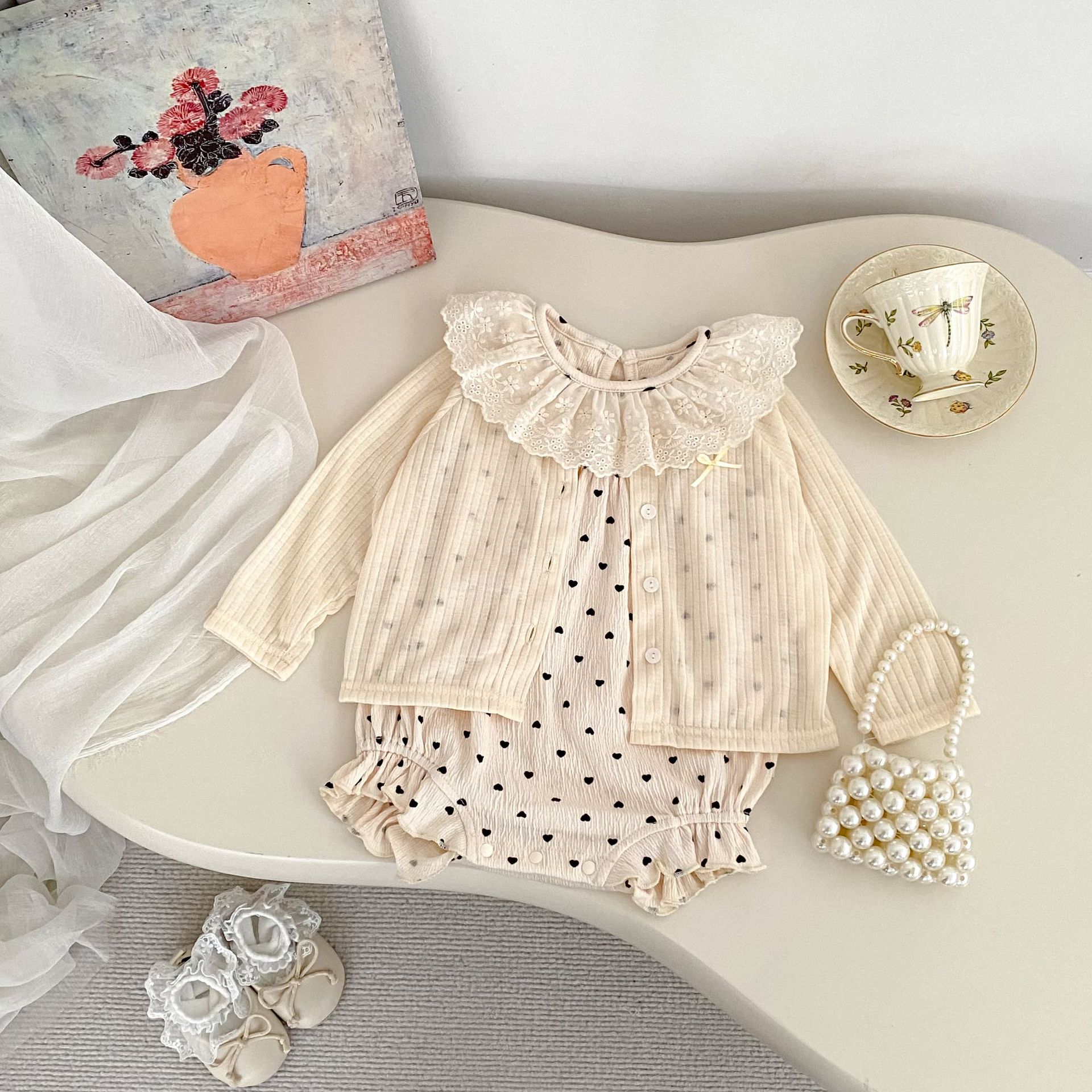 H10562LS-夏款薄版蕾絲領無袖波點小月齡短爬服