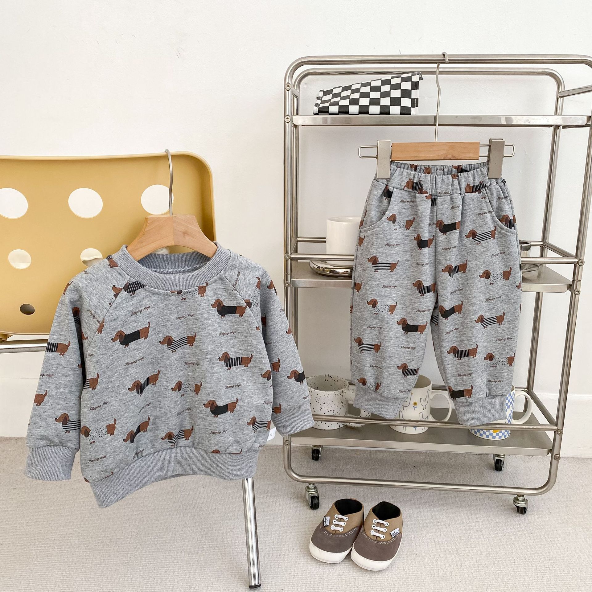 H10588TG-秋季兒童可愛臘腸狗印花長袖衛衣衛褲兩件套