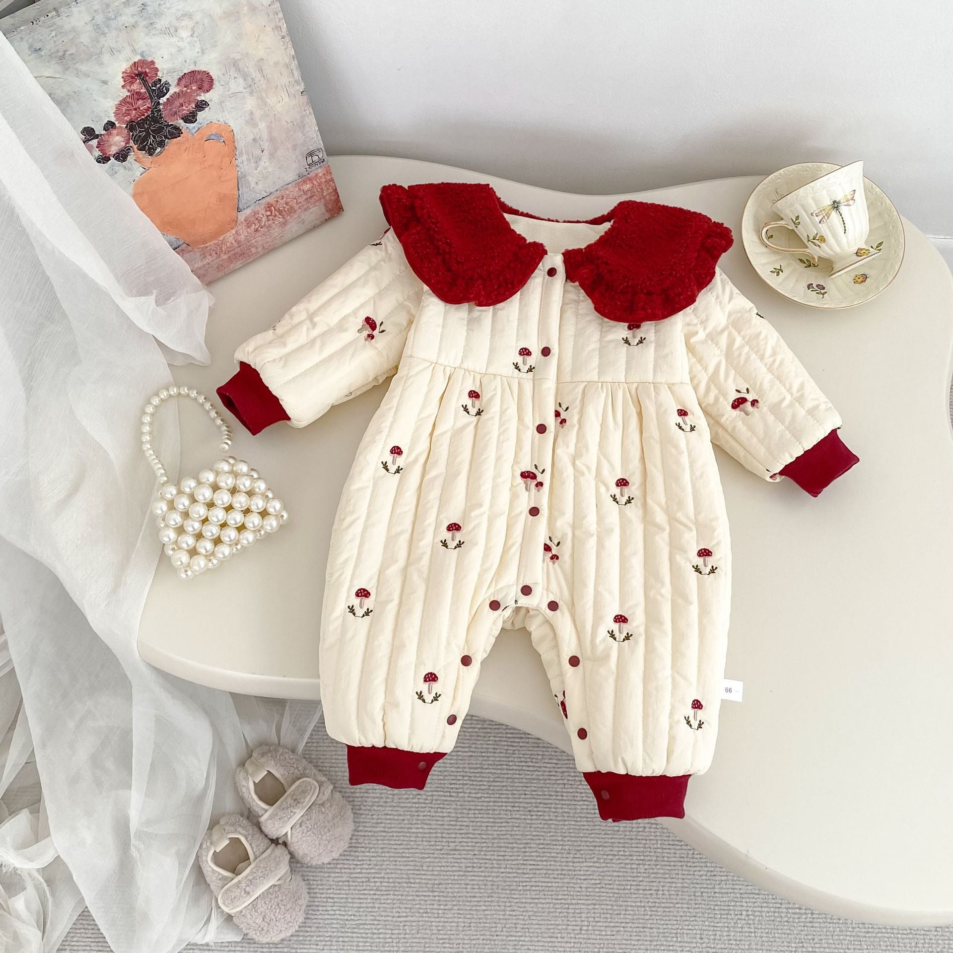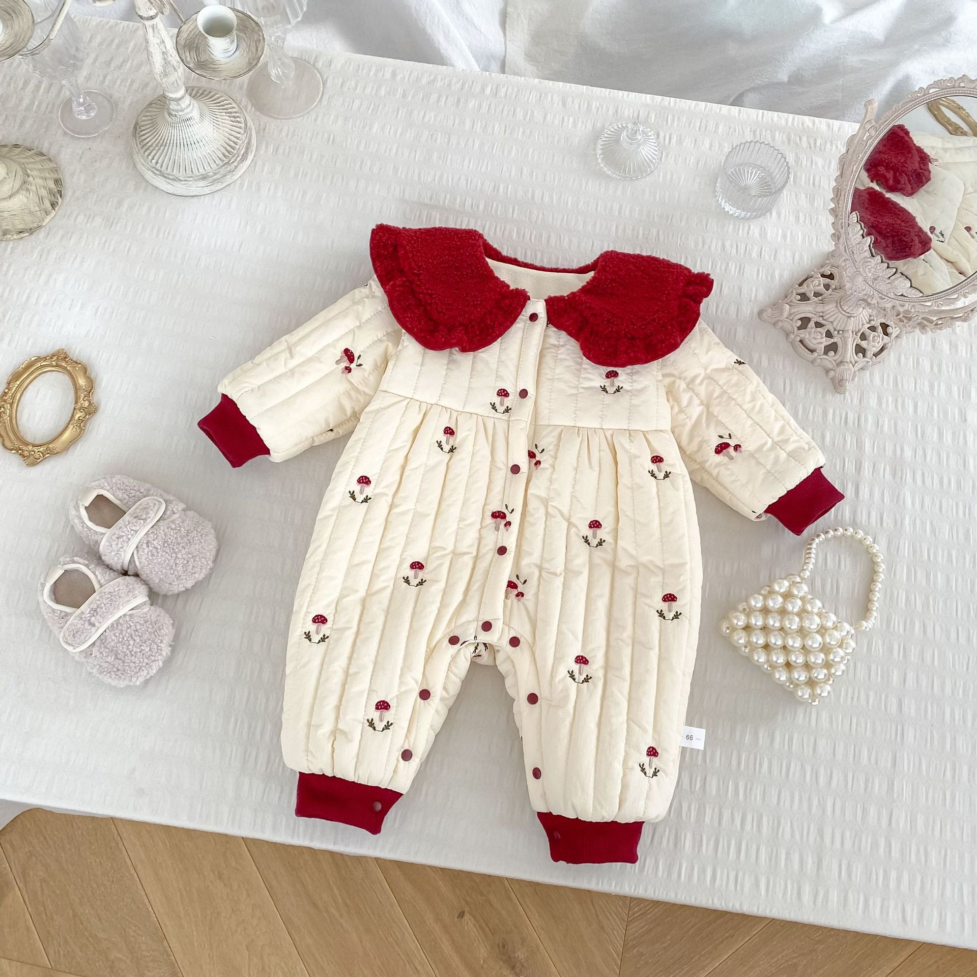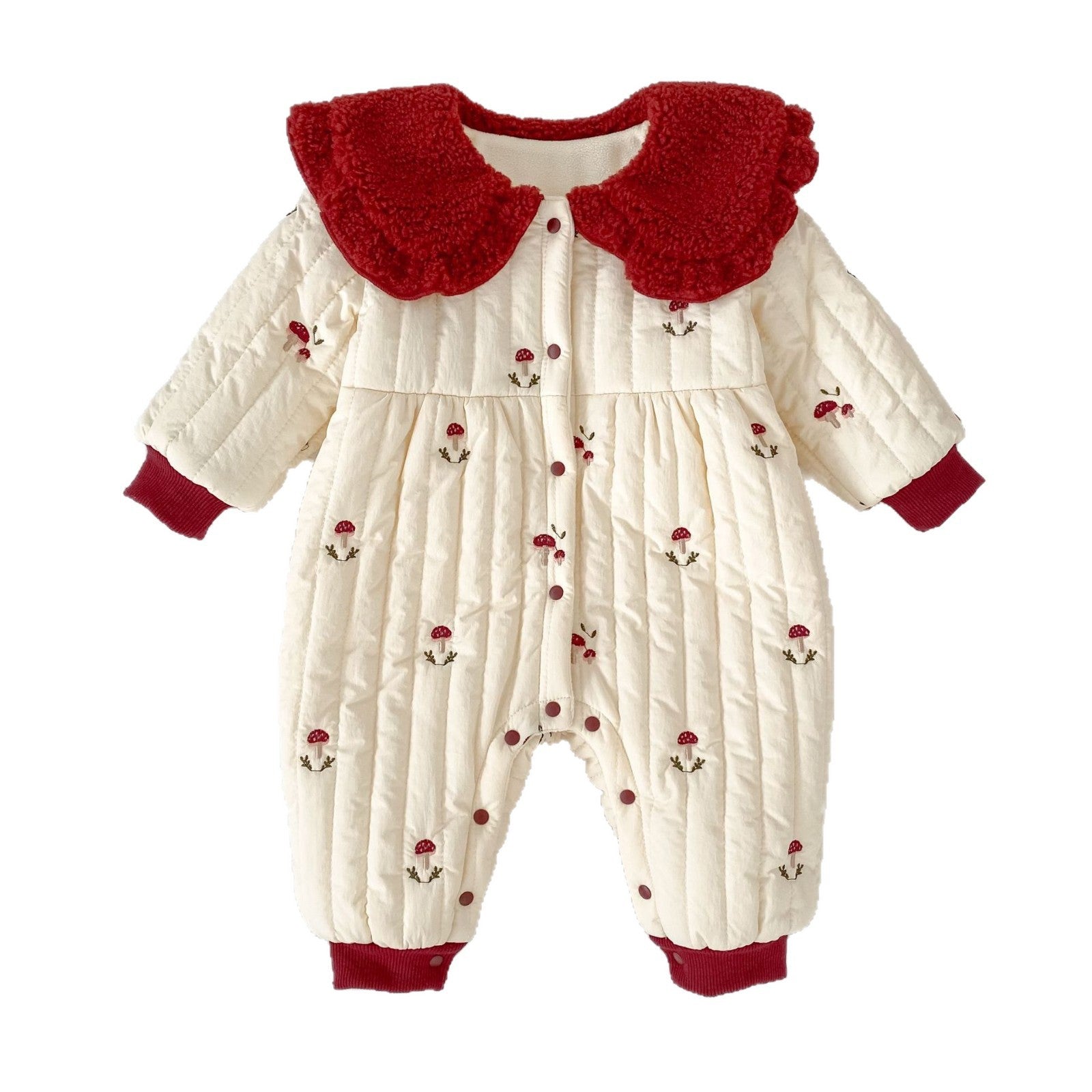 H10633LS-冬季聖誕蘑菇刺繡加絨哈衣(加厚)