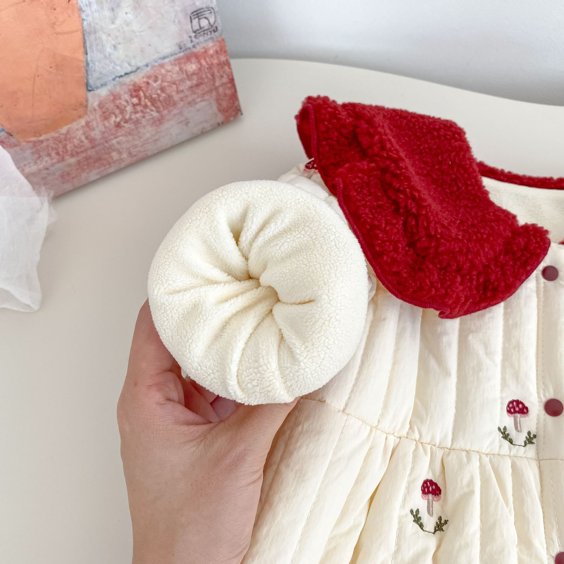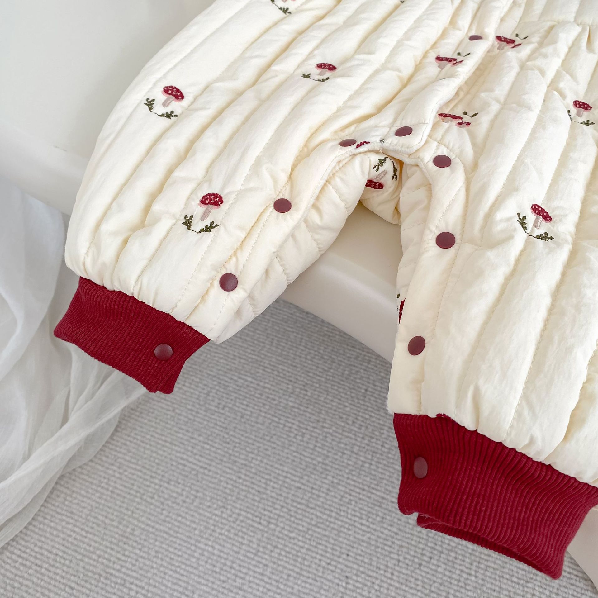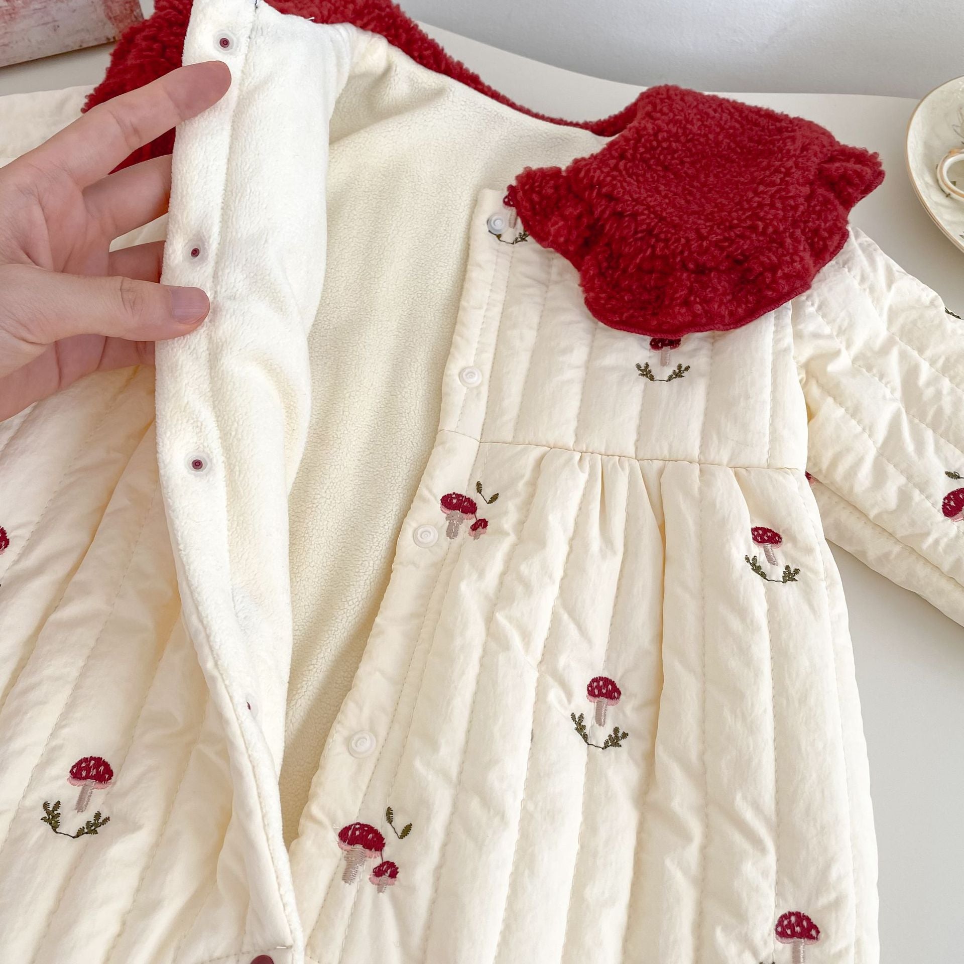 H10633LS-冬季聖誕蘑菇刺繡加絨哈衣(加厚)