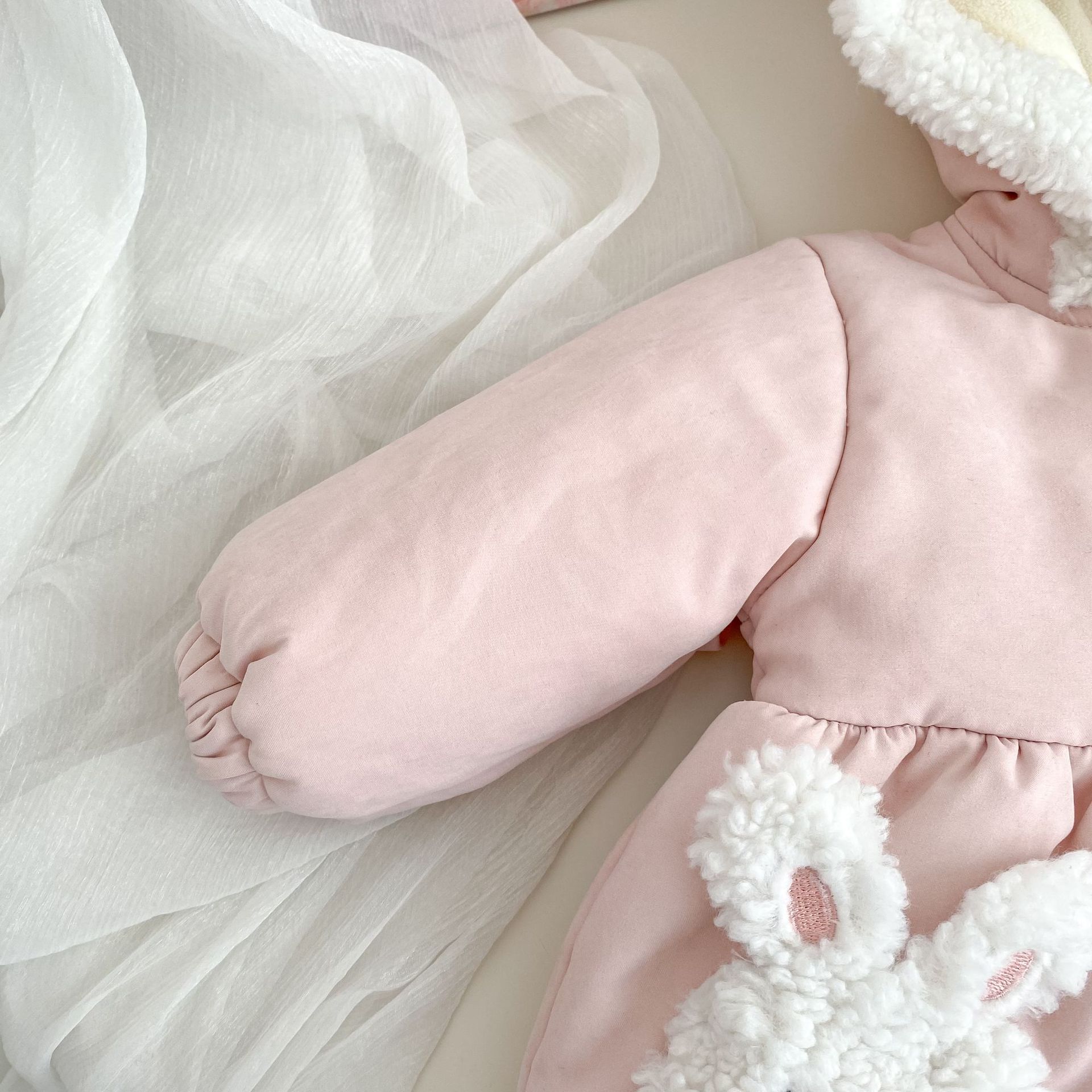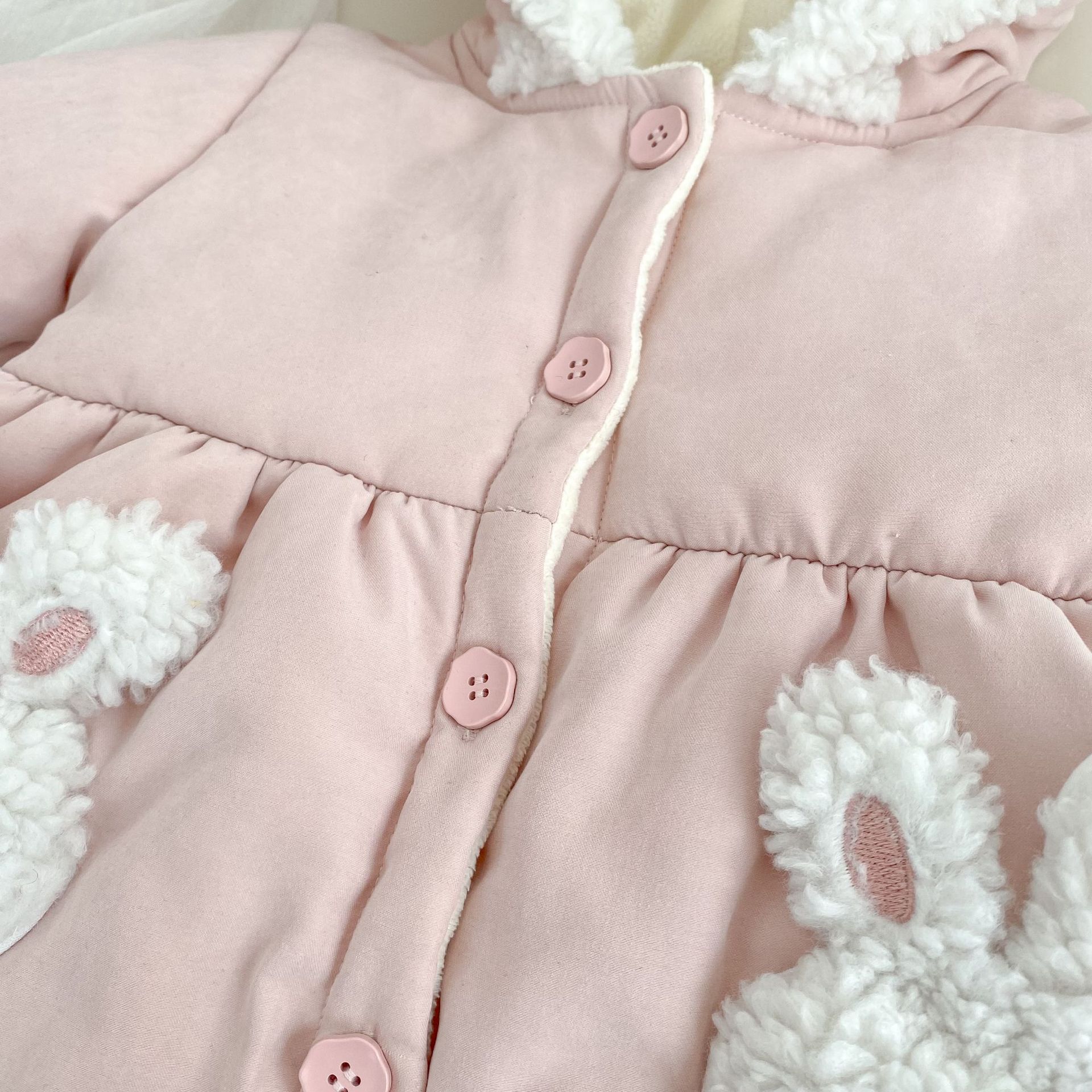 H10672SE-冬季兔子連帽中長款外套