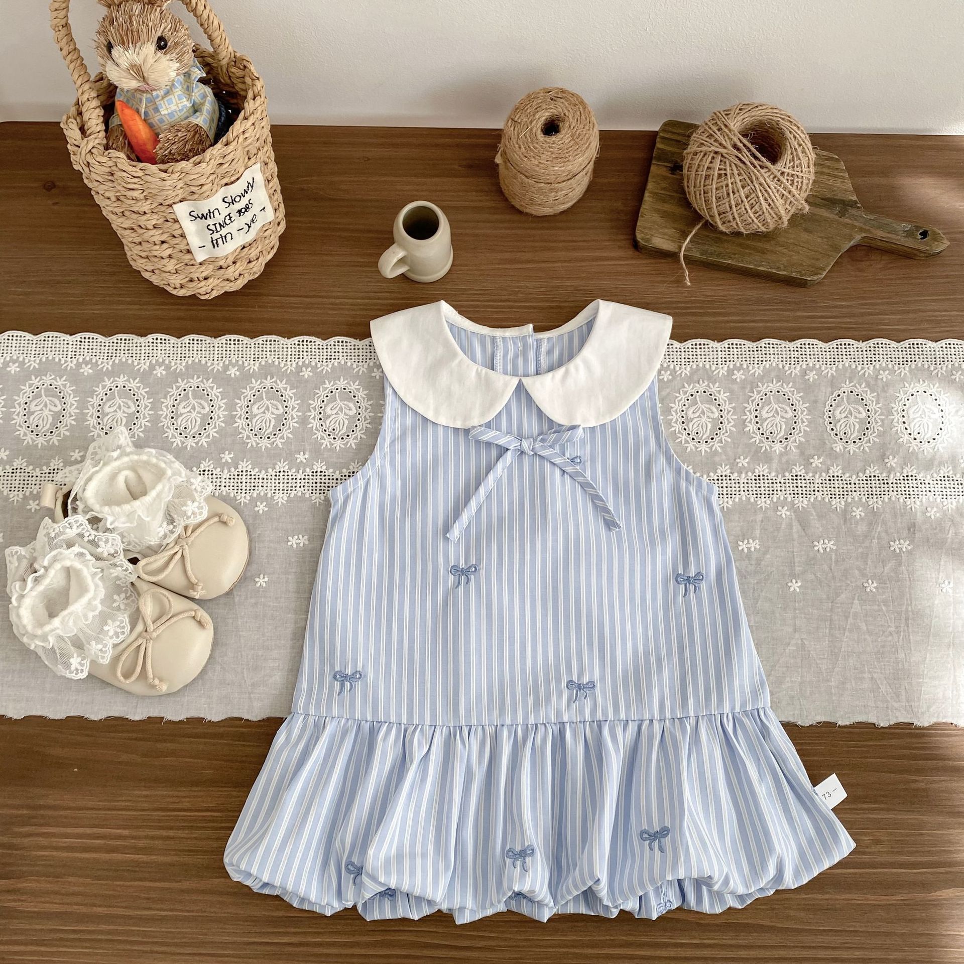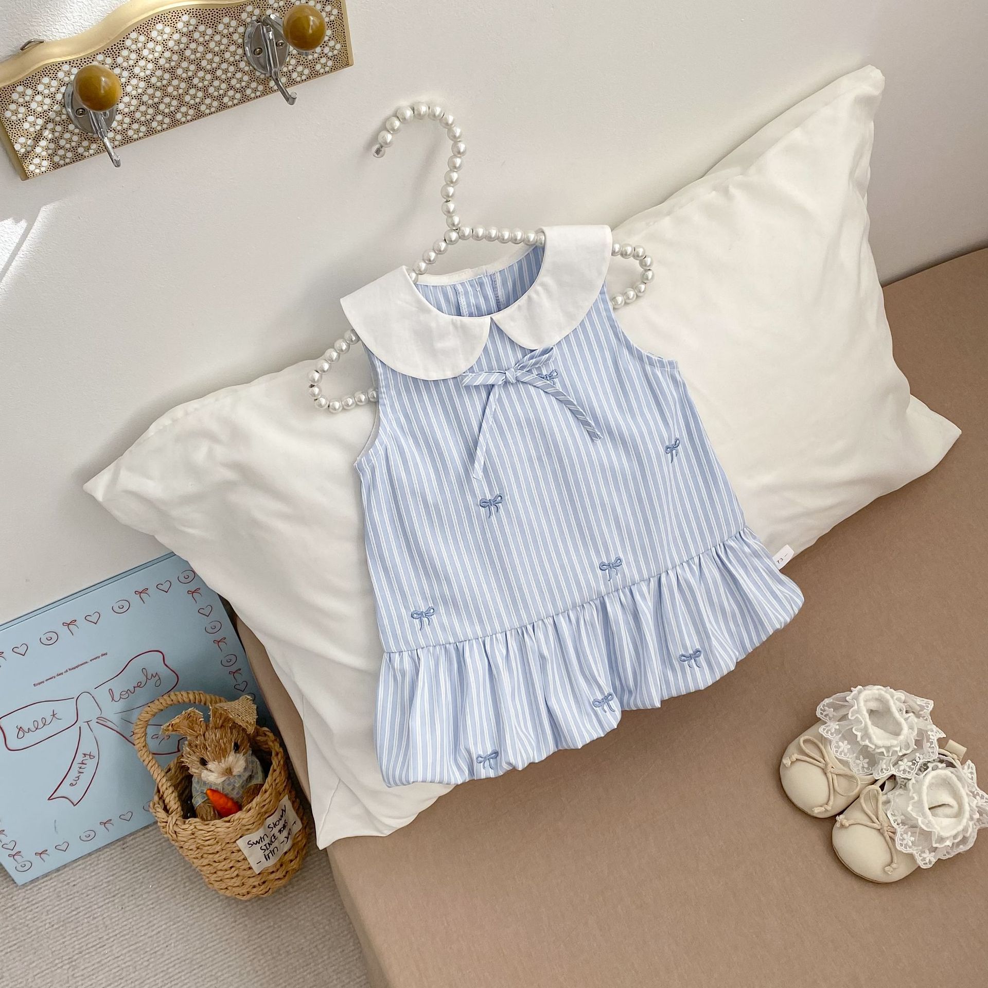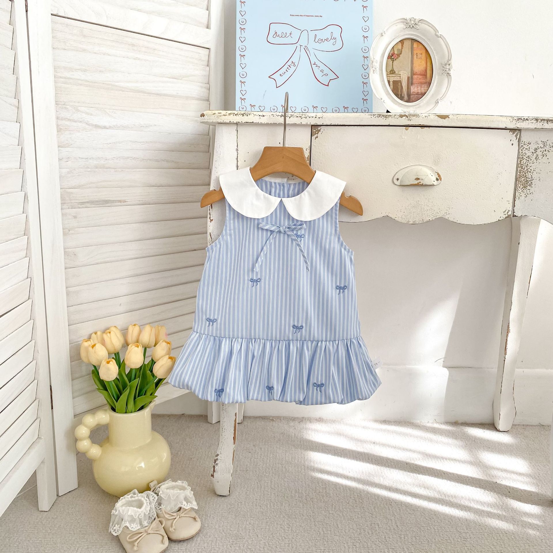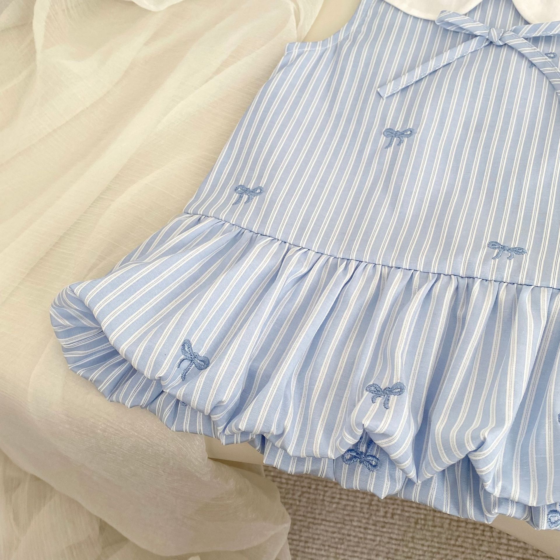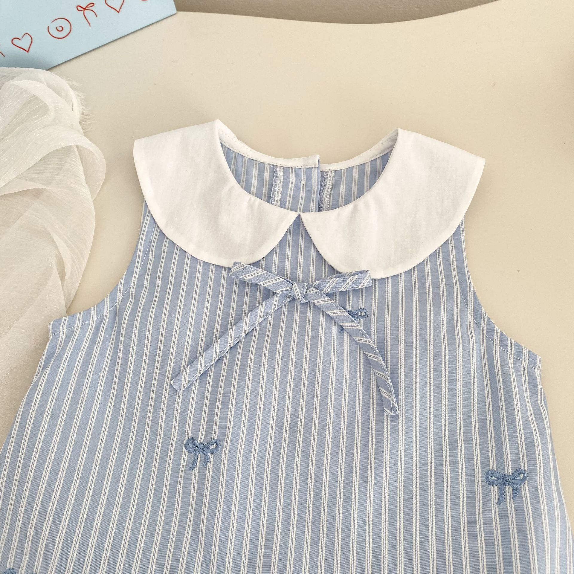 H10721DS-夏季|條紋刺繡|背心裙