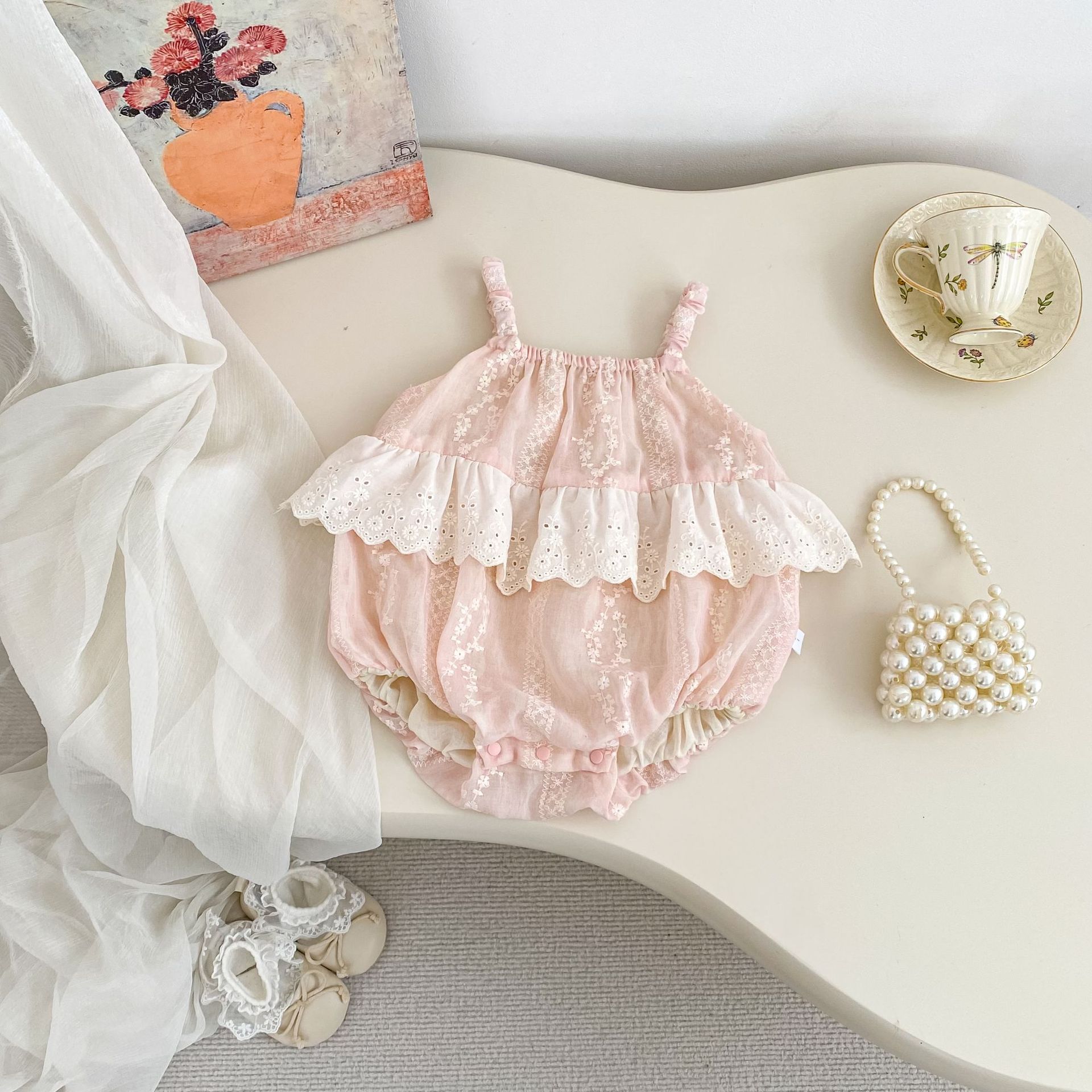H10793LS-夏季|蕾絲花邊|吊帶連體衣