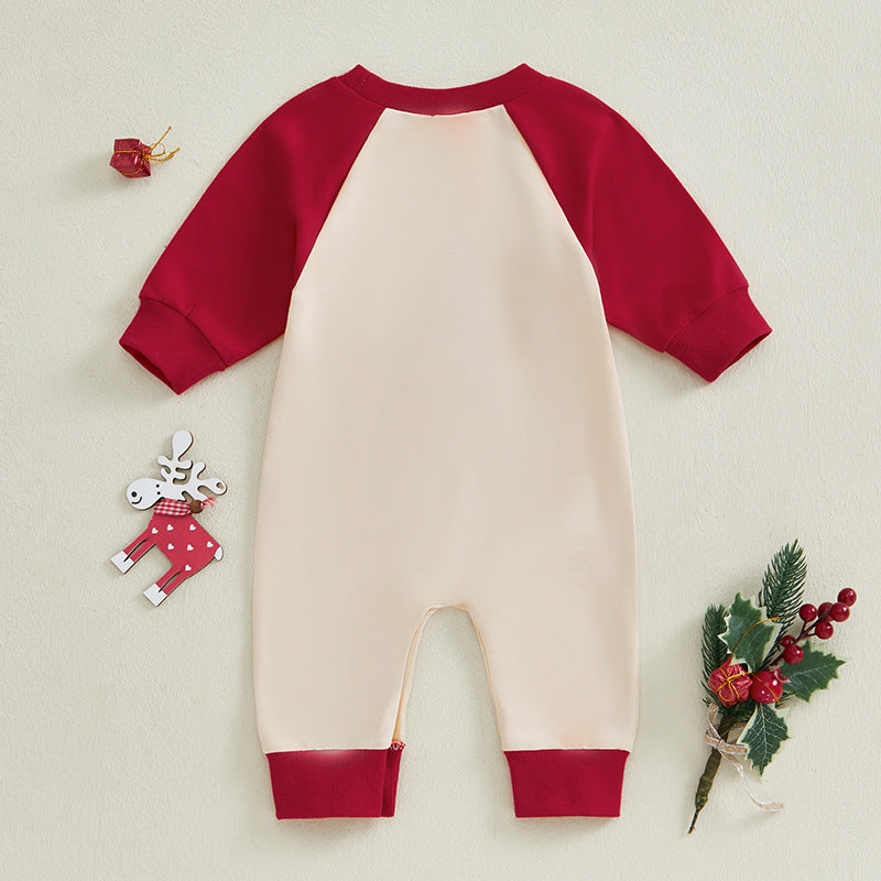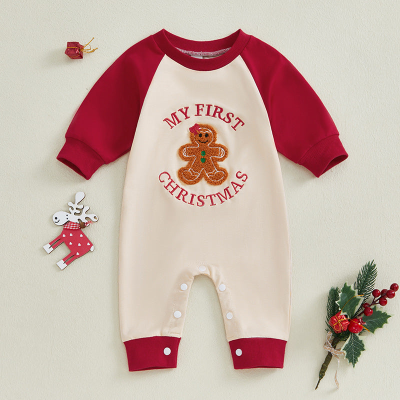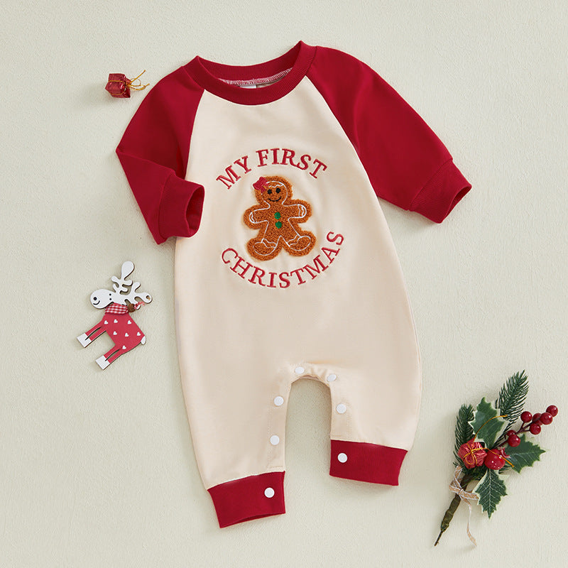JQ-1957LS-秋冬歐美嬰幼兒毛巾繡花拼袖連體長袖爬服