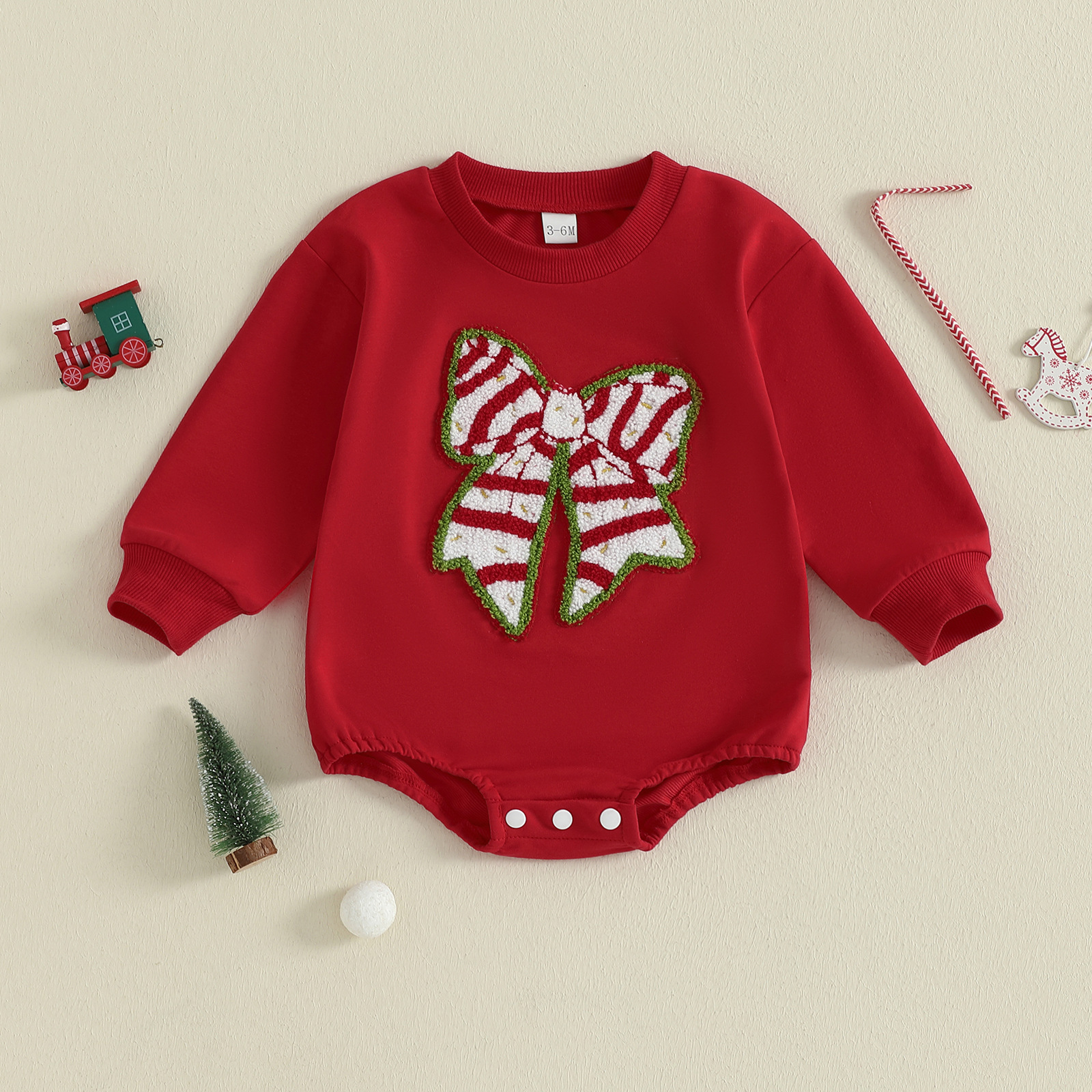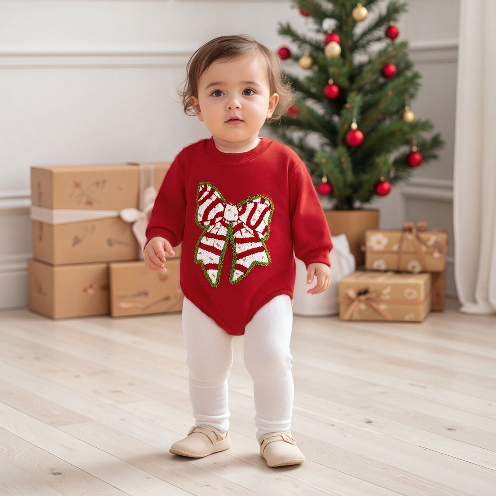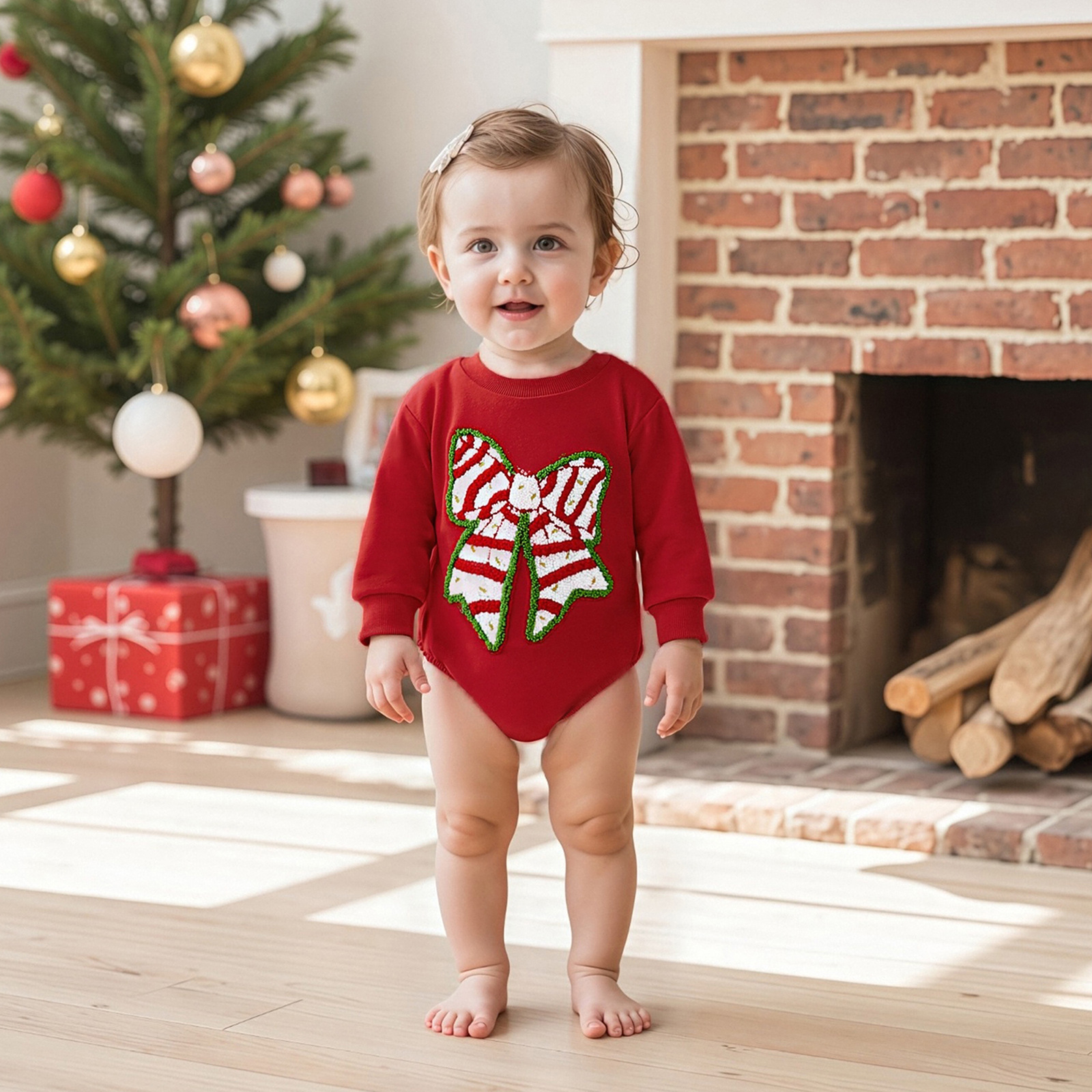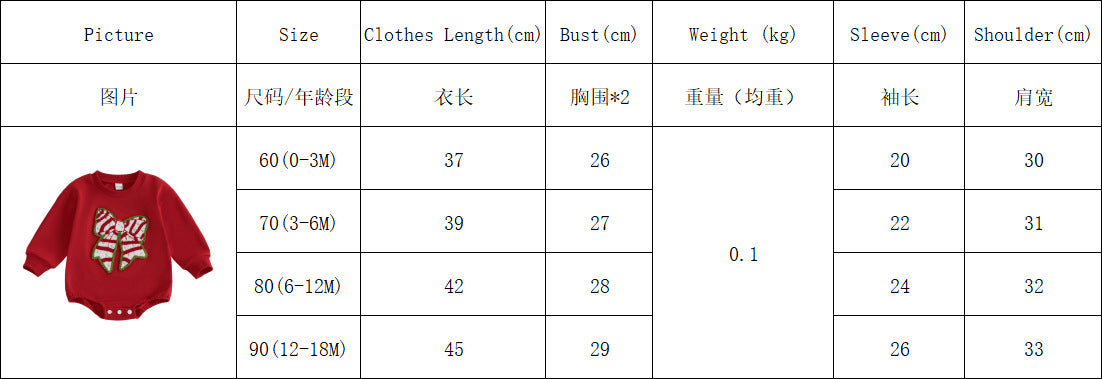 JQ-2464SLS-秋冬歐美聖誕嬰幼兒刺繡蝴蝶結長袖包屁衣