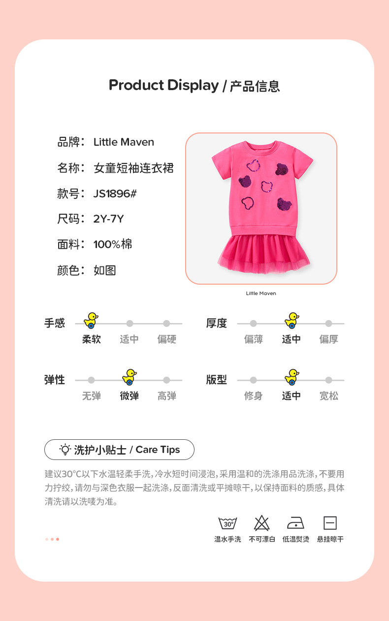 JS1896DS-夏季可愛女童短袖網紗洋裝