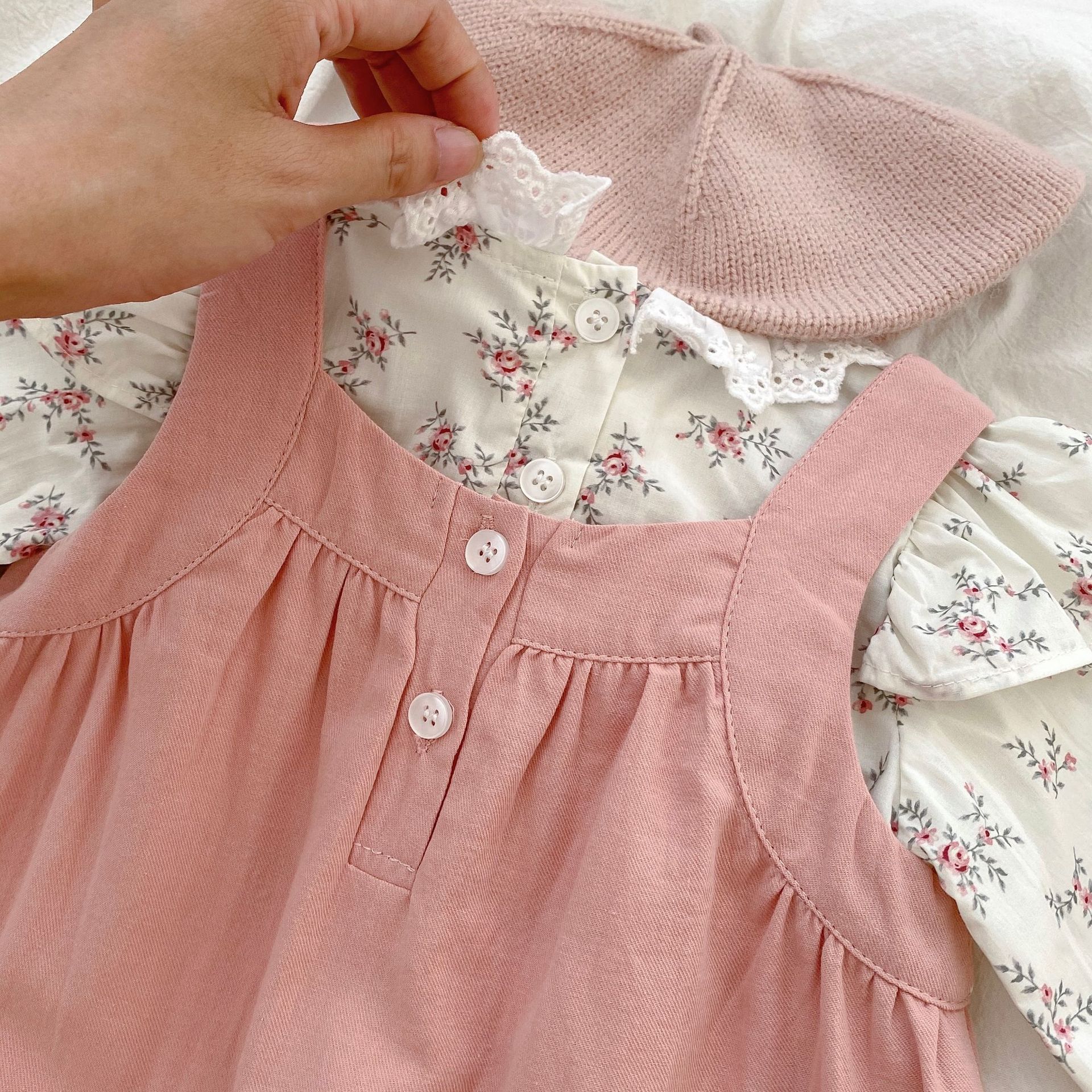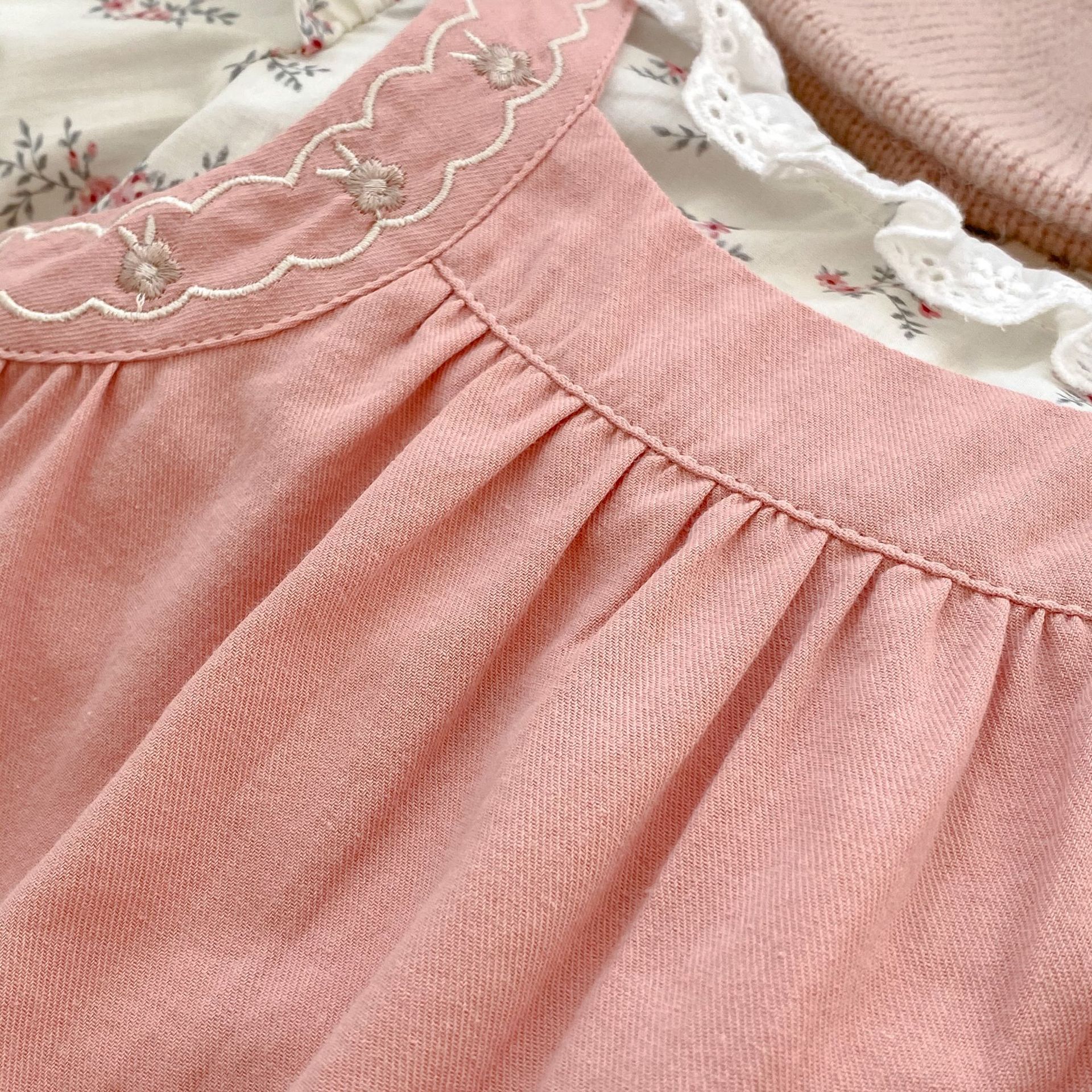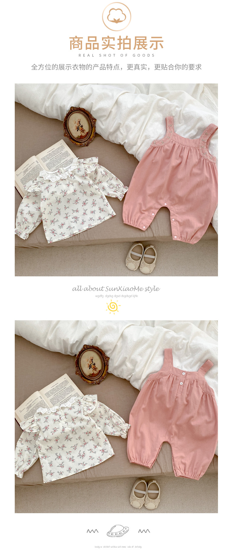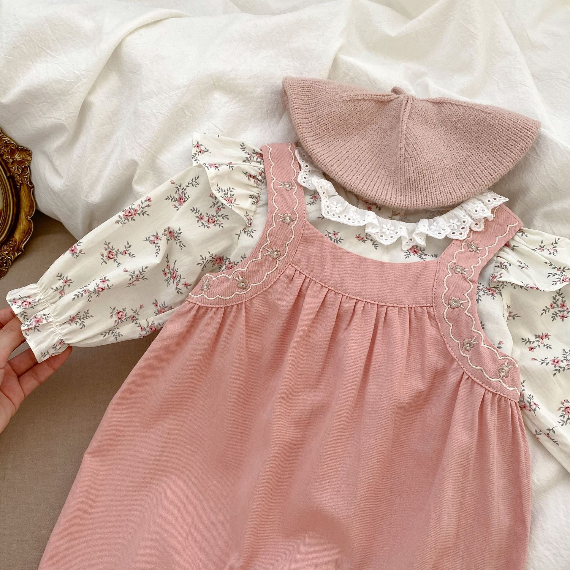 k2781LS-春秋繡花百搭長袖襯衫&背帶褲