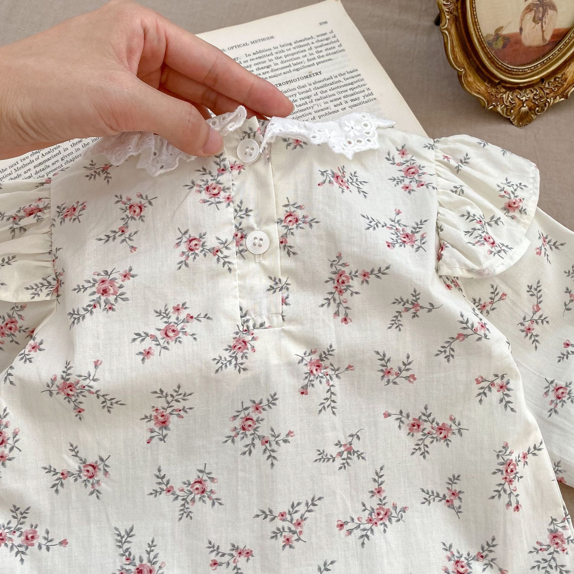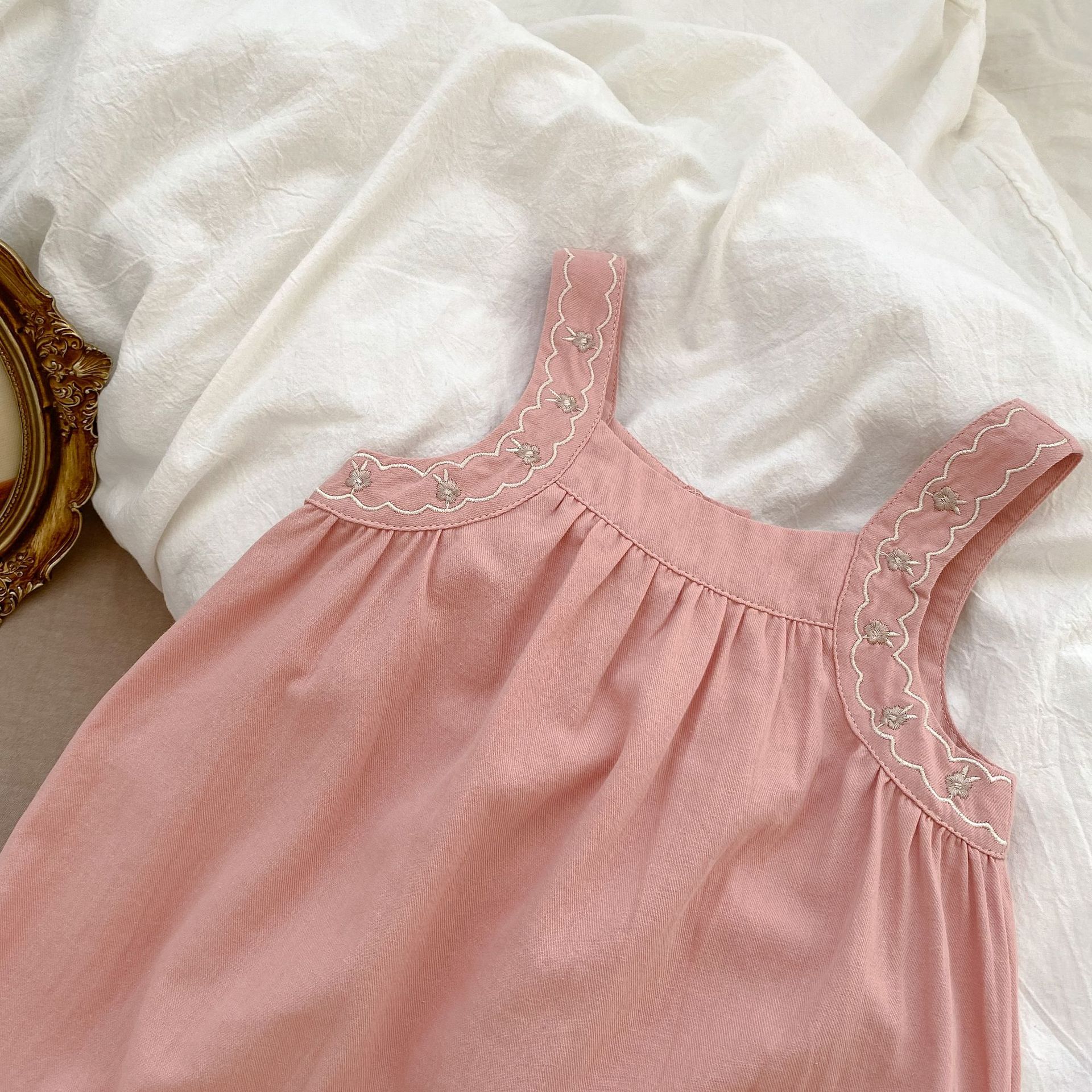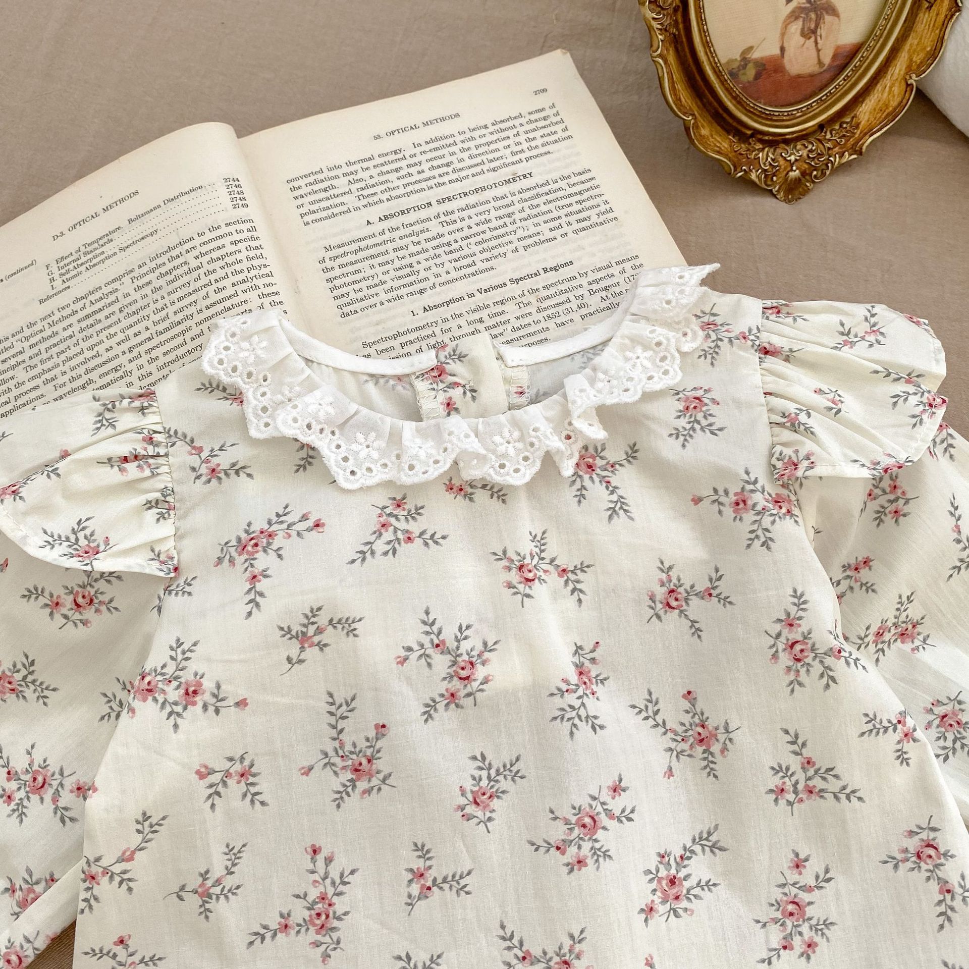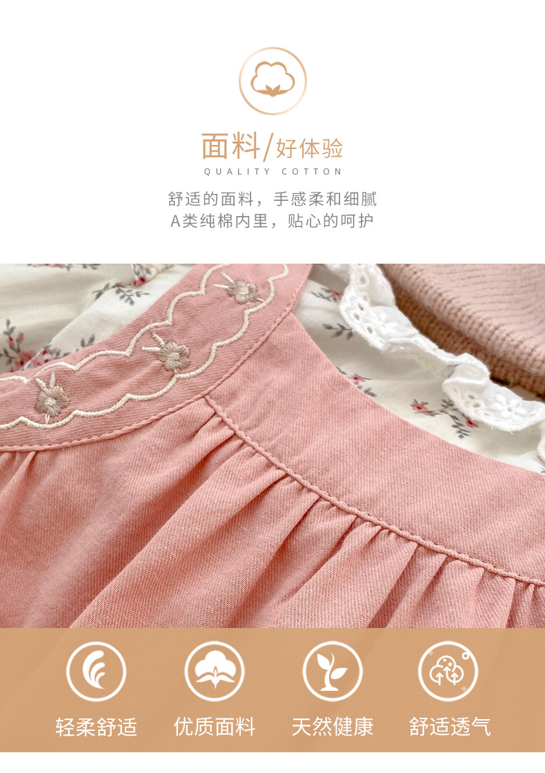 k2781LS-春秋繡花百搭長袖襯衫&背帶褲